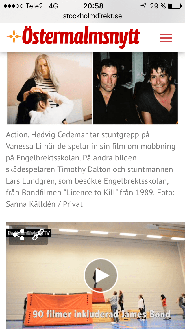 9BildFilmDesign’s samarbete med svensk-amerikanska stuntskolan syns i Östermalmsnytt! 28 september, 201628 september, 2016 av mikaelakjellgren, publicerad i Bild Film Design årskurs 9 Här kommer länken till en artikel samt videosnutt som Östermalmsnytt gjorde idag med eleverna i 9BFD! http://www.stockholmdirekt.se/nyheter/film-eleverna-ovar-stunts-pa-lektionstid-med-akta-hollywood-stuntman/reppiB!QMrnlFceI@nb7bwYD@w/ Dela detta: Klicka för att dela på X (Öppnas i ett nytt fönster) X Klicka för att dela på Facebook (Öppnas i ett nytt fönster) Facebook Gilla Laddar in …