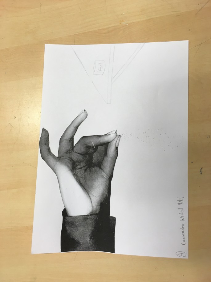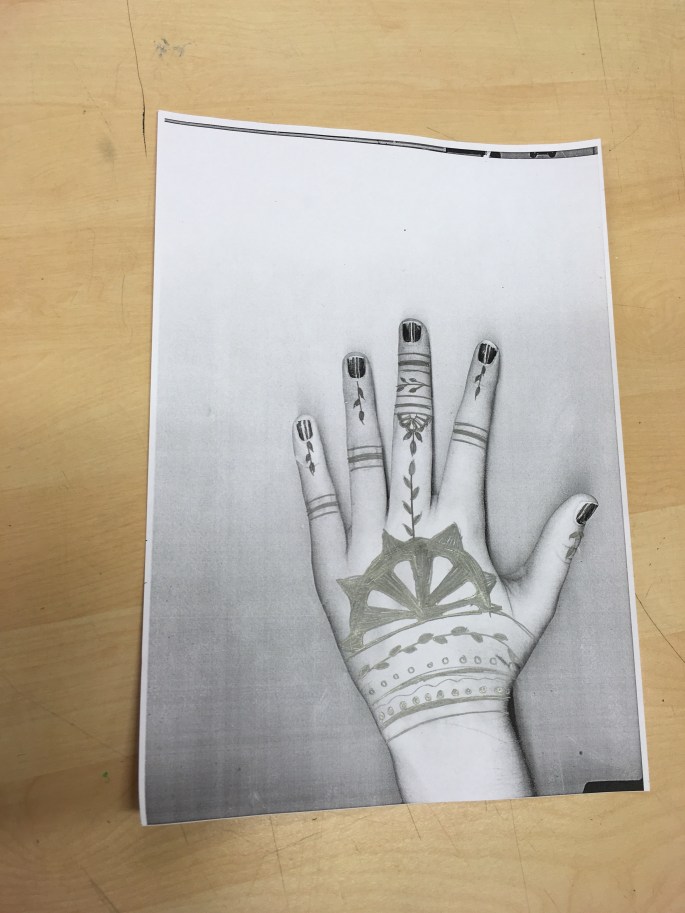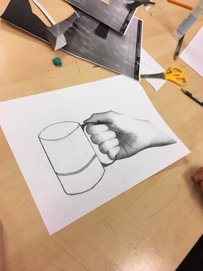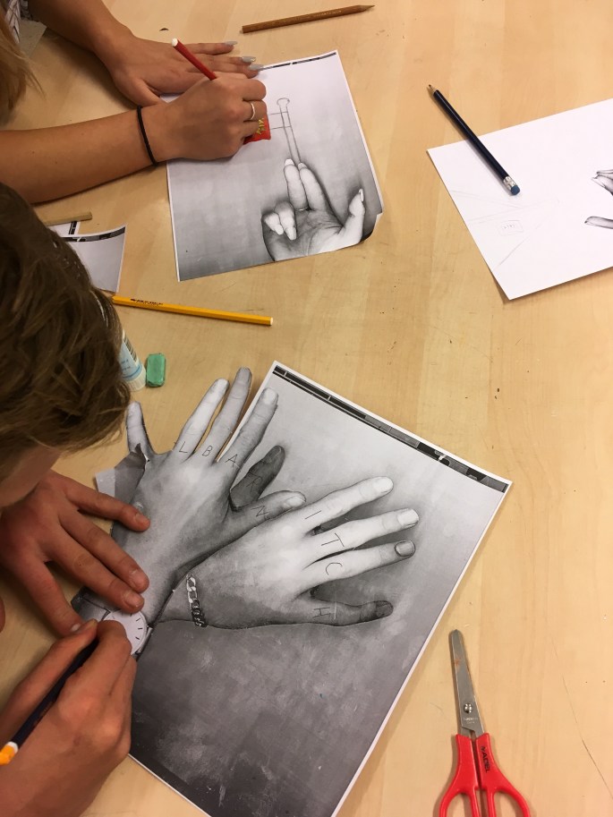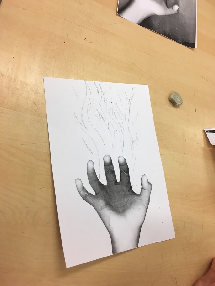 Vi ska teckna händer. Men vi började med en uppvärmningsuppgift. Händerna i kopiatorn och sen teckna något direkt på bilden!