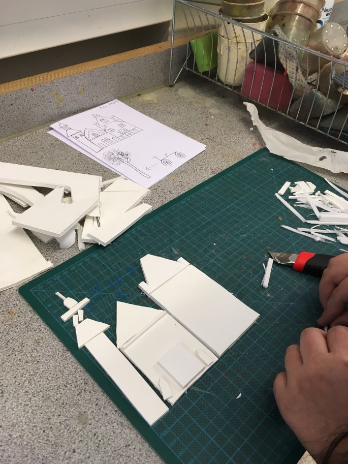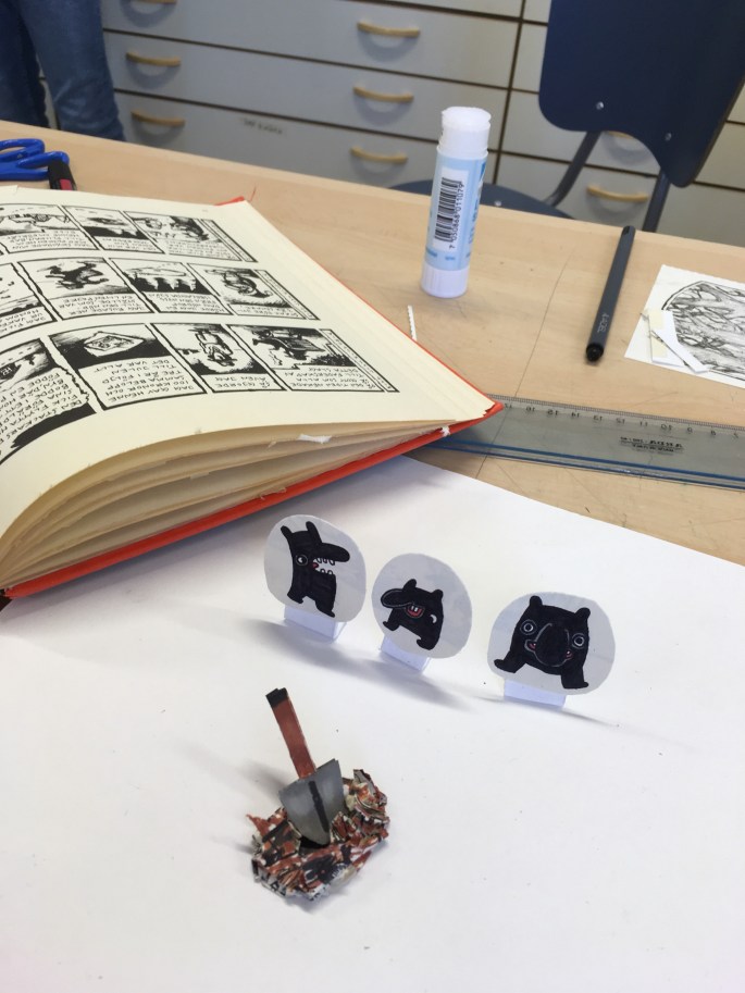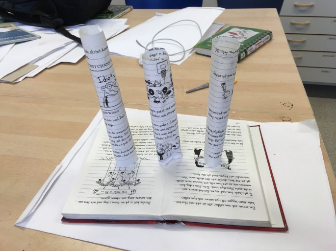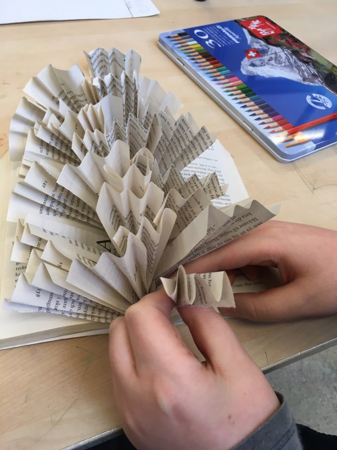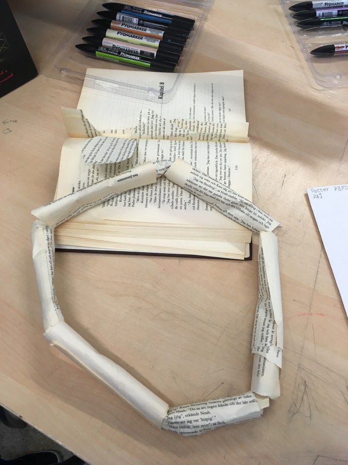 Eleverna har hämtat varsin utgallrad bok från biblioteket och ska nu ge boken liv genom att bygga upp/ut den i 3D (utifrån vad boken handlar om).