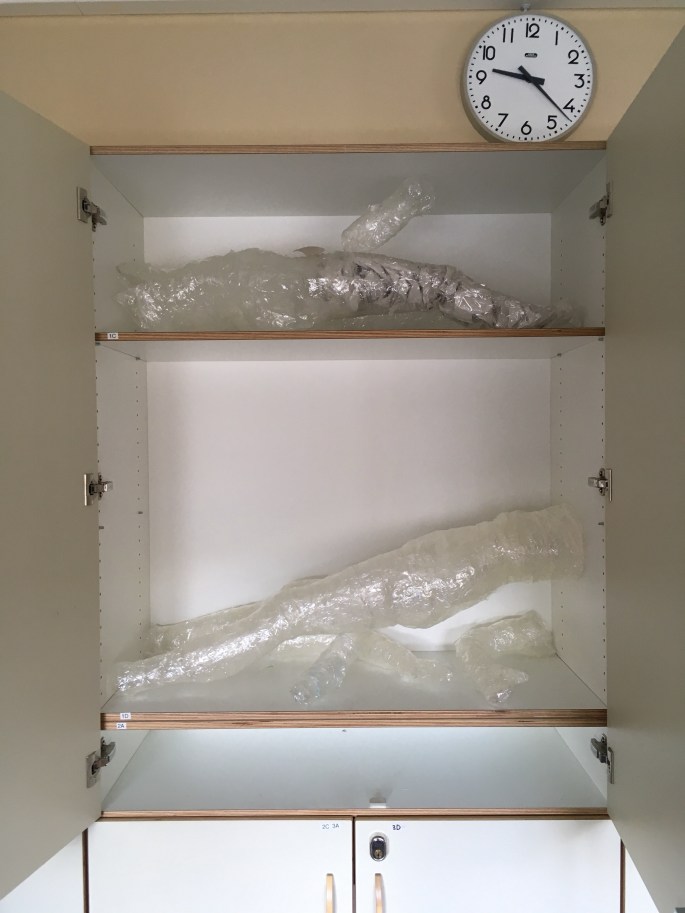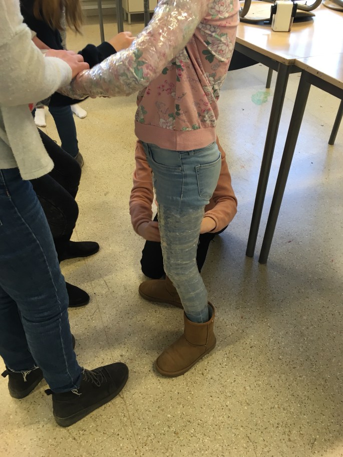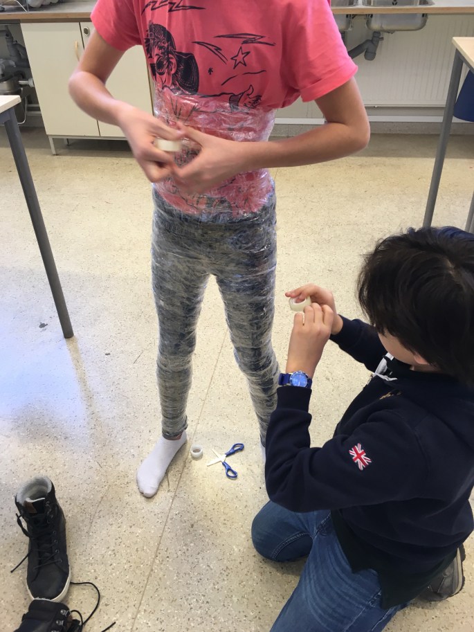 Profilfemmorna kom upp till bildsalen efter flera veckor i träslöjden. Vi satte igång direkt med att skapa skulpturer-av tejp!