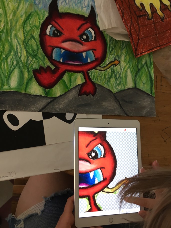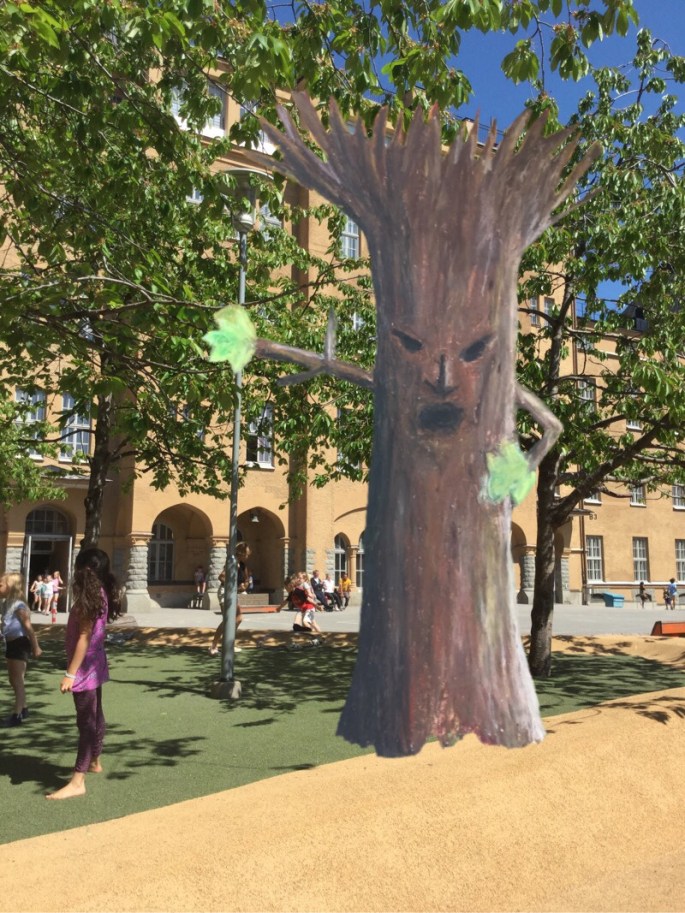 När monstret och miljön är färdigt är det dags för nästa steg- placera monstret någonstans på skolan (i egentaget foto).