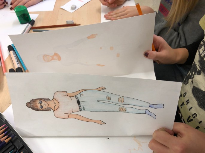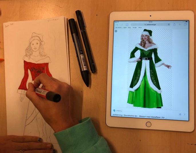 Vi avrundar terminen med en kläddesign-uppgift. Det blir sen tre olika outfits på samma person (likt en vikfigur, klippdocka etc.).