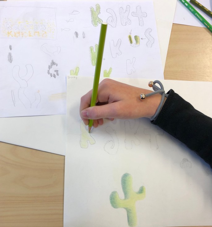 Nu har vi börjat jobba med akvarellfärgpennorna! Det går sen att jobba med färgen om man går över den med en blöt pensel.