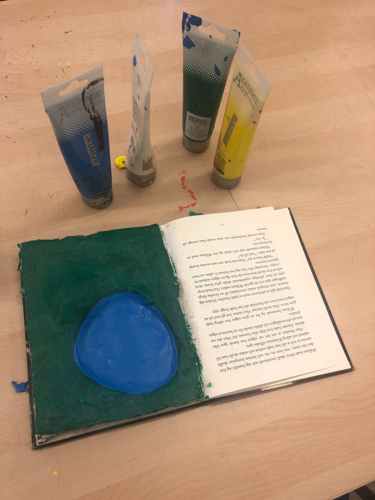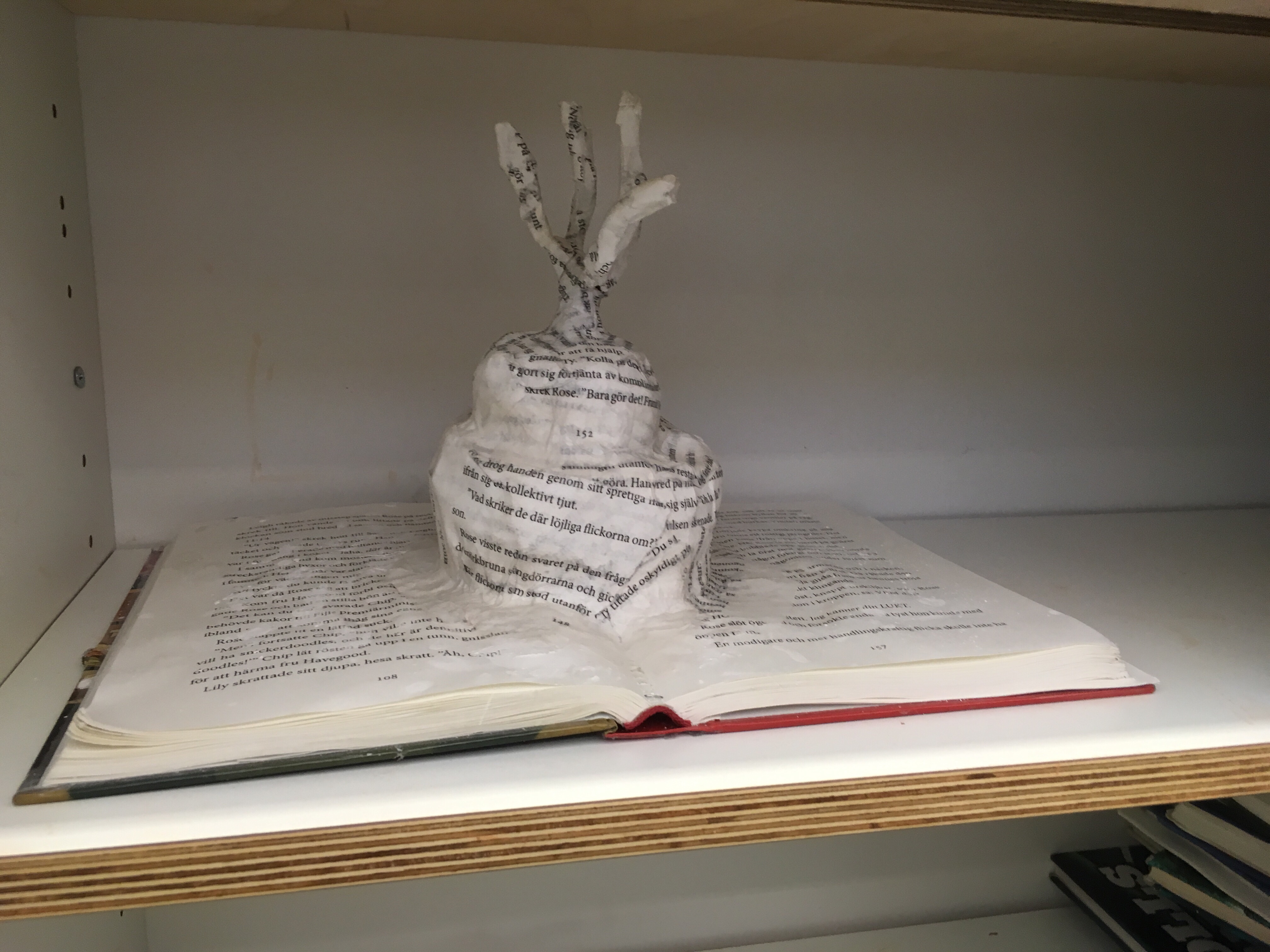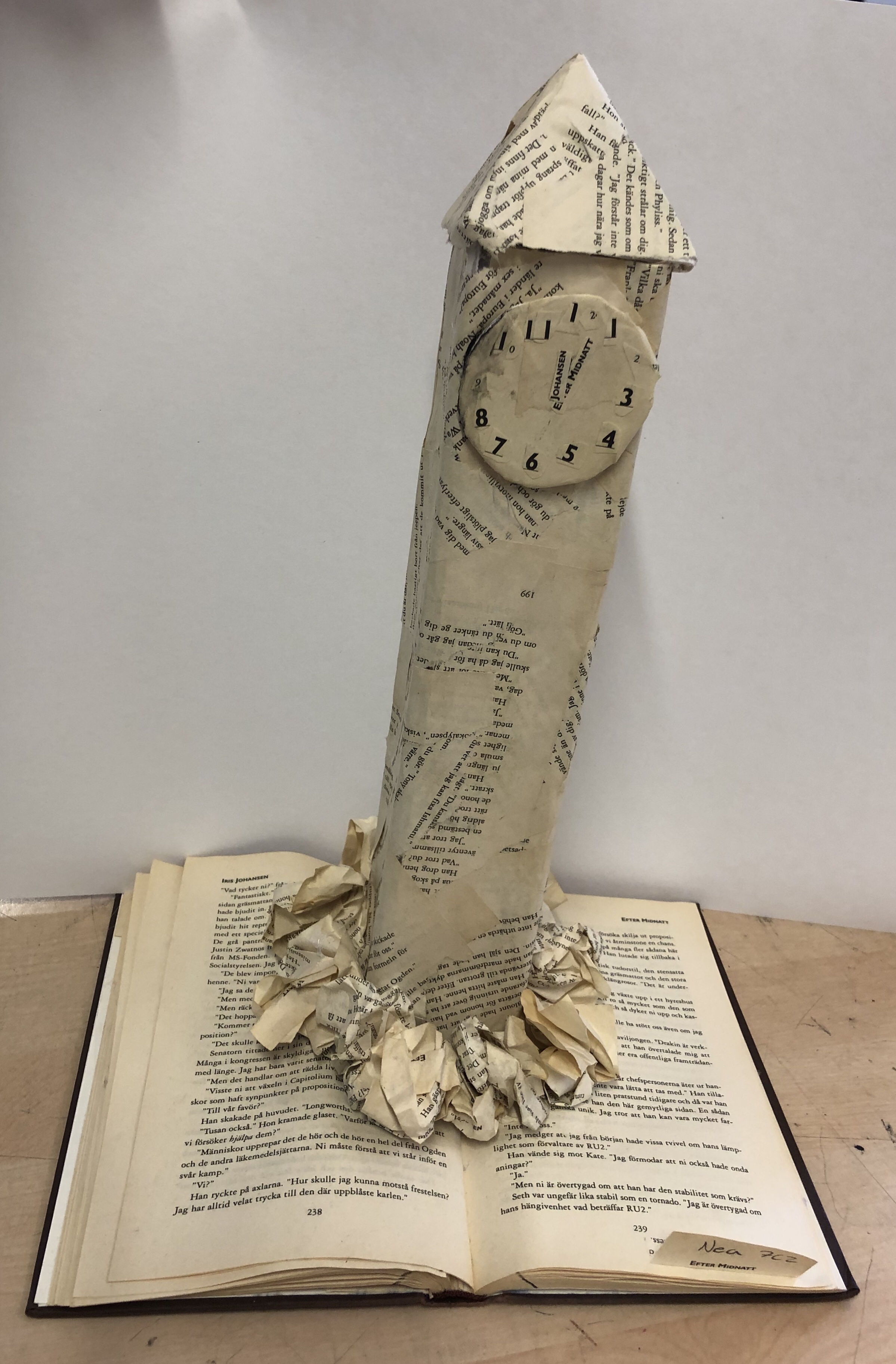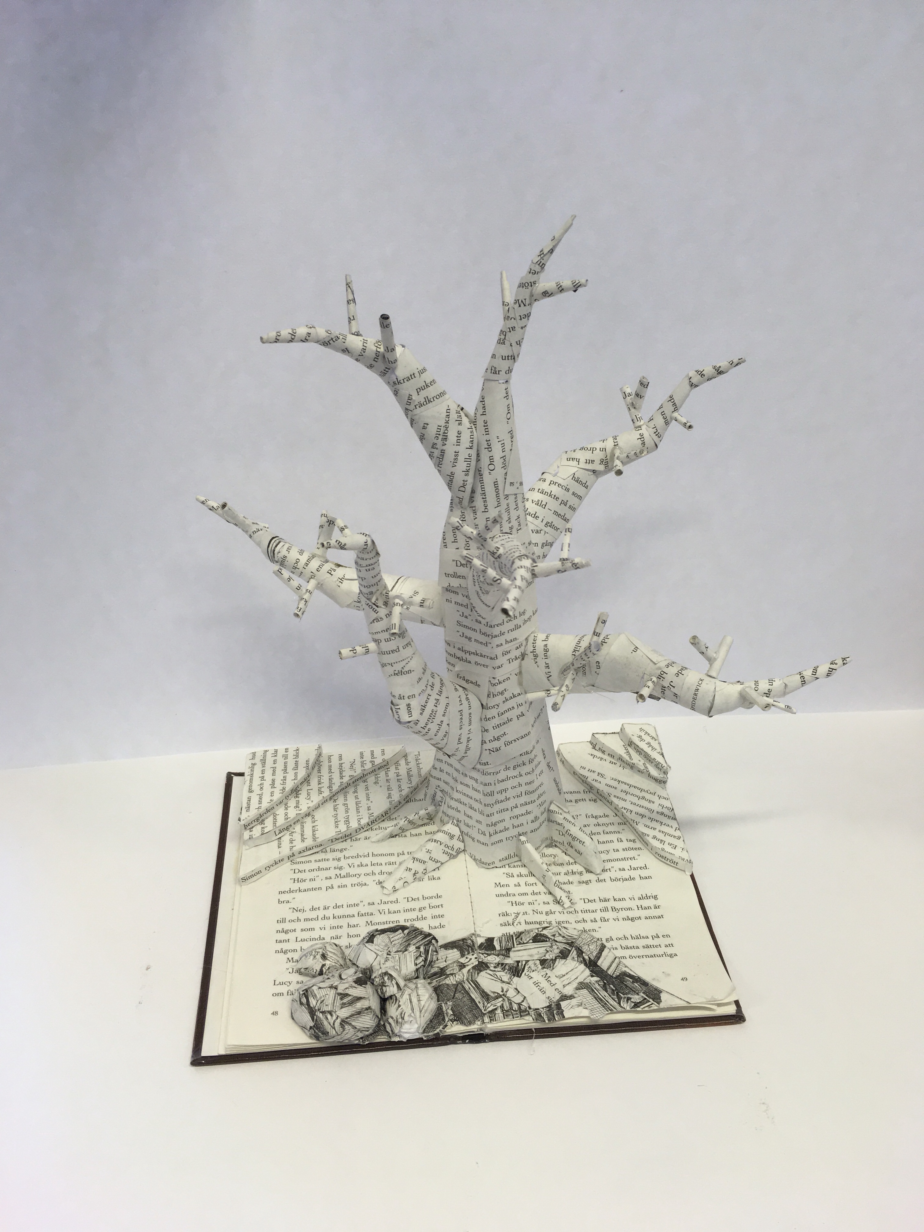 Vi har fått utgallrade böcker av biblioteket. Böckerna ska nu få liv genom att ”byggas” ut av självaste sidorna i boken. Eleverna utgår ifrån bokens titel, handling eller illustrationer.