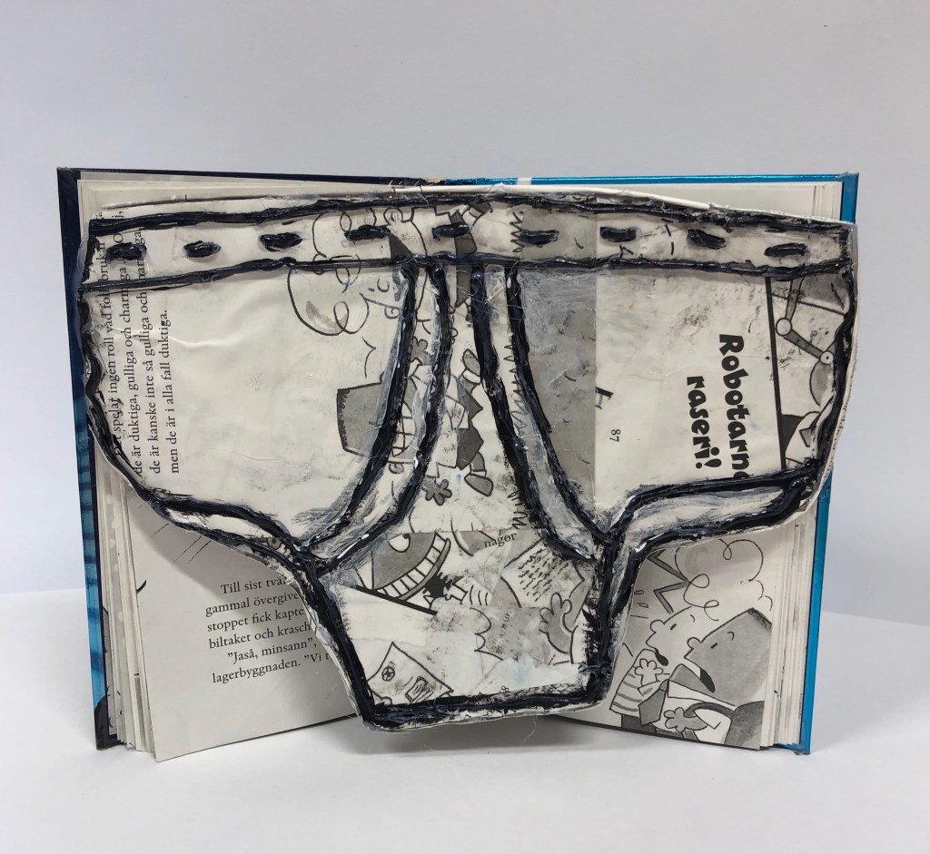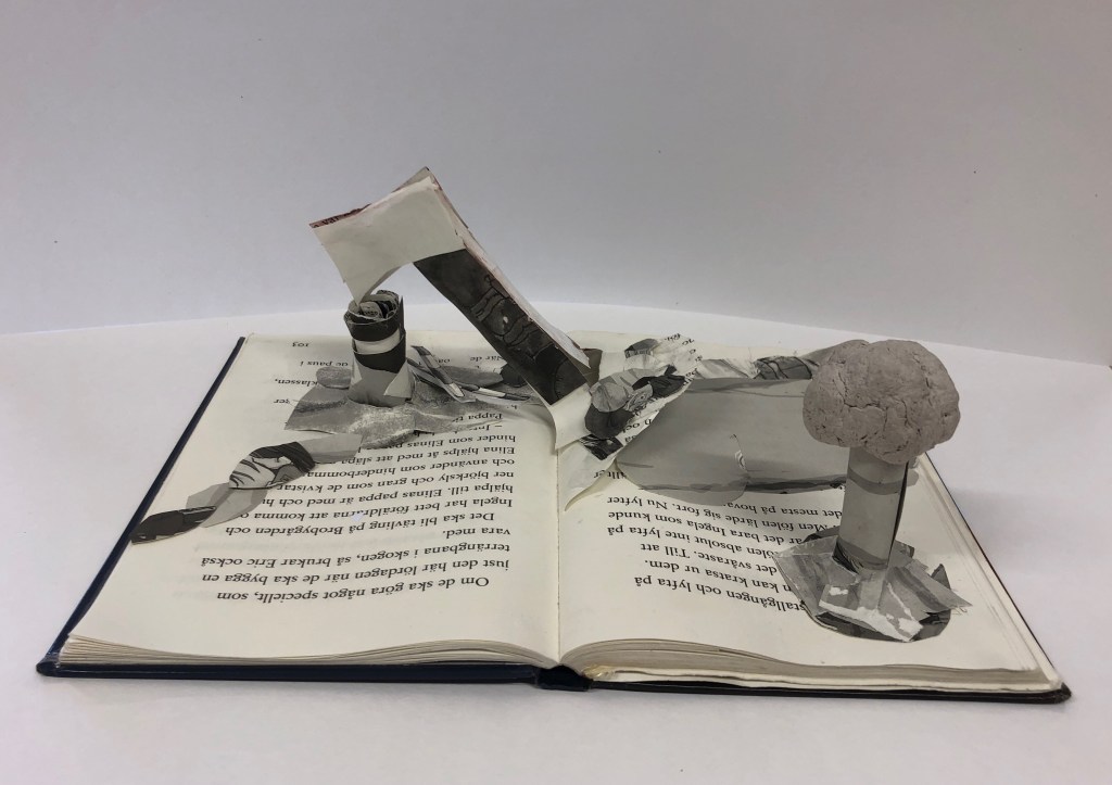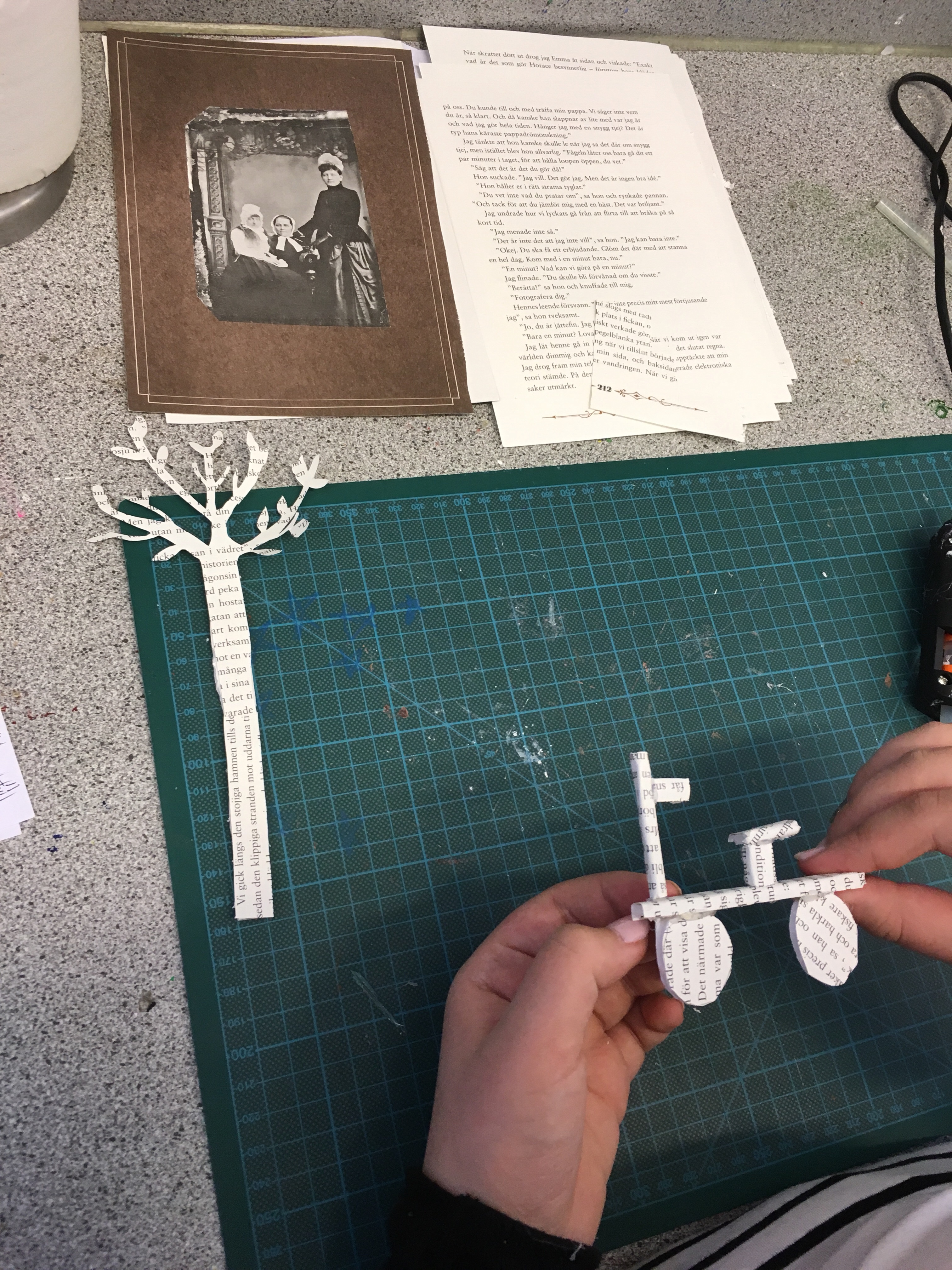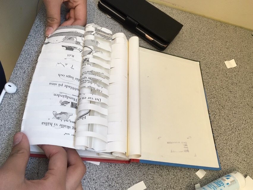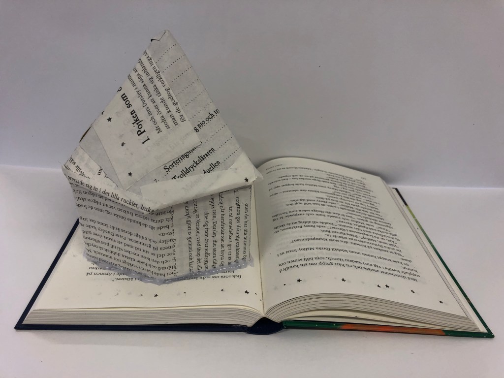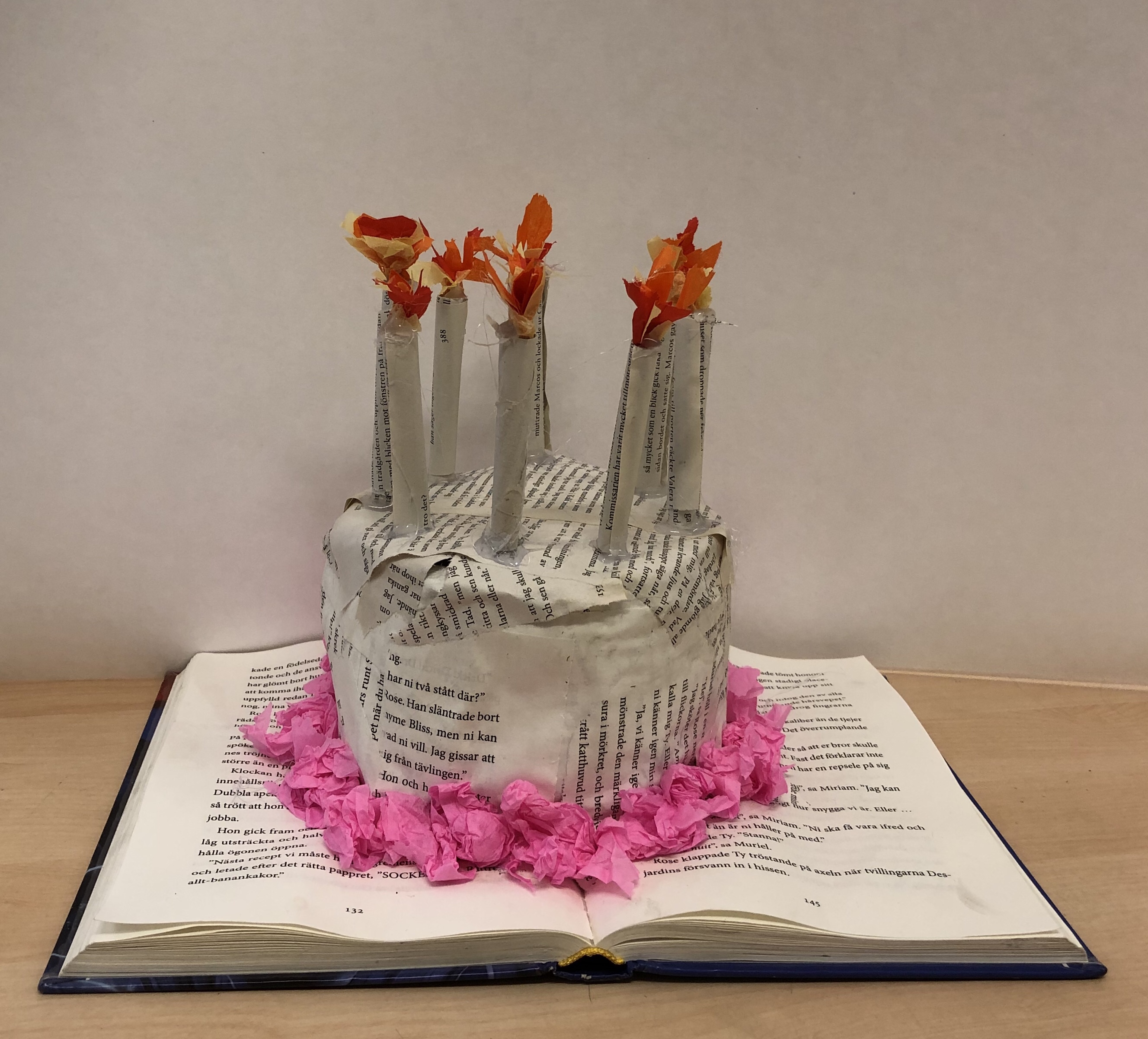 Vi har fått utgallrade böcker av biblioteket. Böckerna ska nu få liv genom att ”byggas” ut av självaste sidorna i boken. Eleverna utgår ifrån bokens titel, handling eller illustrationer.