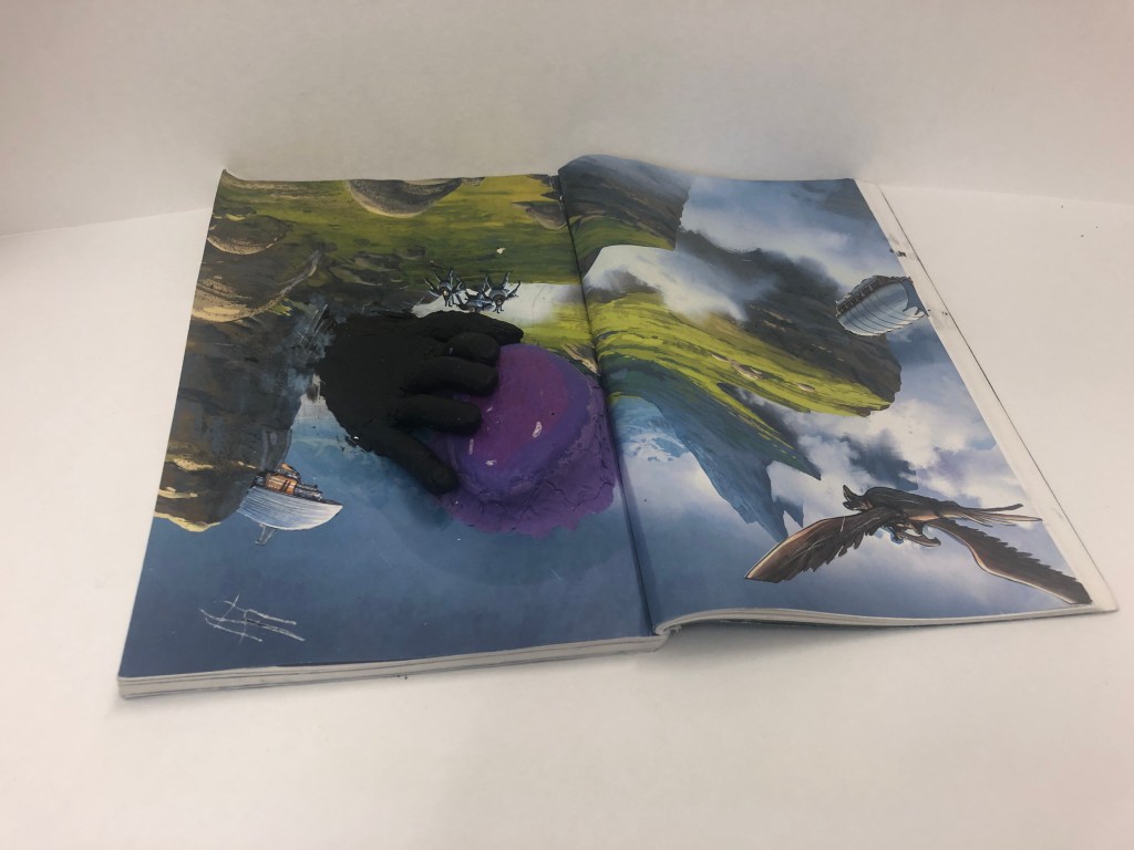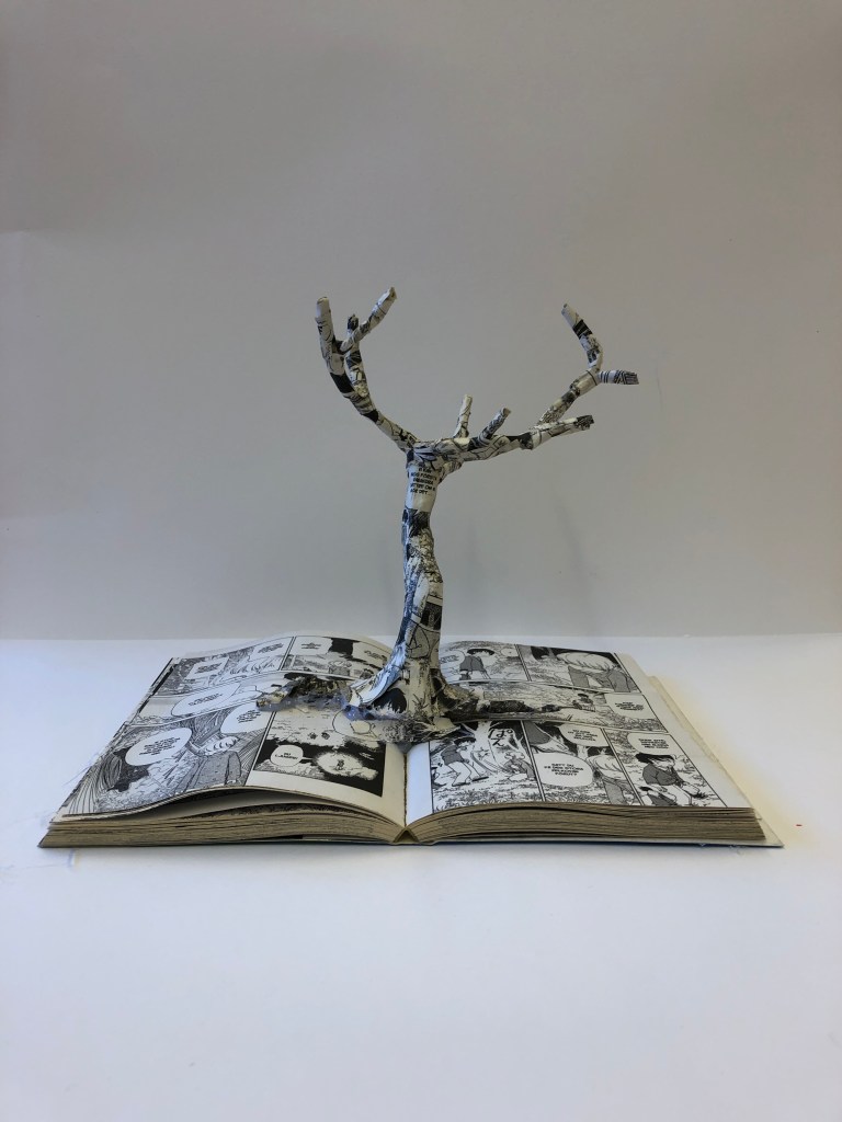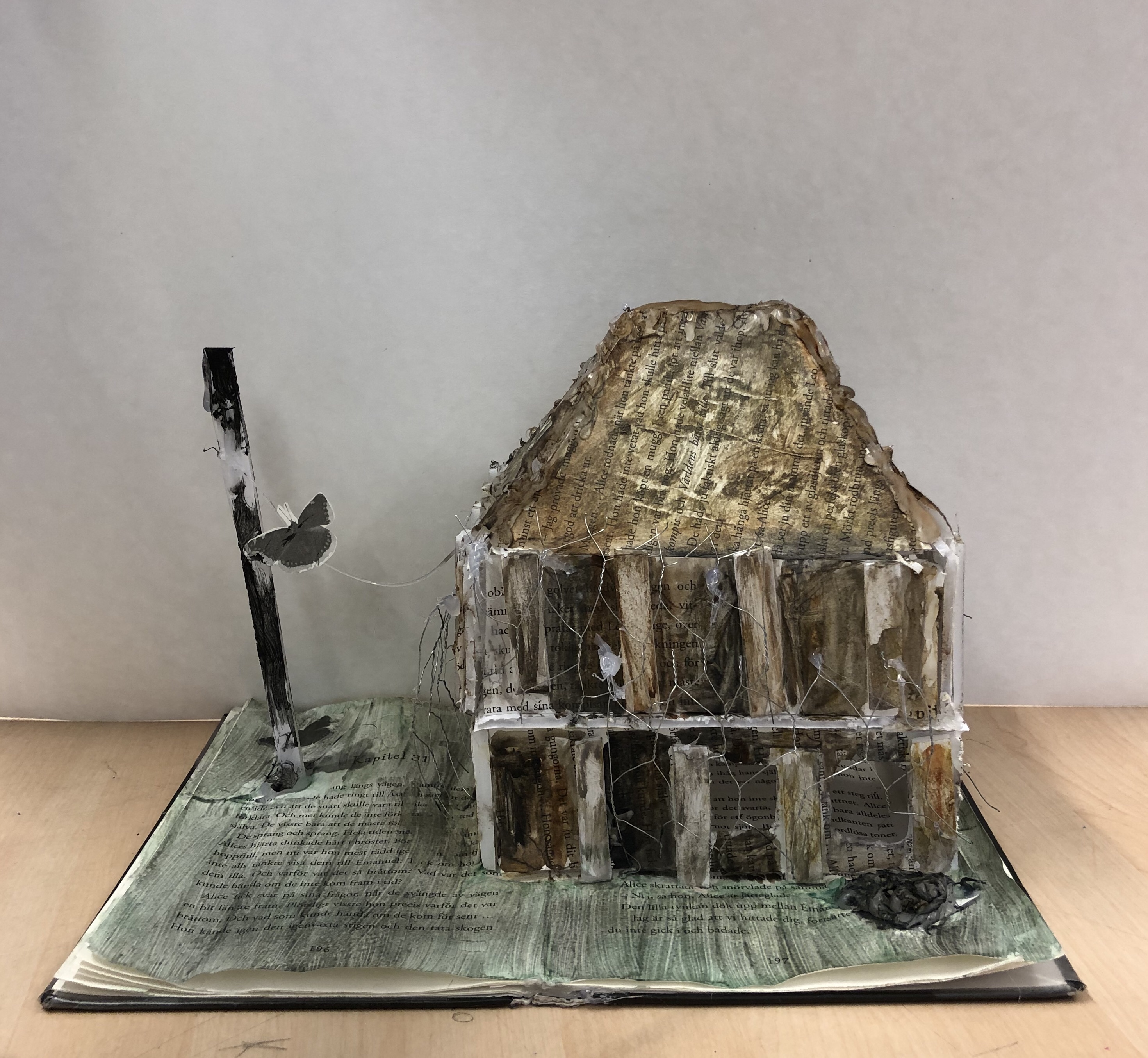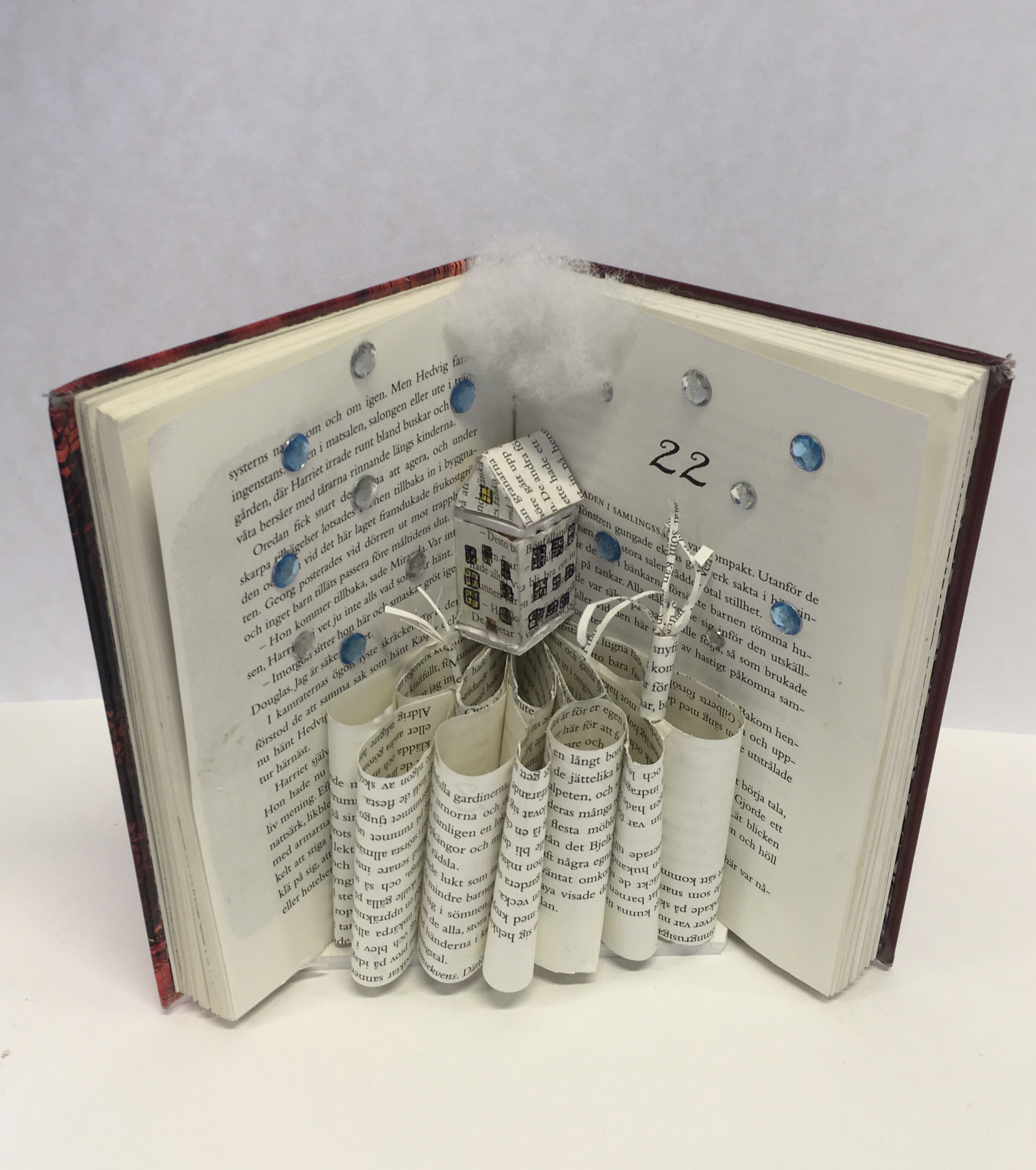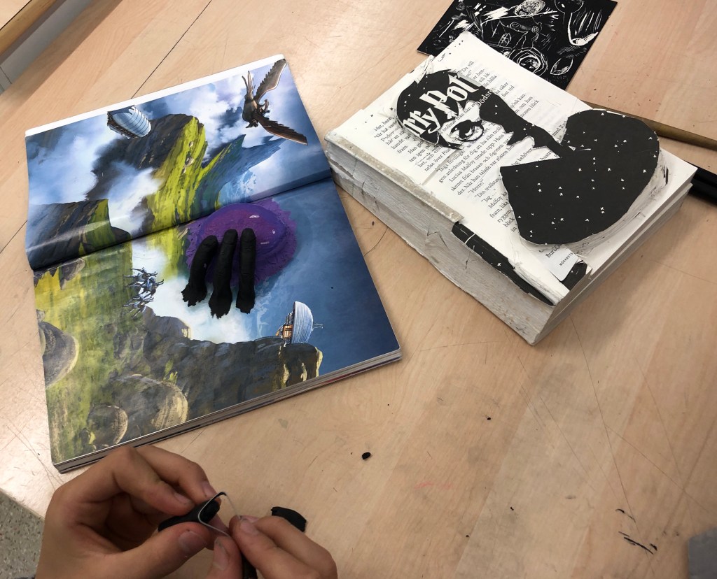 Vi har fått utgallrade böcker av biblioteket. Böckerna ska nu få liv genom att ”byggas” ut av självaste sidorna i boken. Eleverna utgår ifrån bokens titel, handling eller illustrationer.