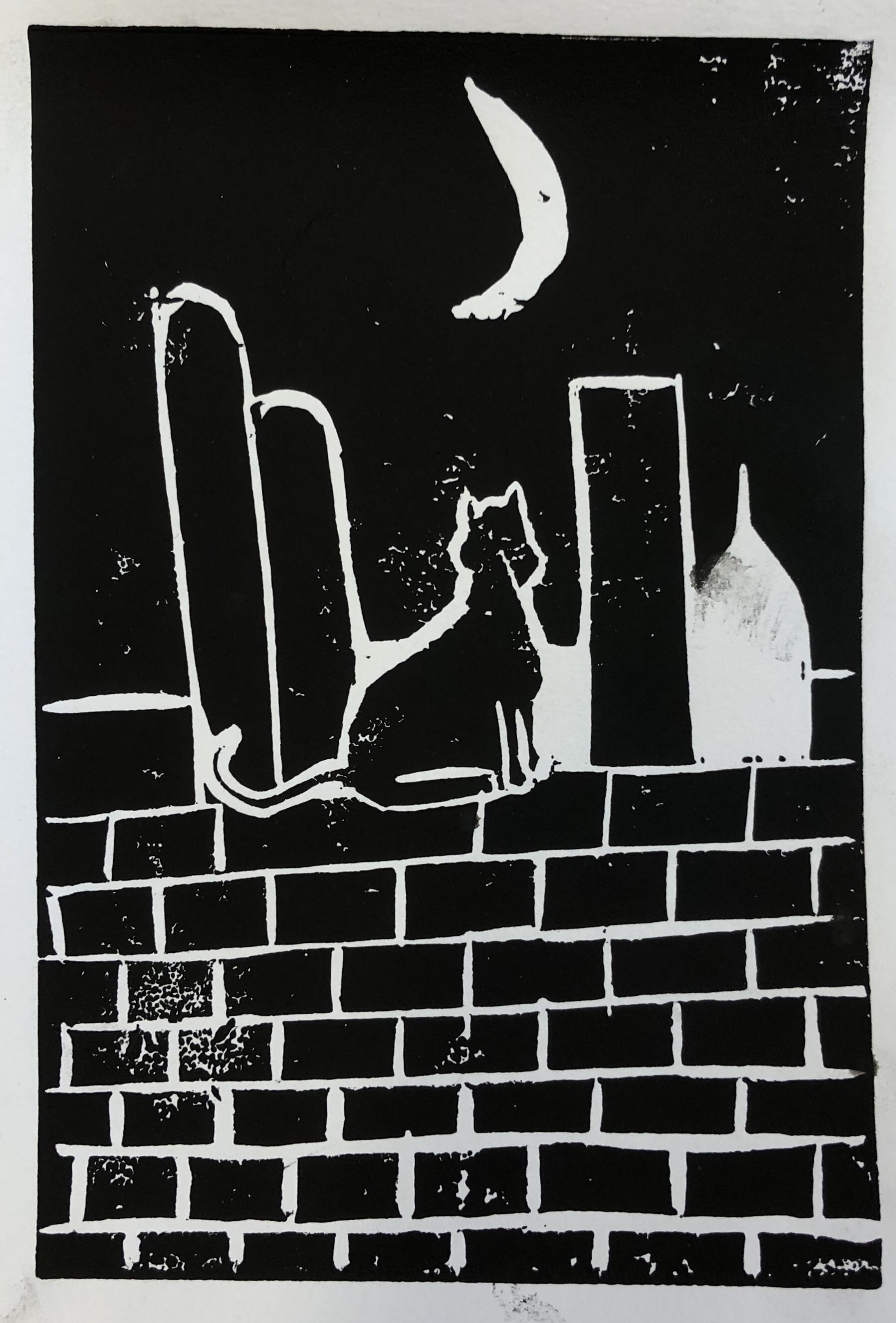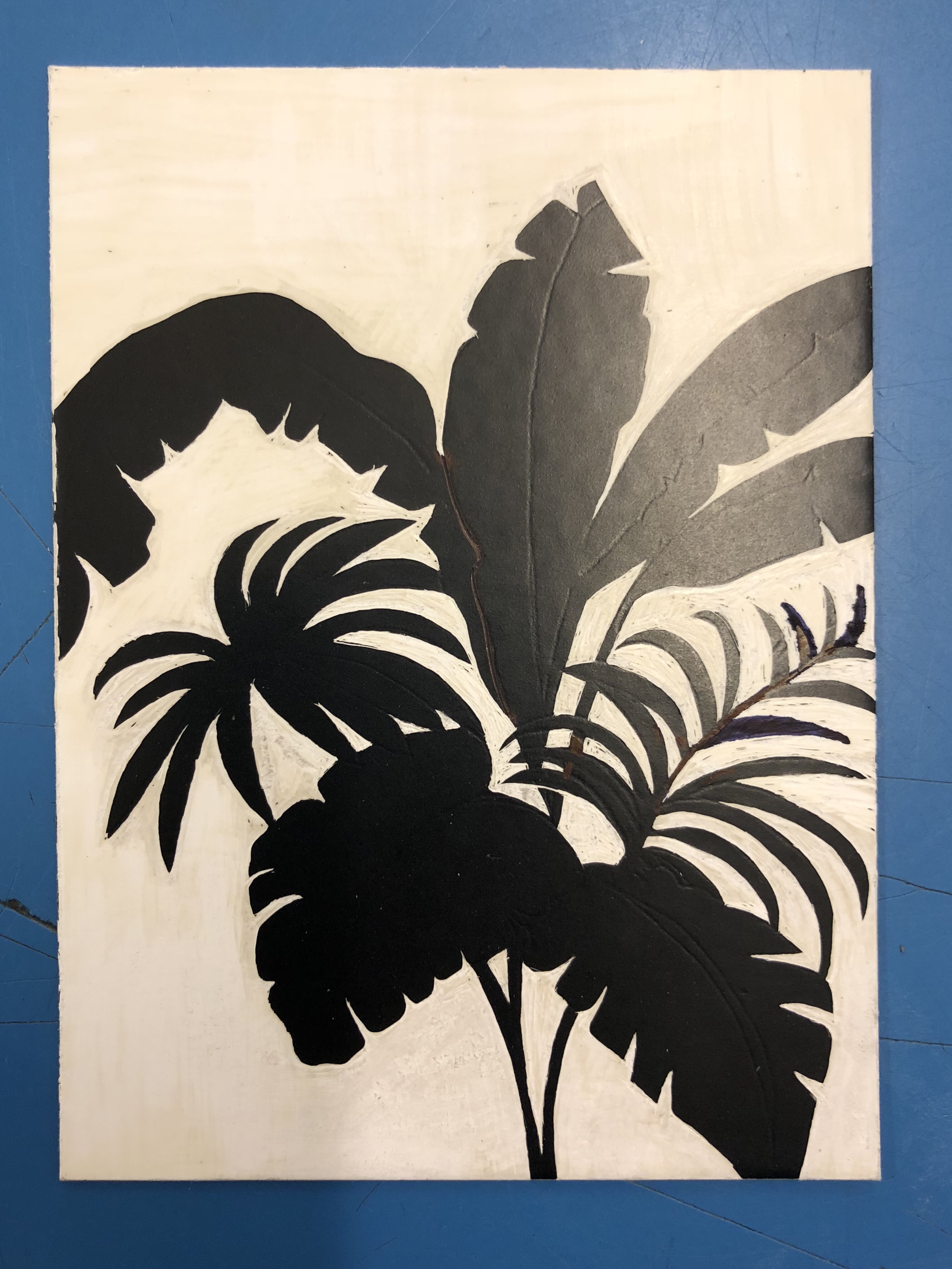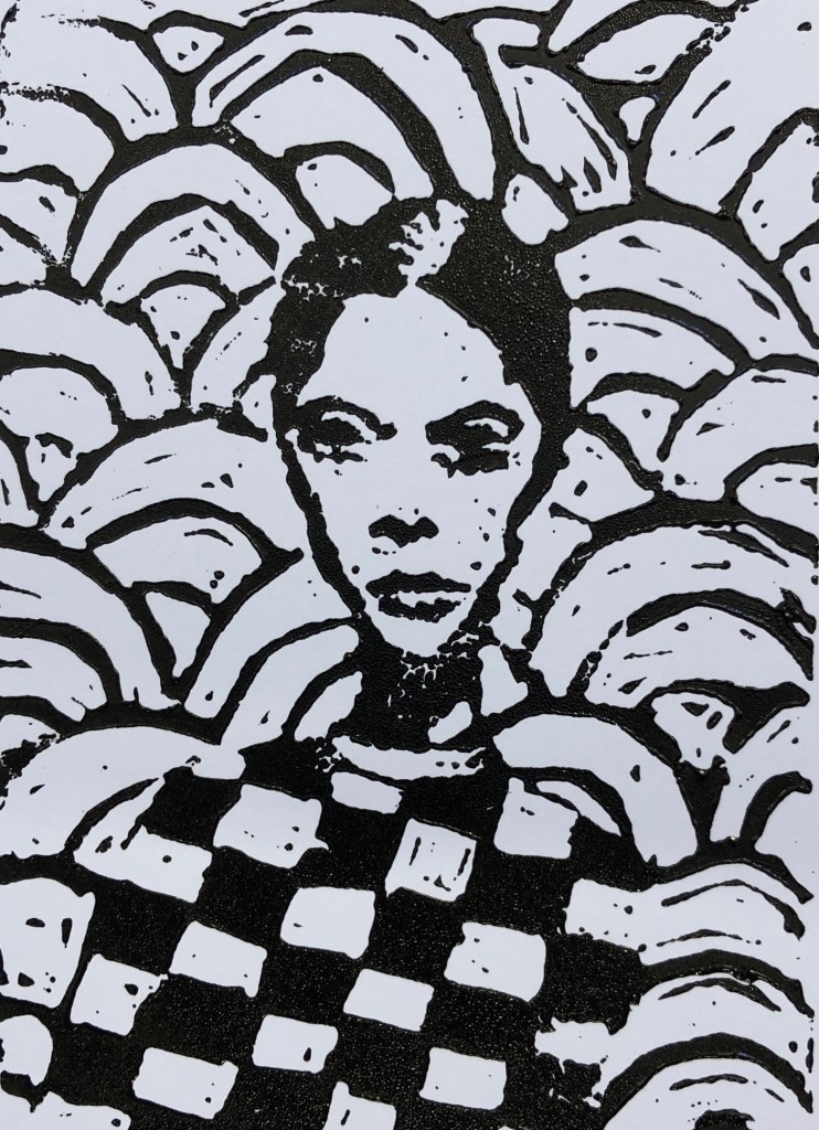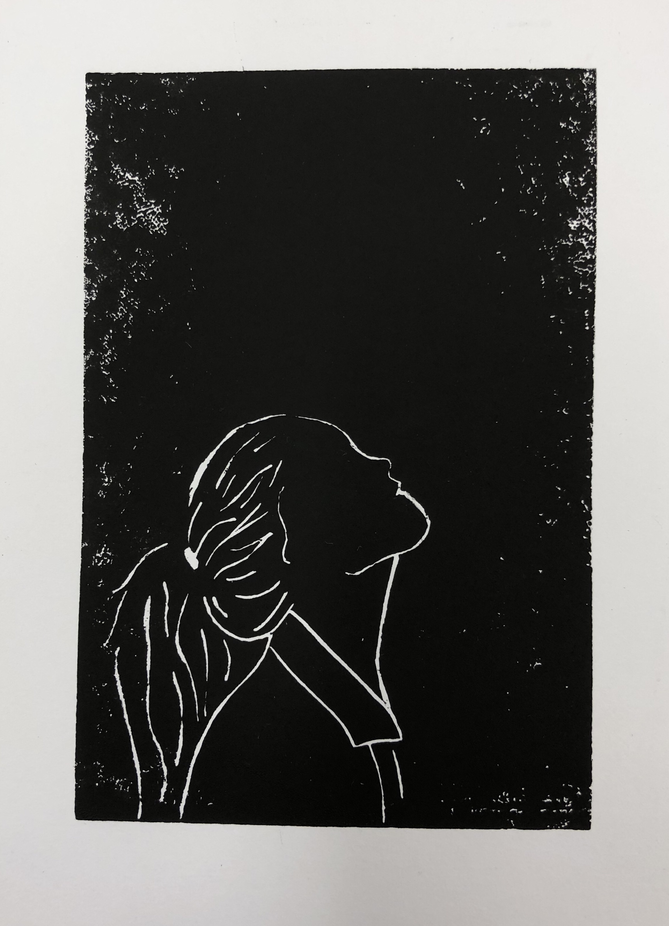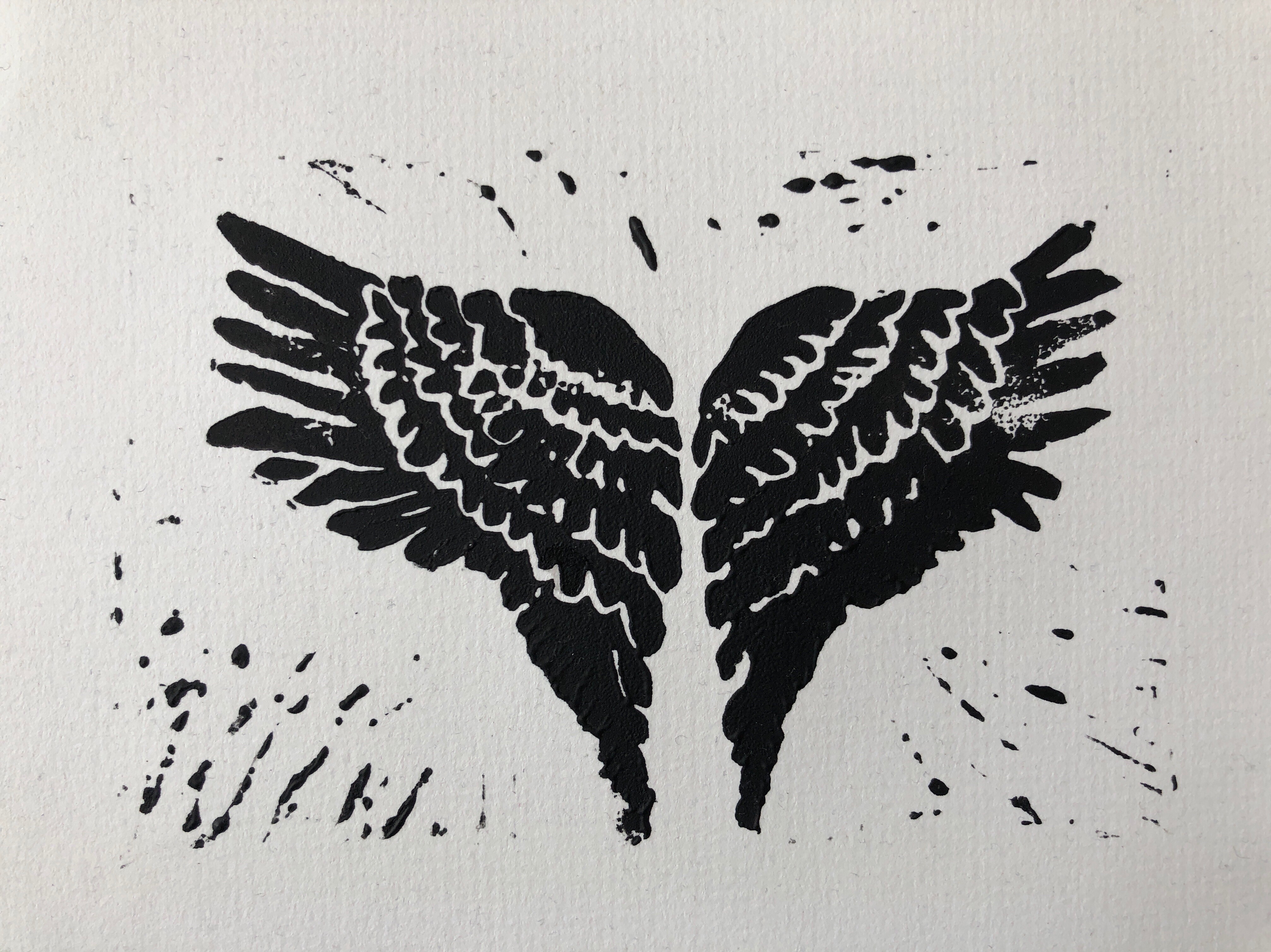 Vi ger oss på en riktig kluring. Att karva i linoleum är inte lätt. Sen ska det valsas på färg och tryckas med lagom mycket färg och lagom mycket tryckkraft.