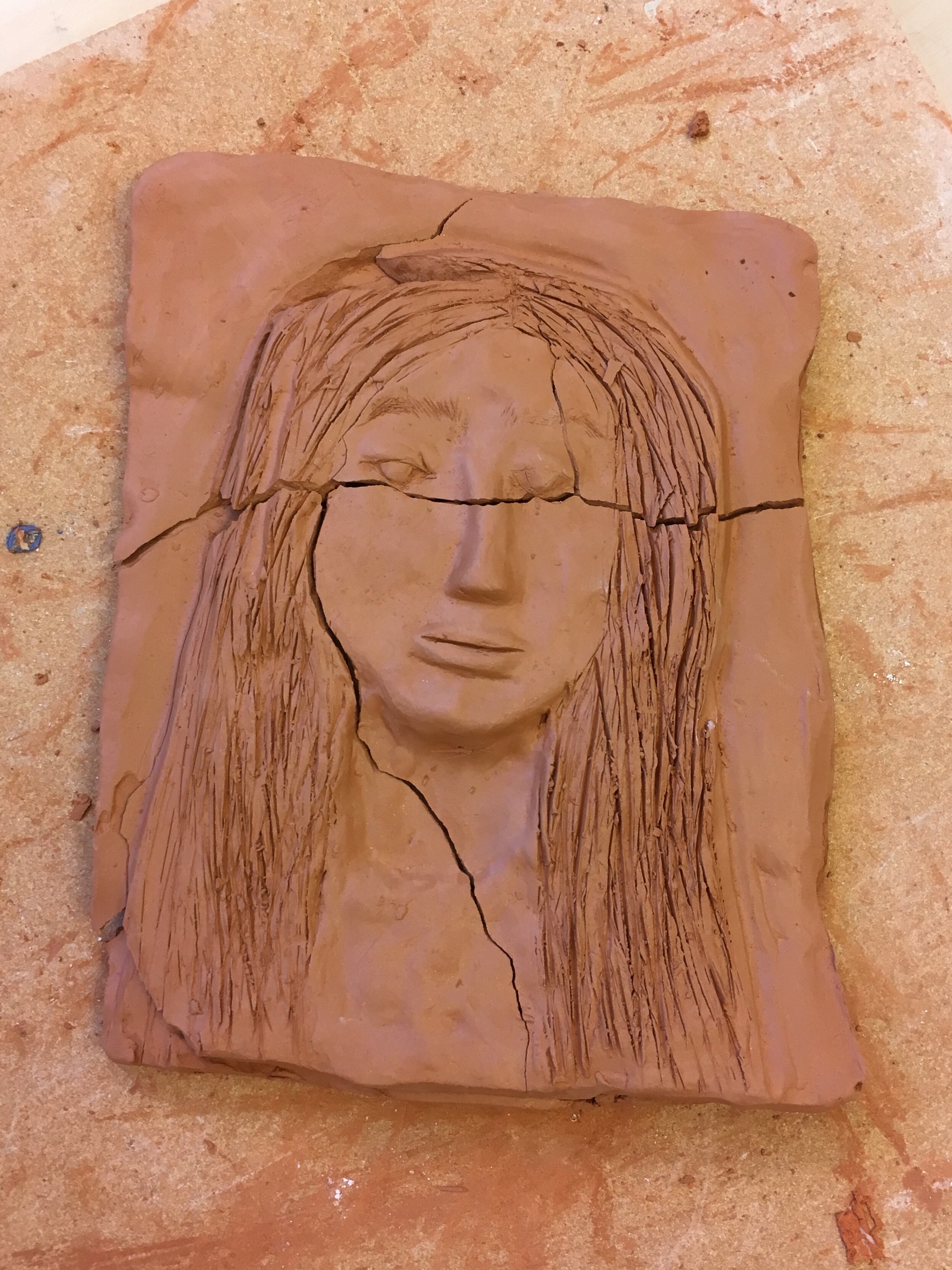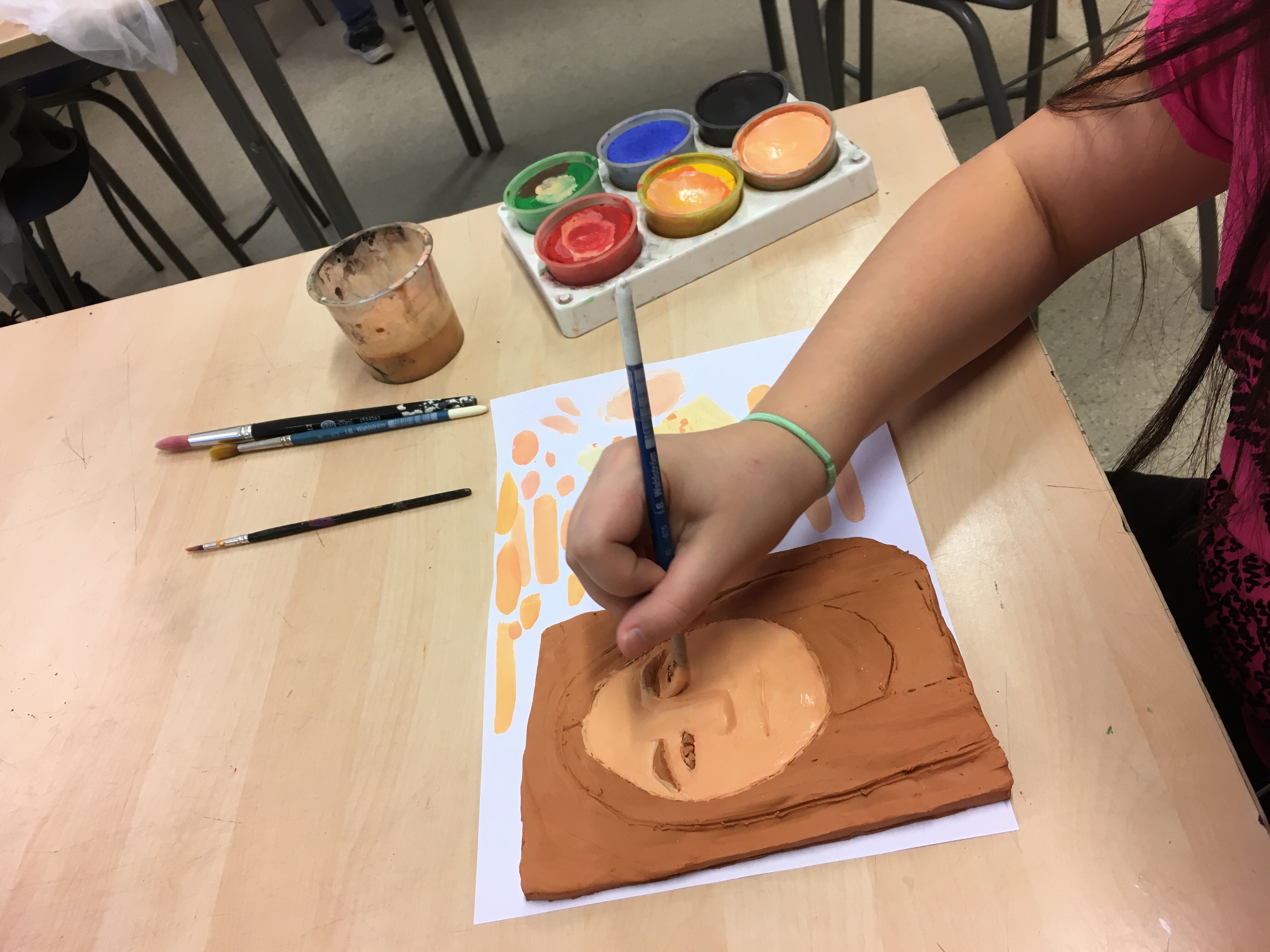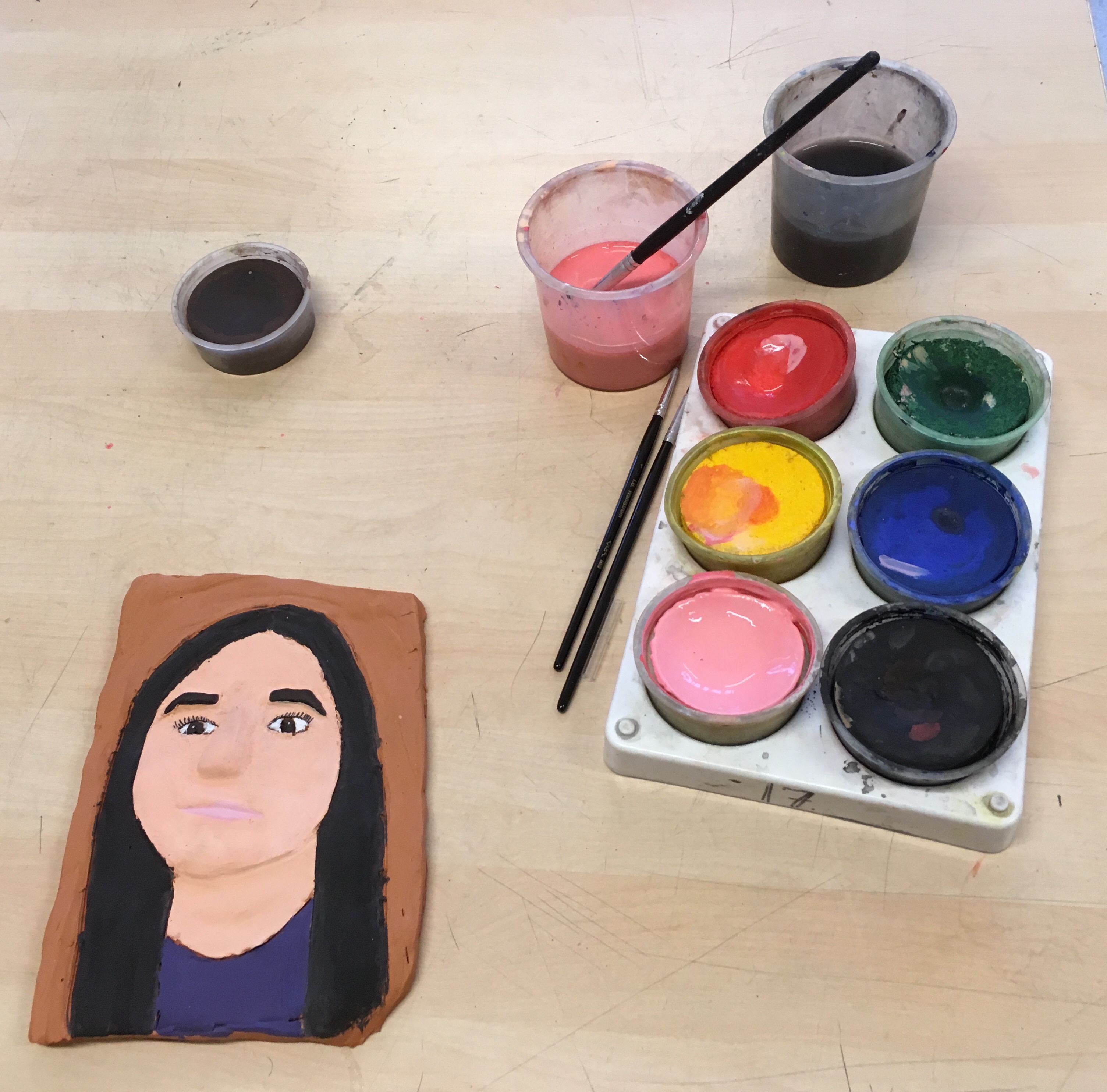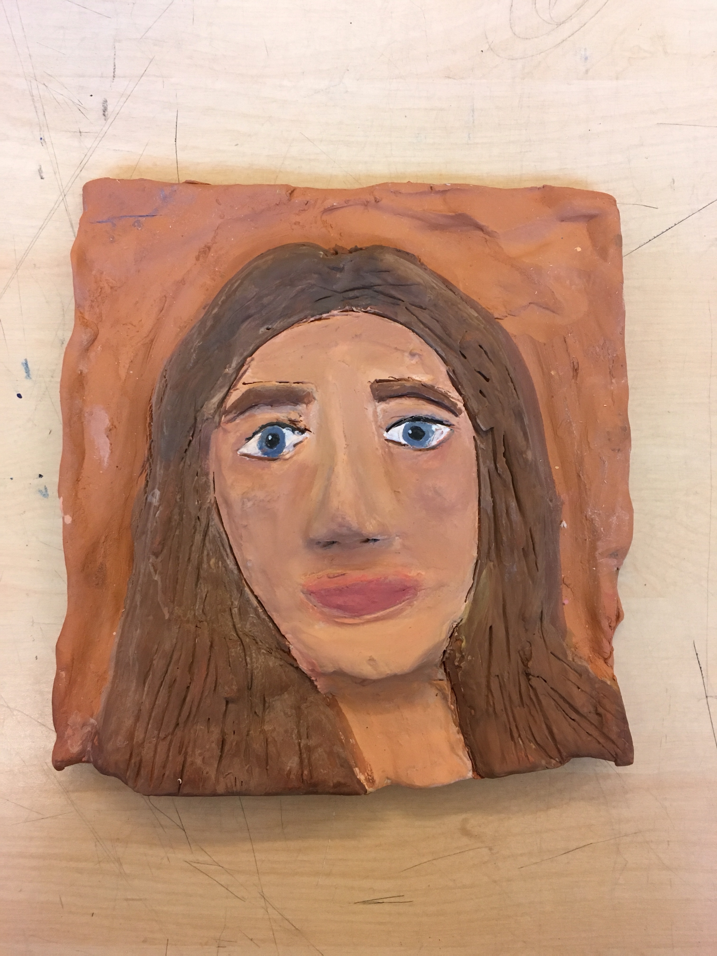 Vi började med att knåda och kavla!Sen fota , skriva ut och placera bilden på leran. Med hjälp av vasst föremål spårade vi konturerna och vips, ett porträtt på leran! Nu återstår att bygga upp ansiktet och jobba på relieferna!