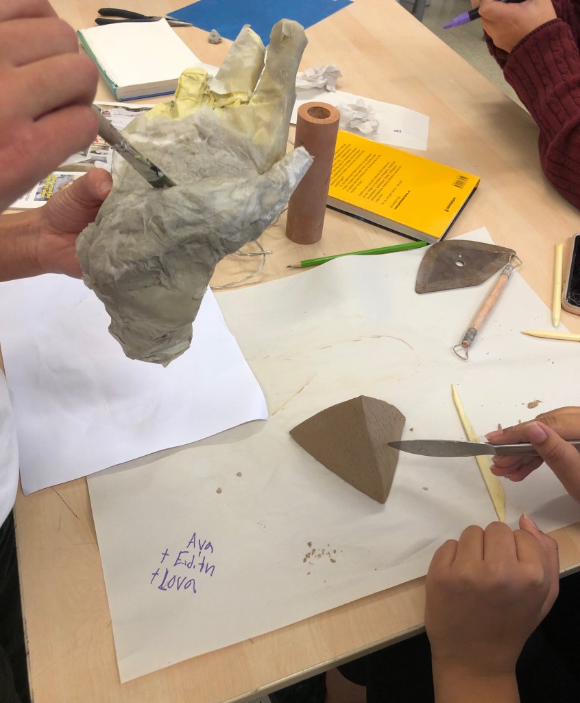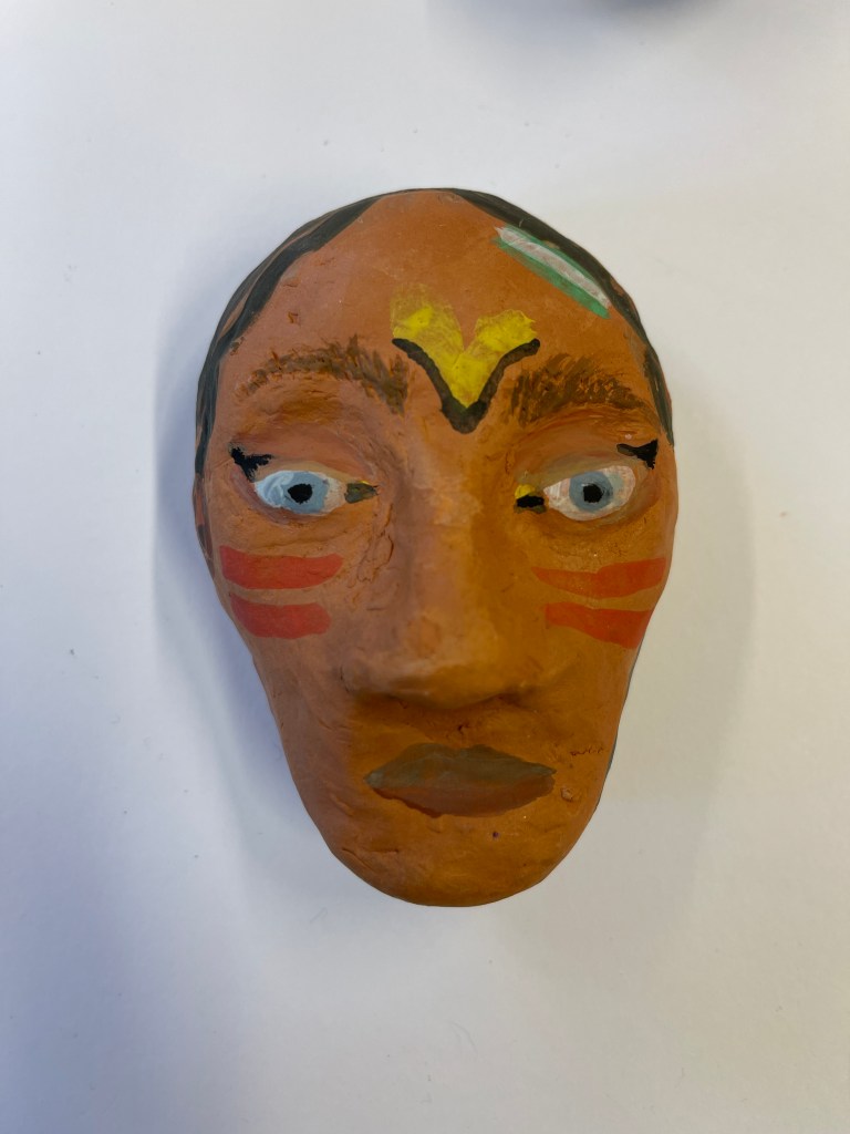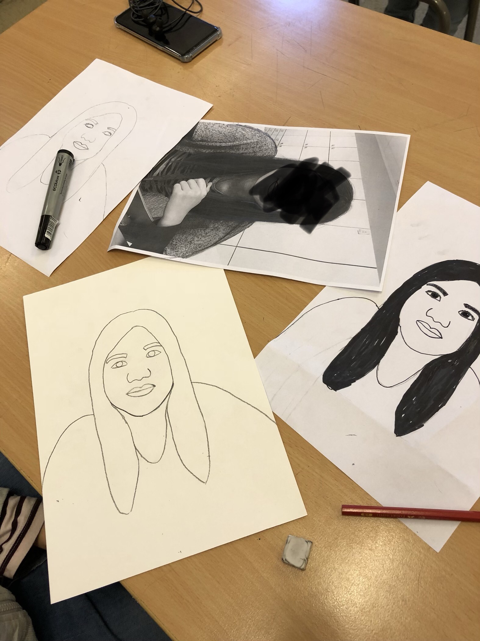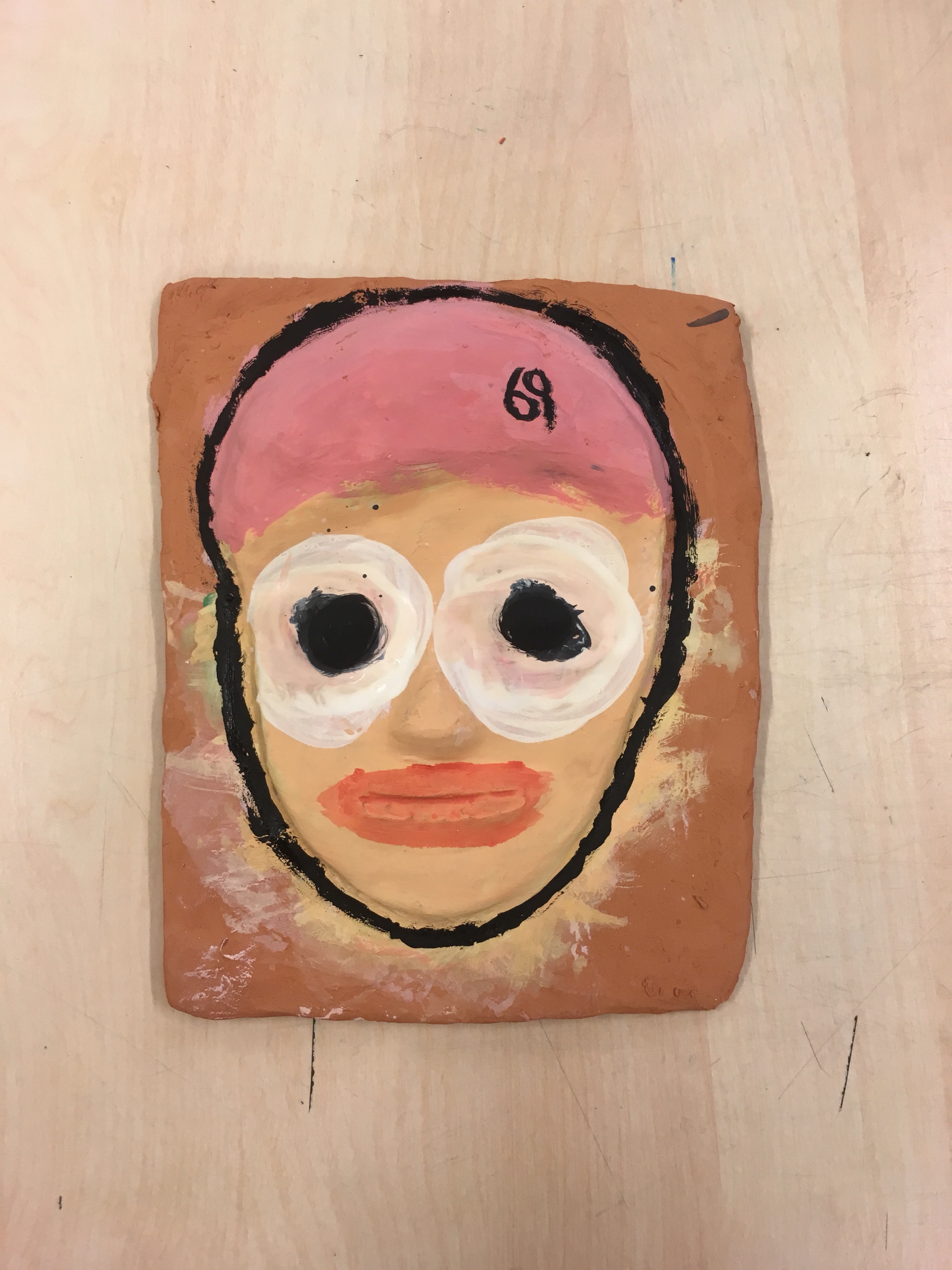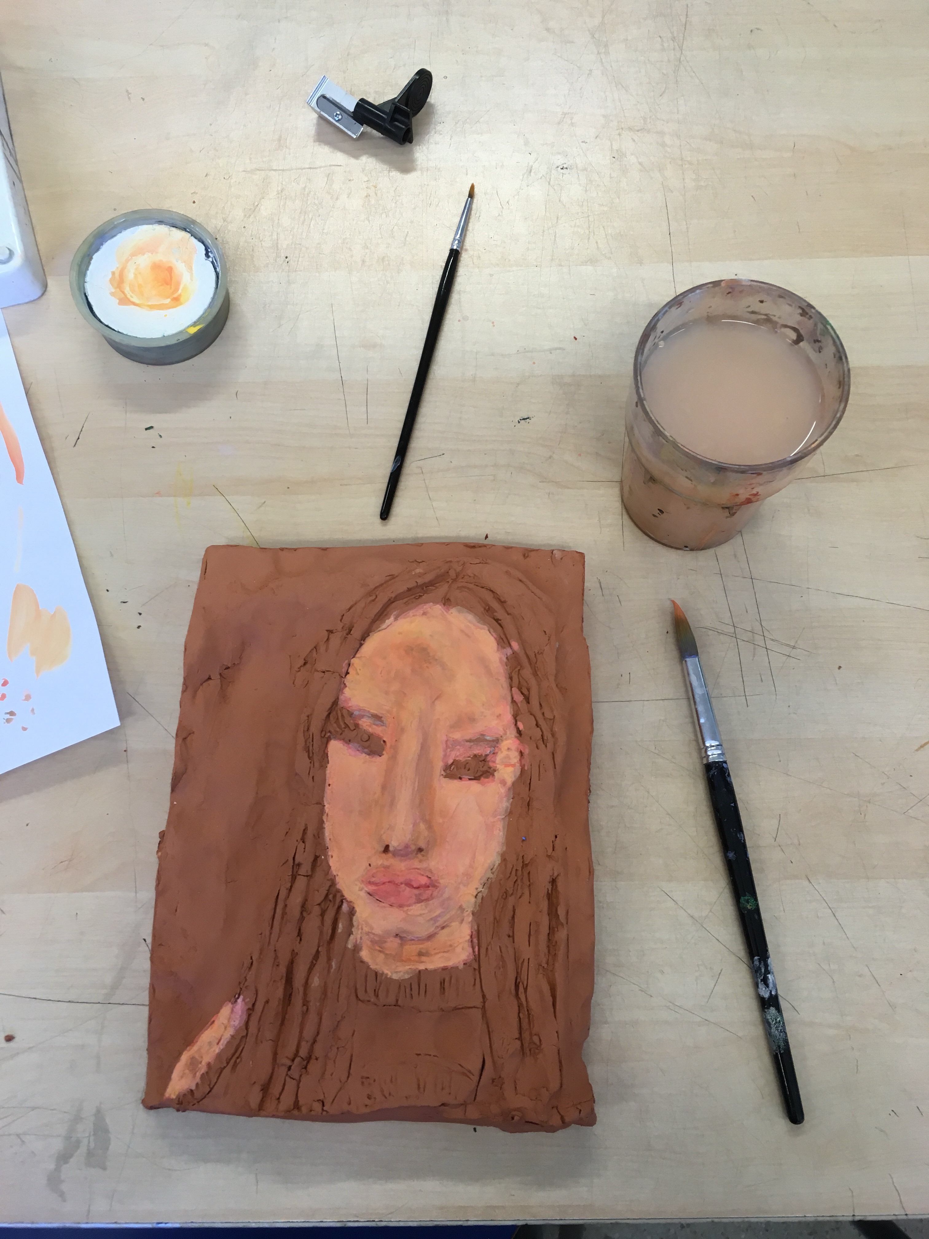 Vi började med att knåda och kavla!Sen fota , skriva ut och placera bilden på leran. Med hjälp av vasst föremål spårade vi konturerna och vips, ett porträtt på leran! Nu återstår att bygga upp ansiktet och jobba på relieferna!