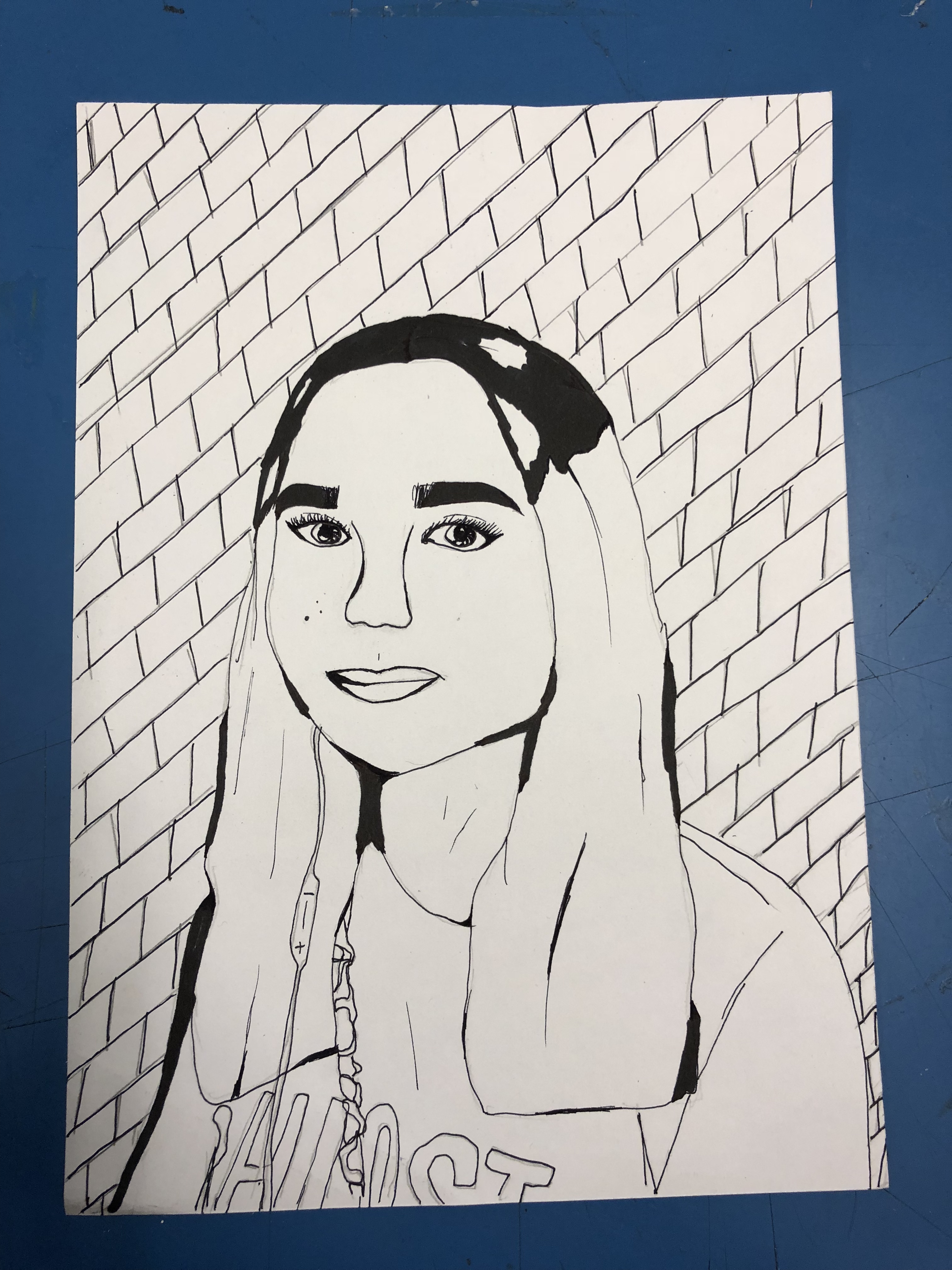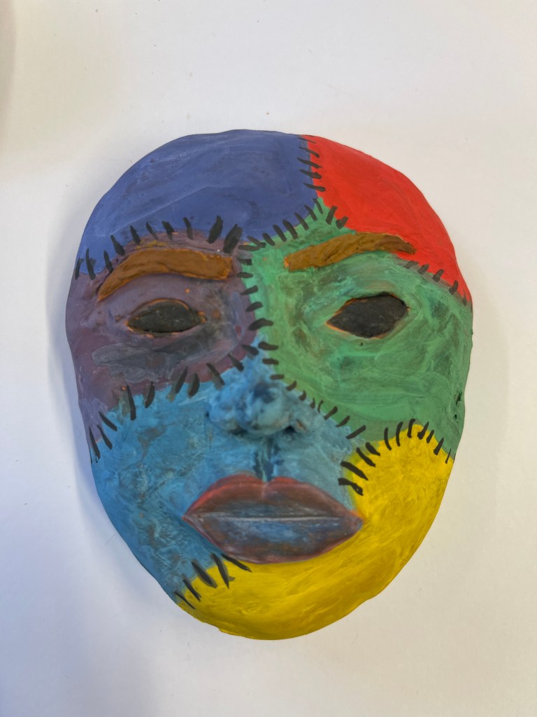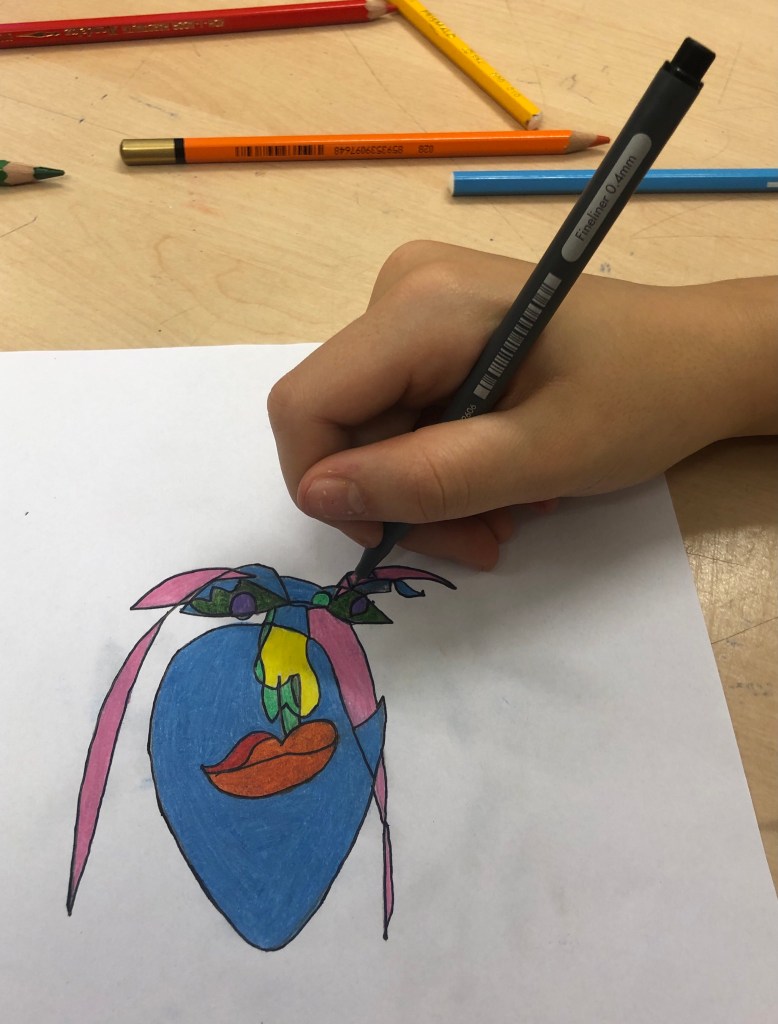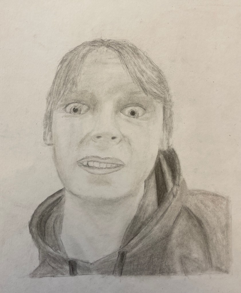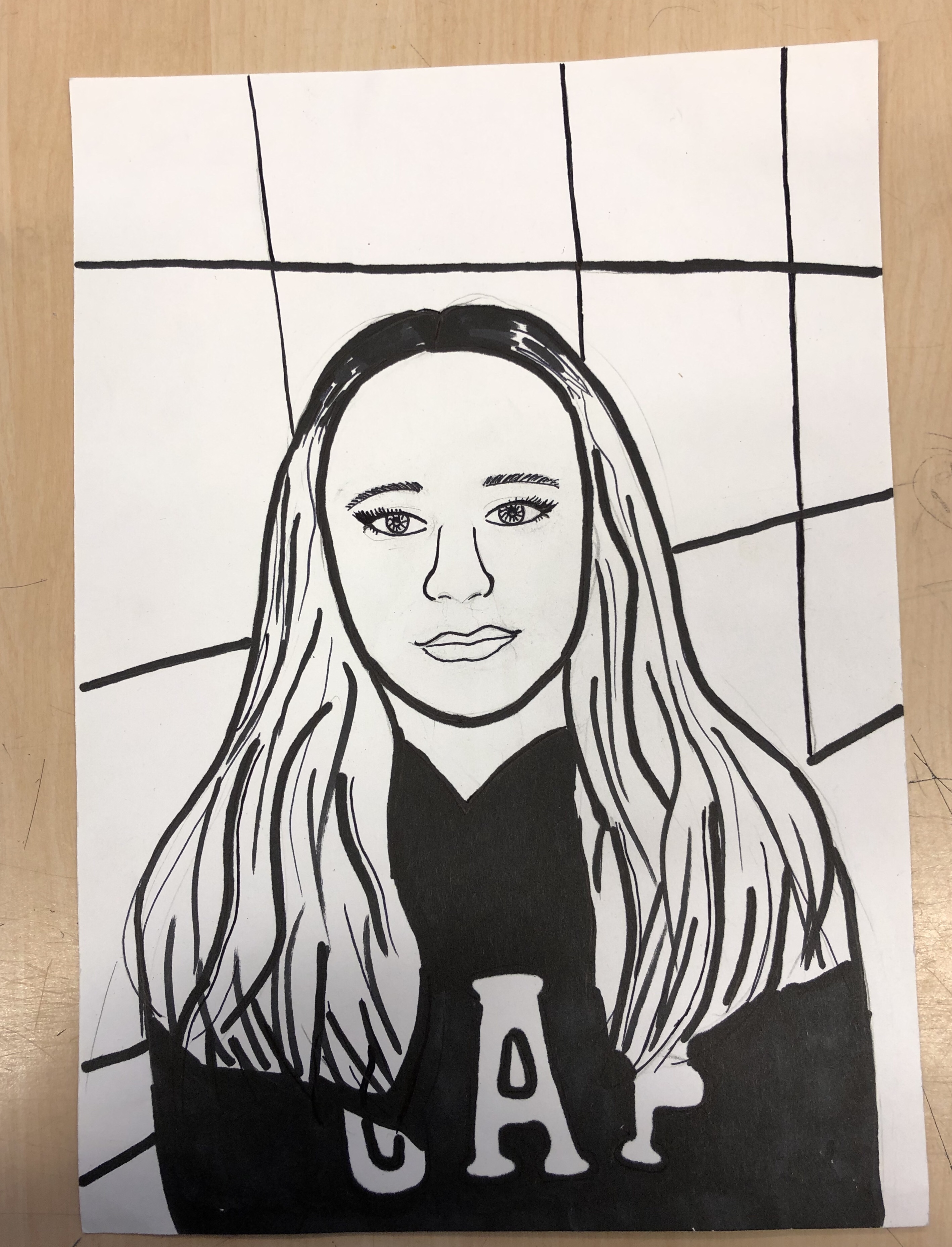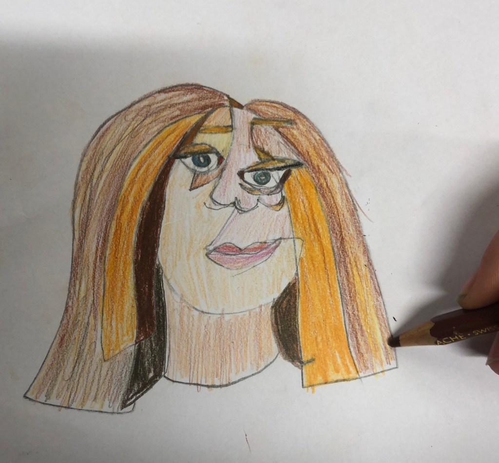 Många lektioner har gått åt till att skapa sig själv som monster mha oljepastell på A3-papper. Projektet avslutas med en digital twist.