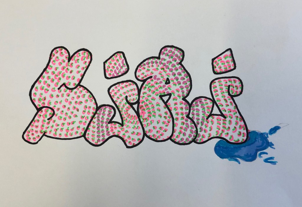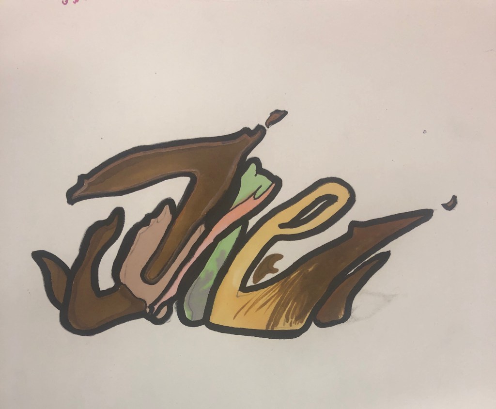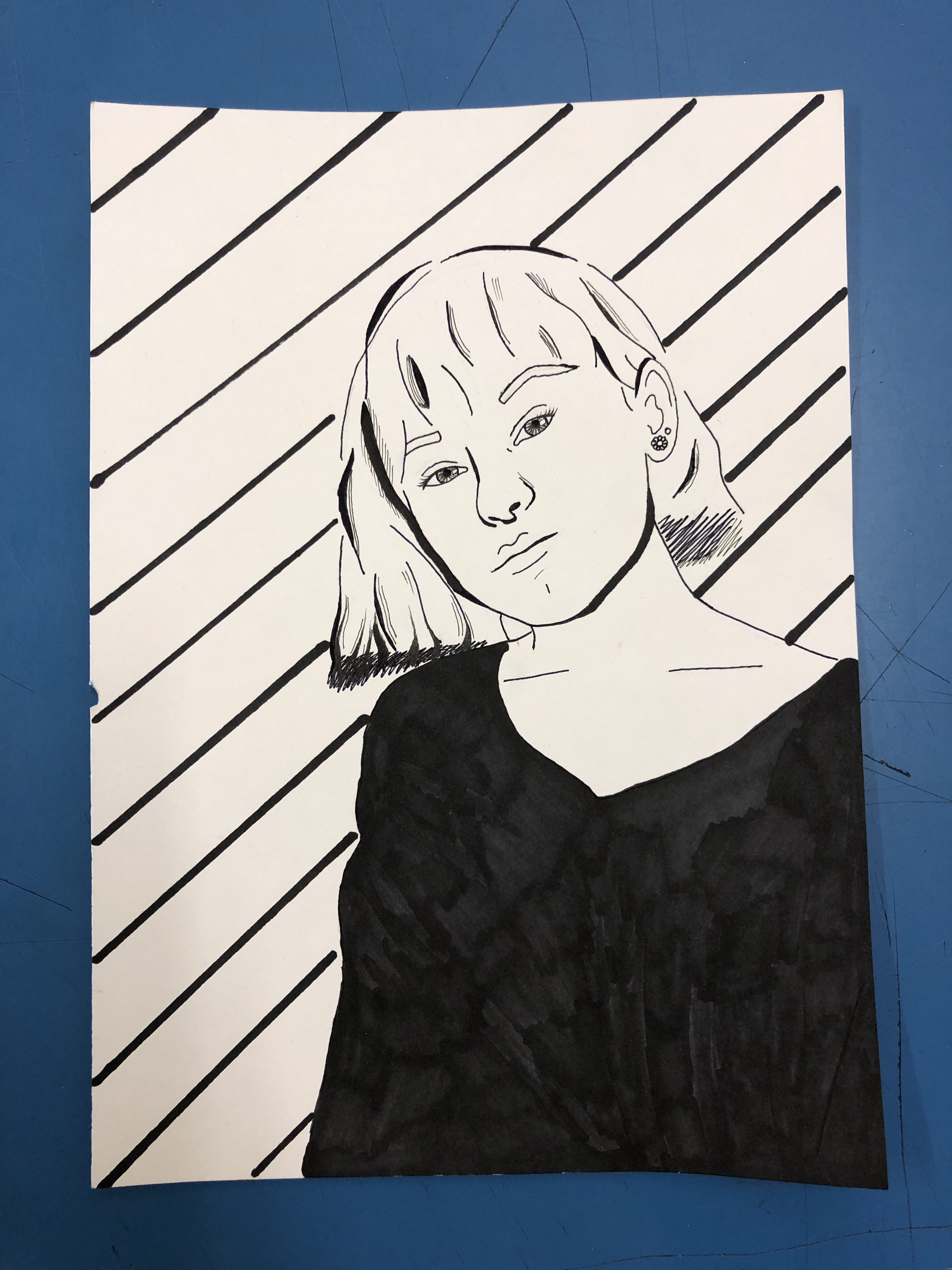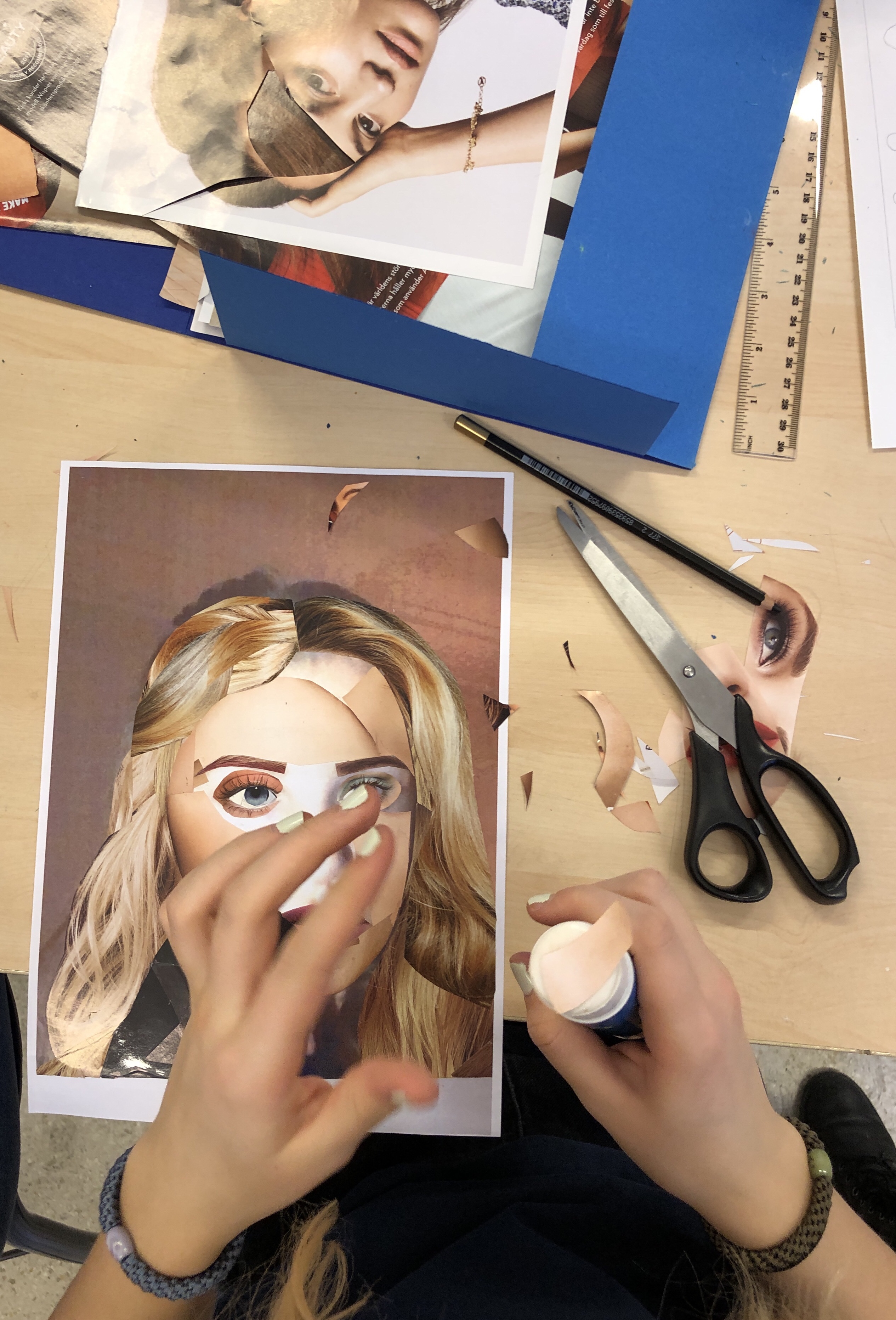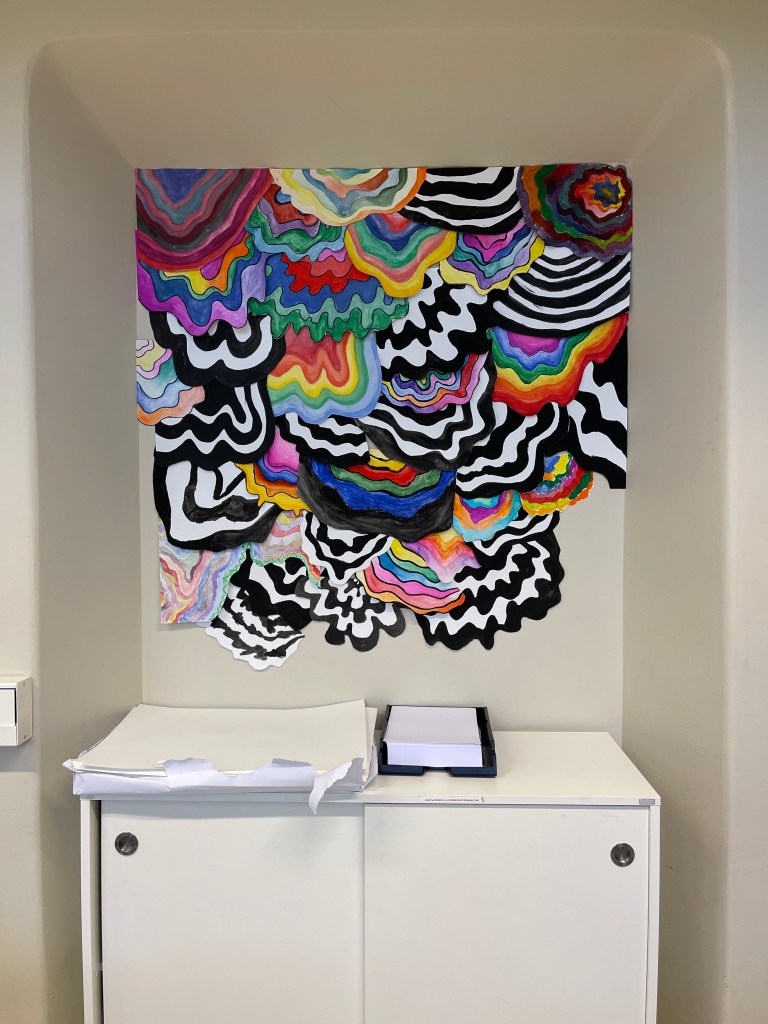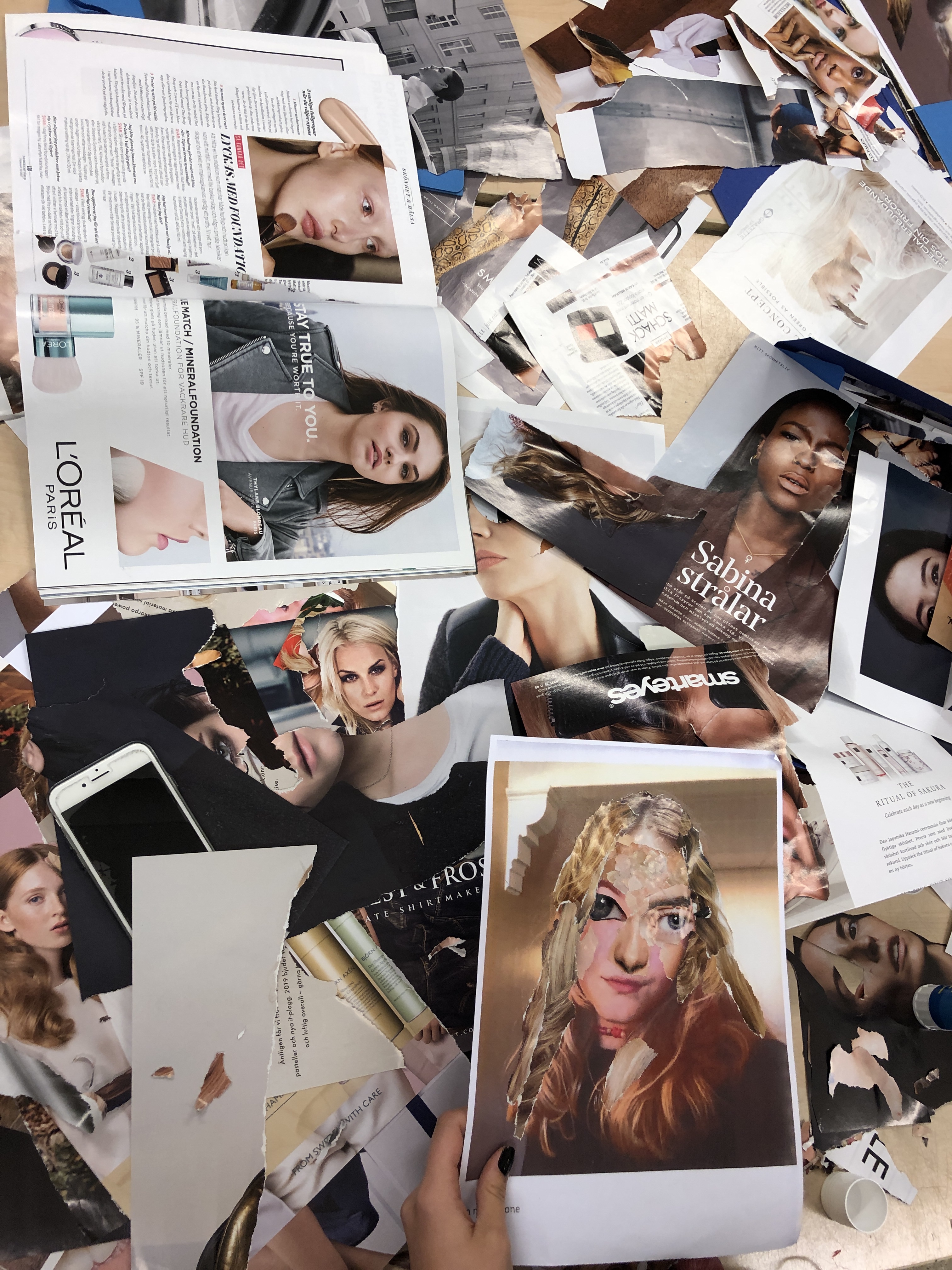 Många lektioner har gått åt till att skapa sig själv som monster mha oljepastell på A3-papper. Projektet avslutas med en digital twist.