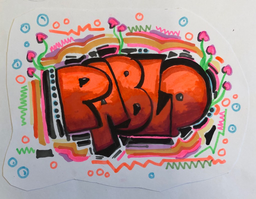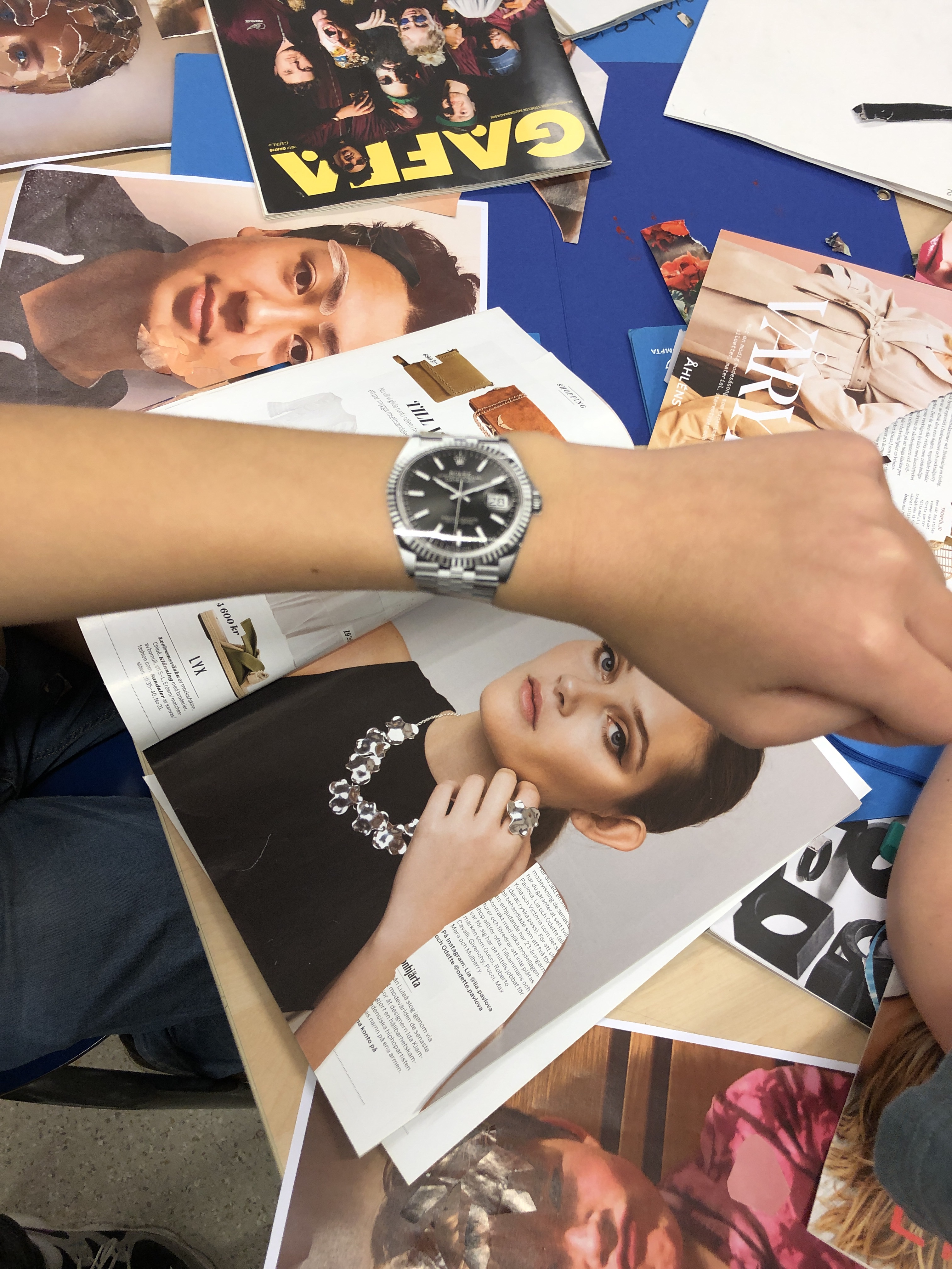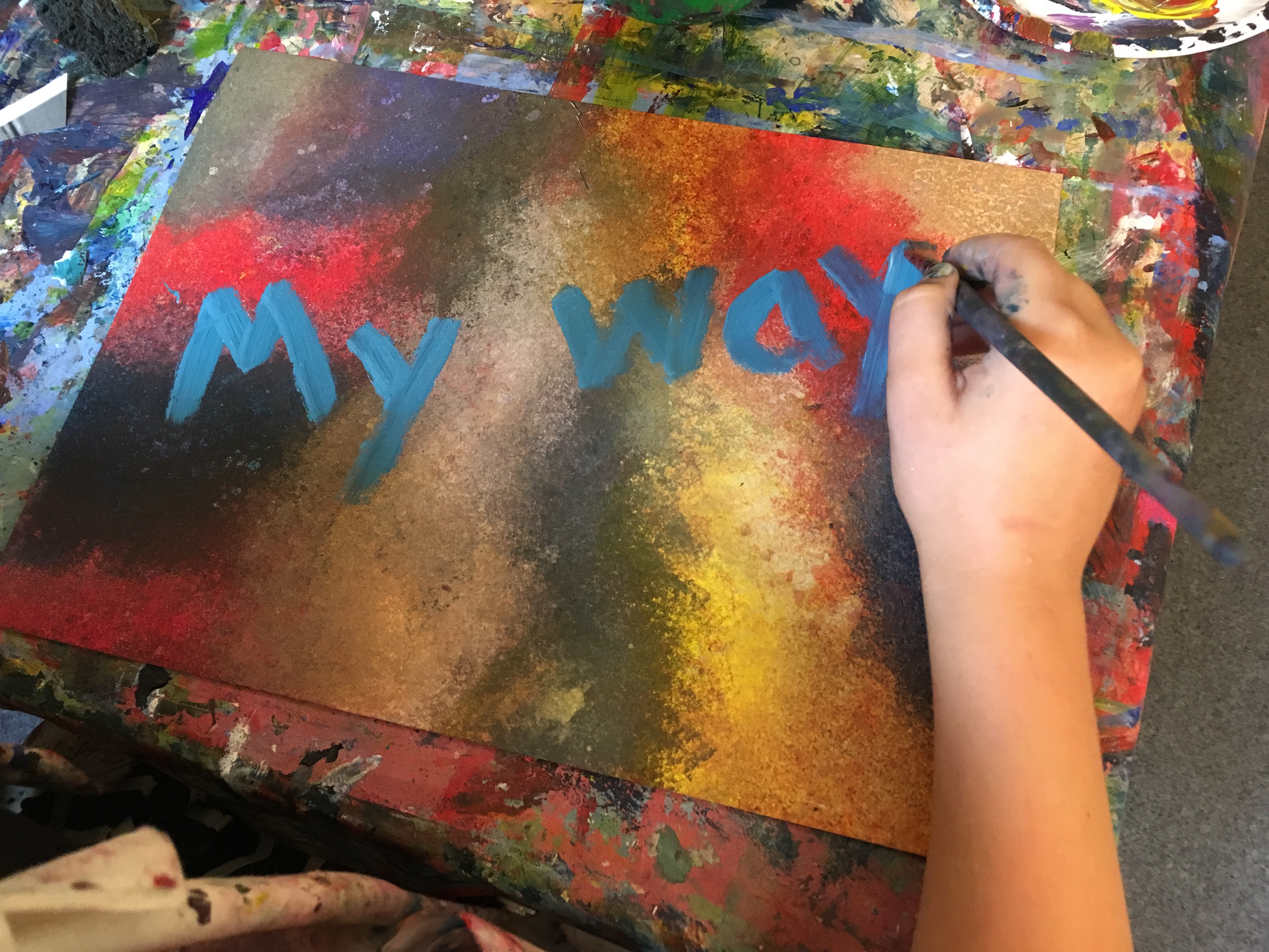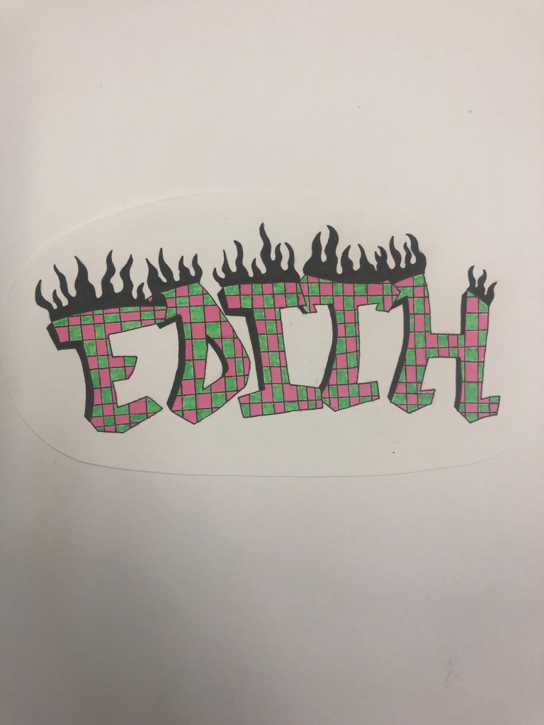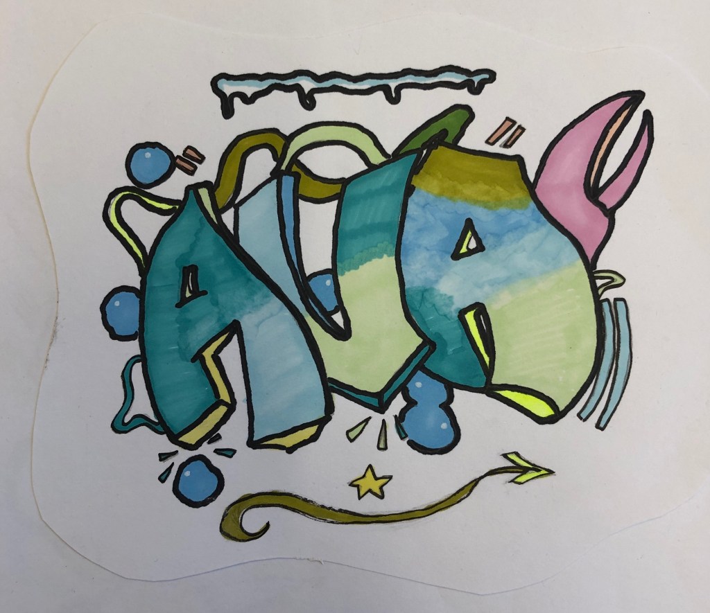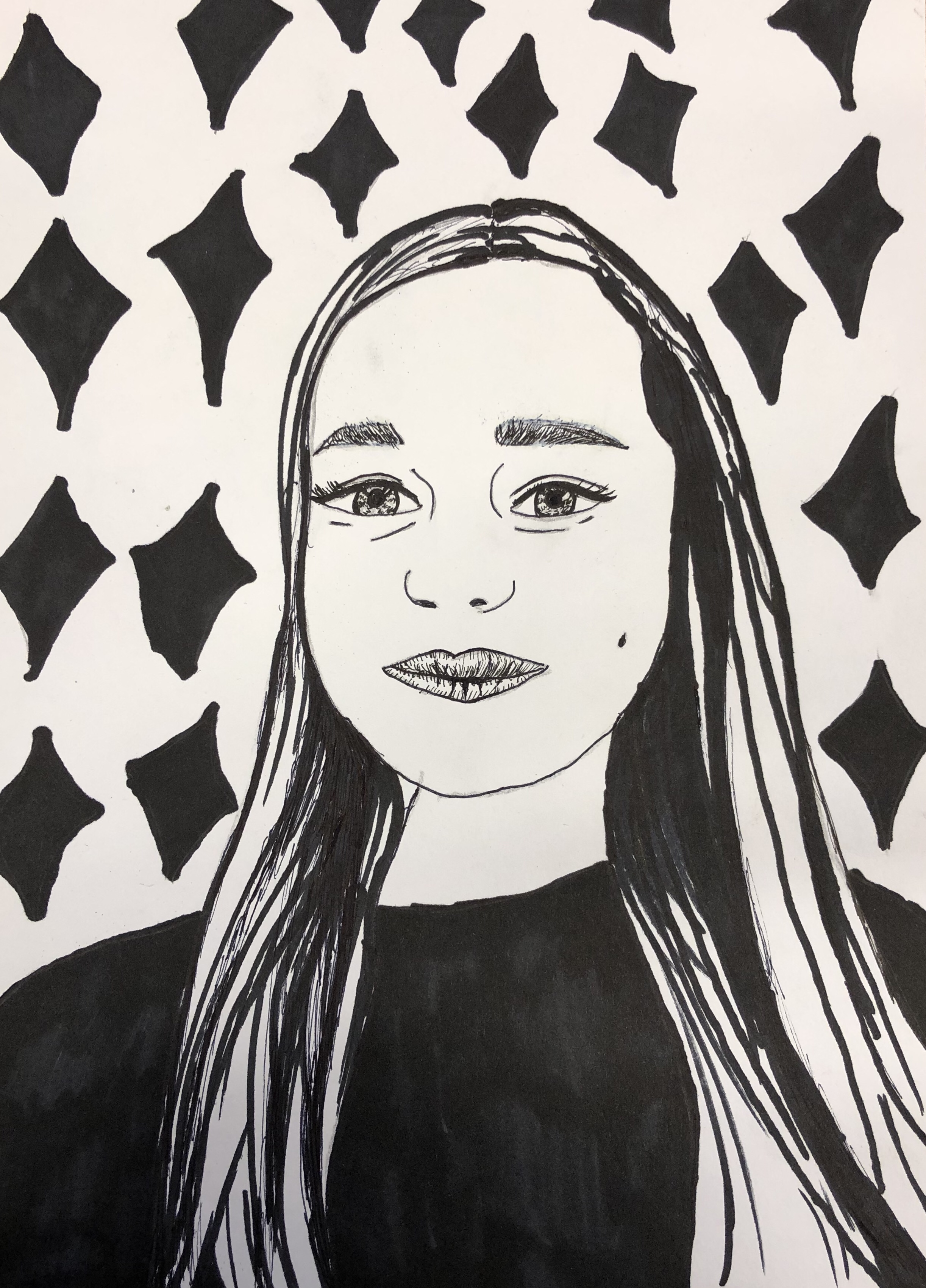 Många lektioner har gått åt till att skapa sig själv som monster mha oljepastell på A3-papper. Projektet avslutas med en digital twist.