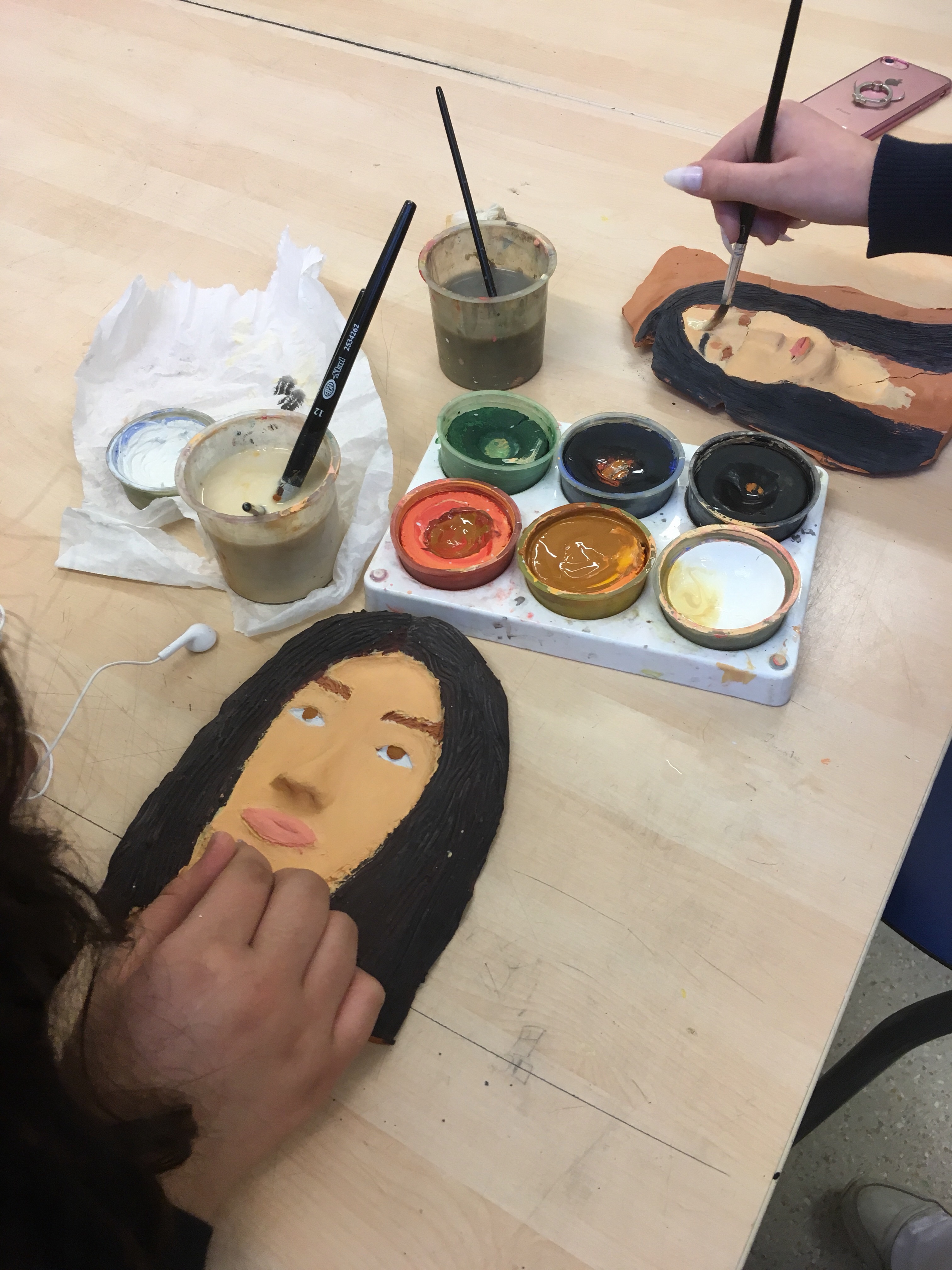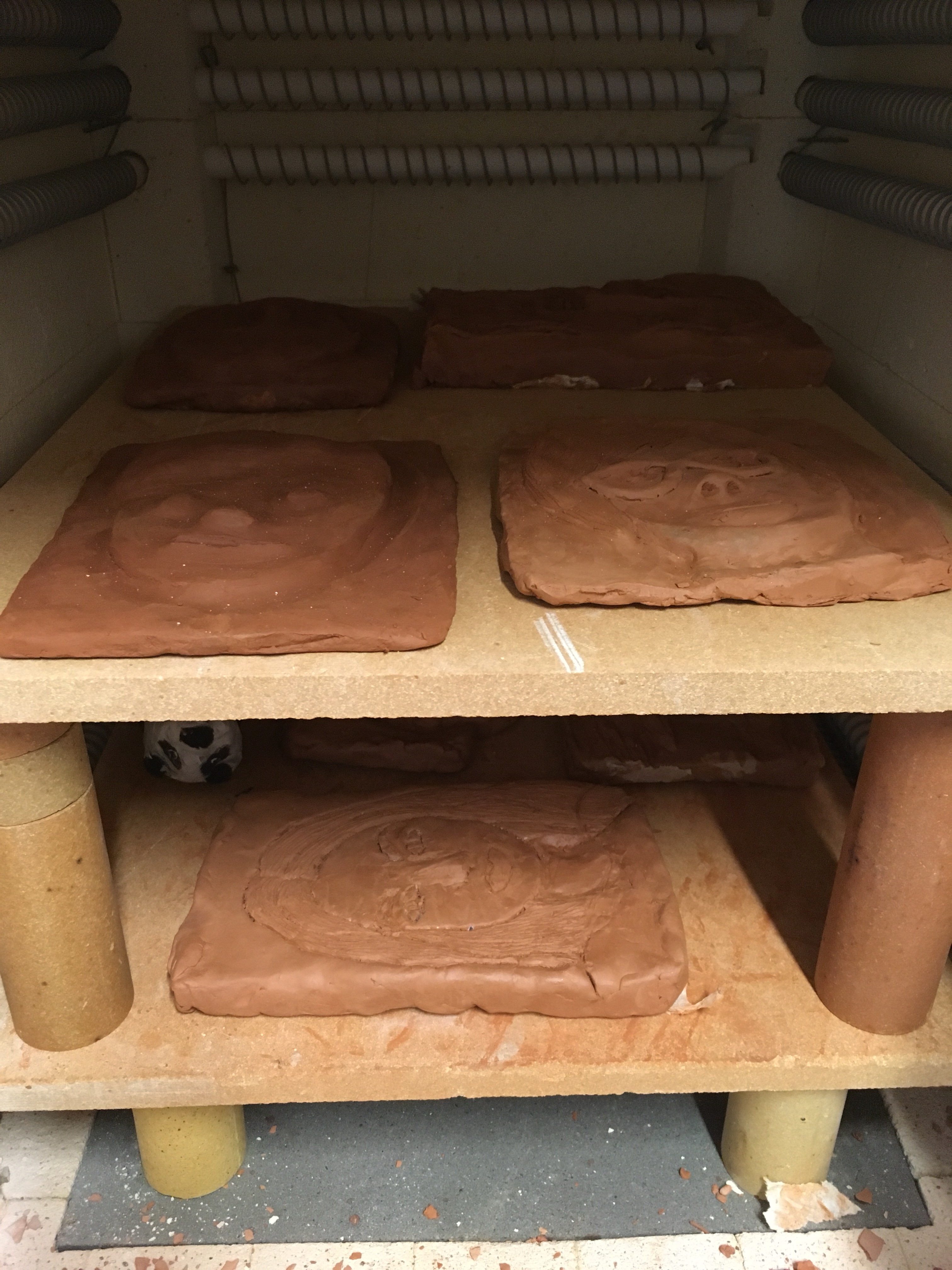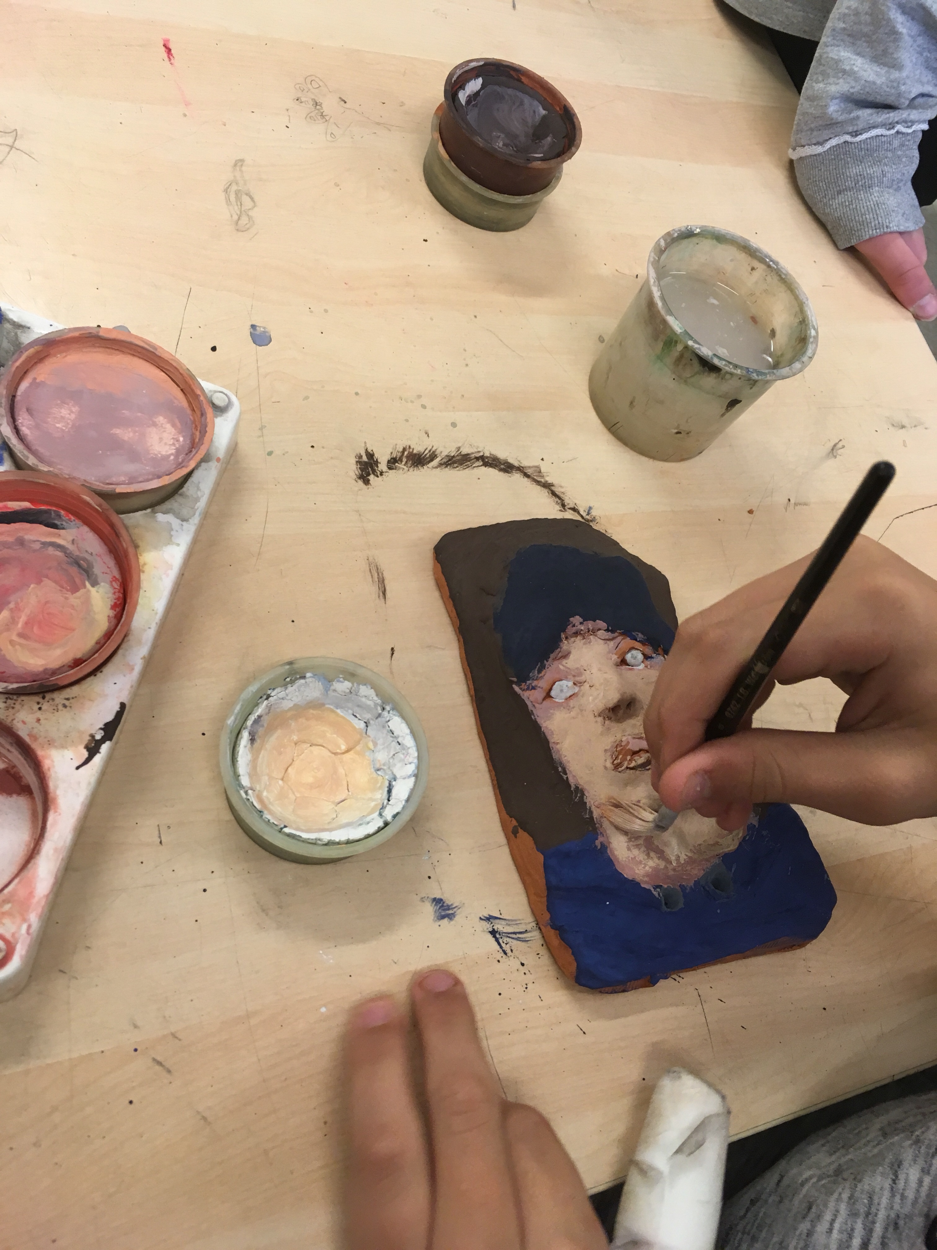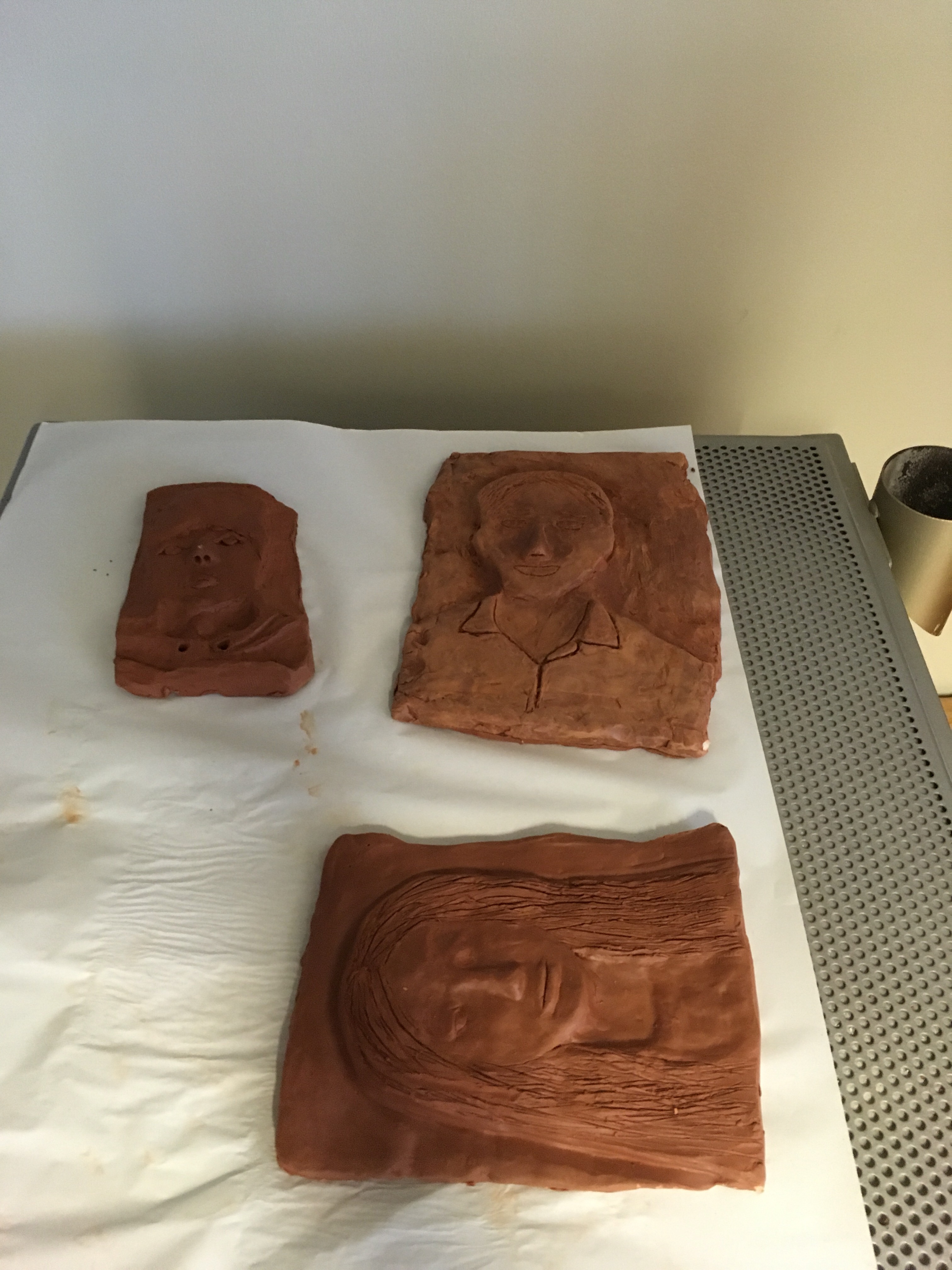 Nu är nästan alla klara med sina porträtt. Några har hunnit bränna och börja måla.