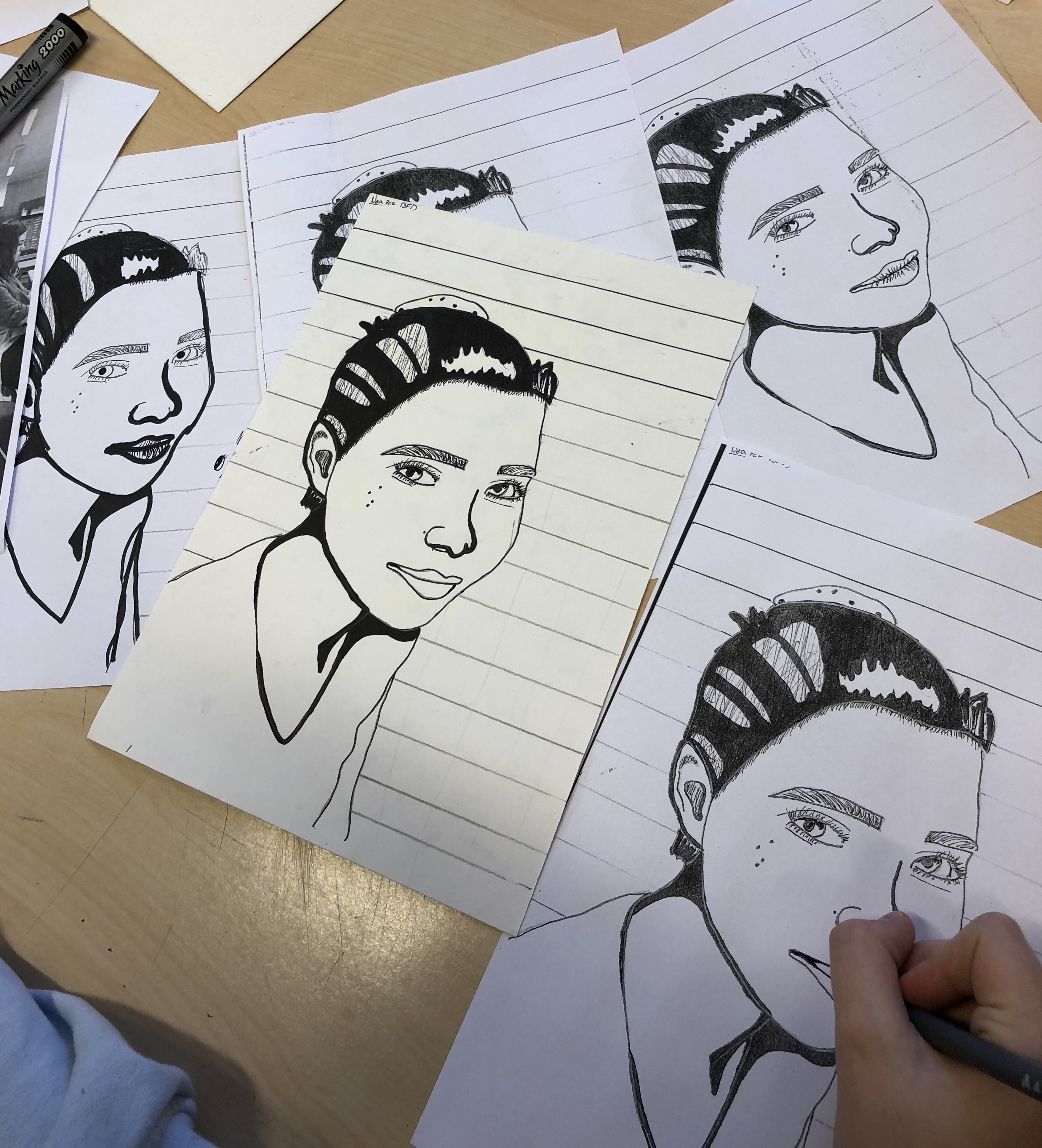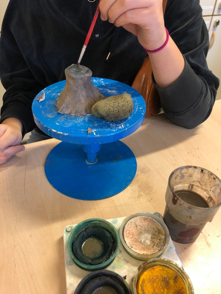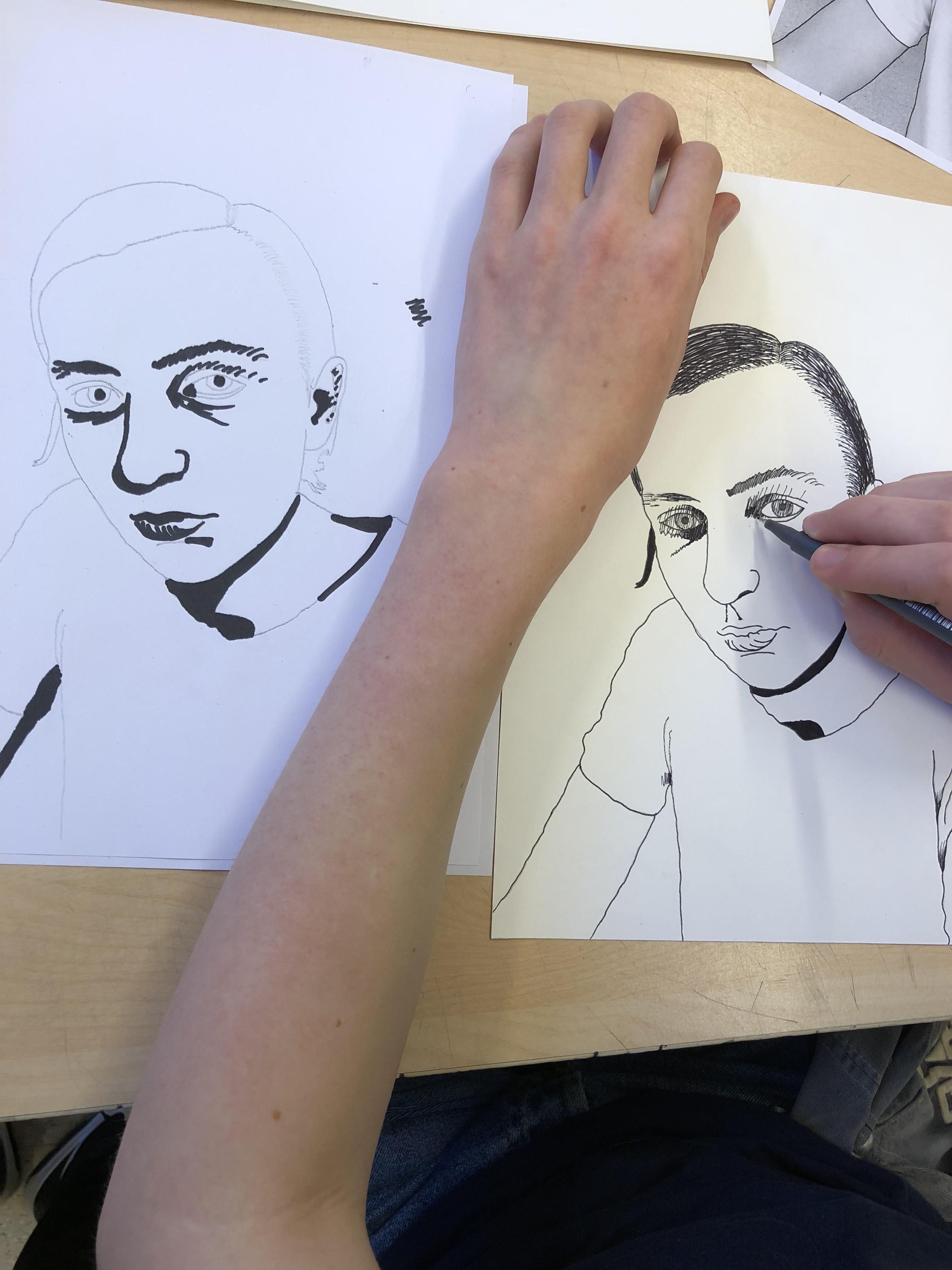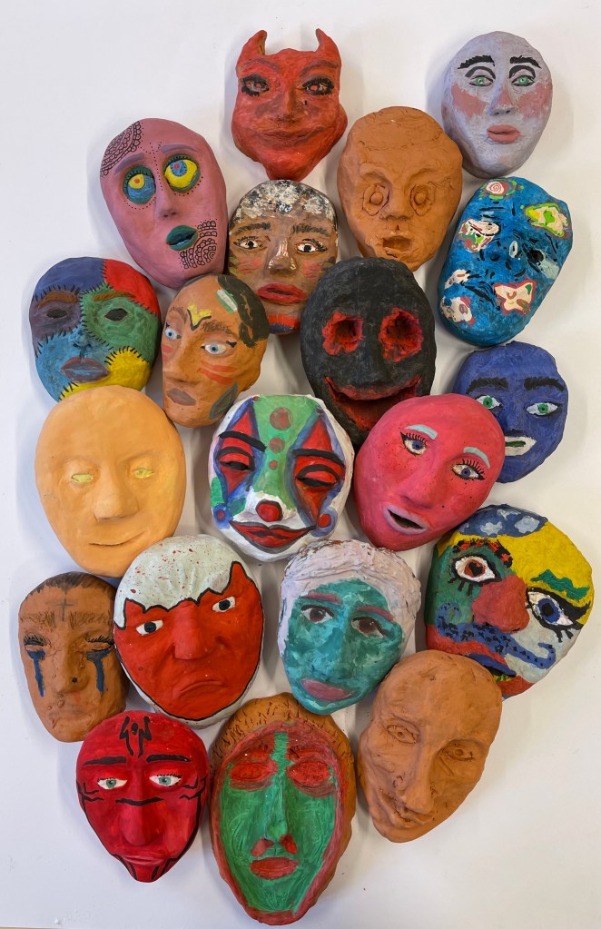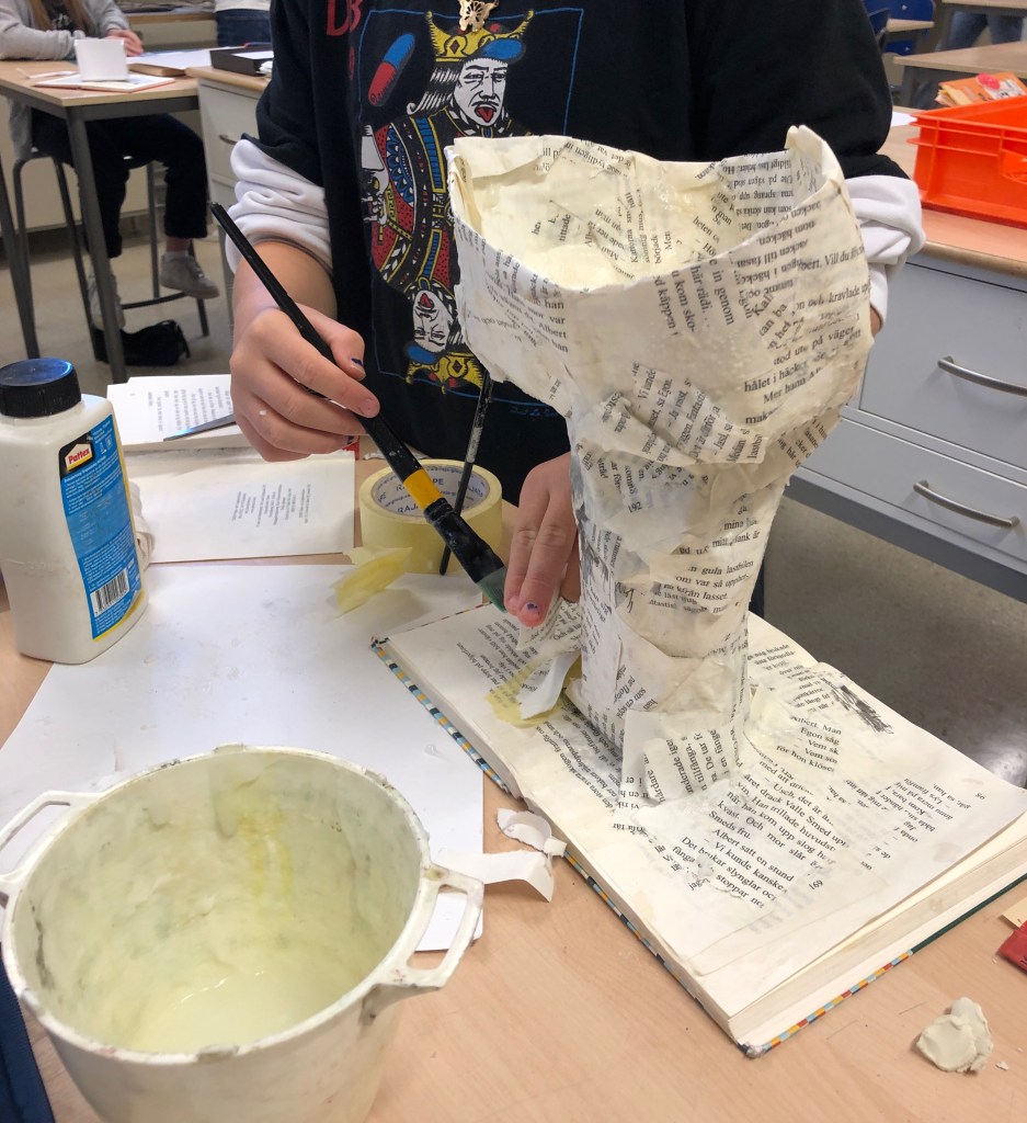 Nu är nästan alla klara med sina porträtt. Några har hunnit bränna och börja måla.