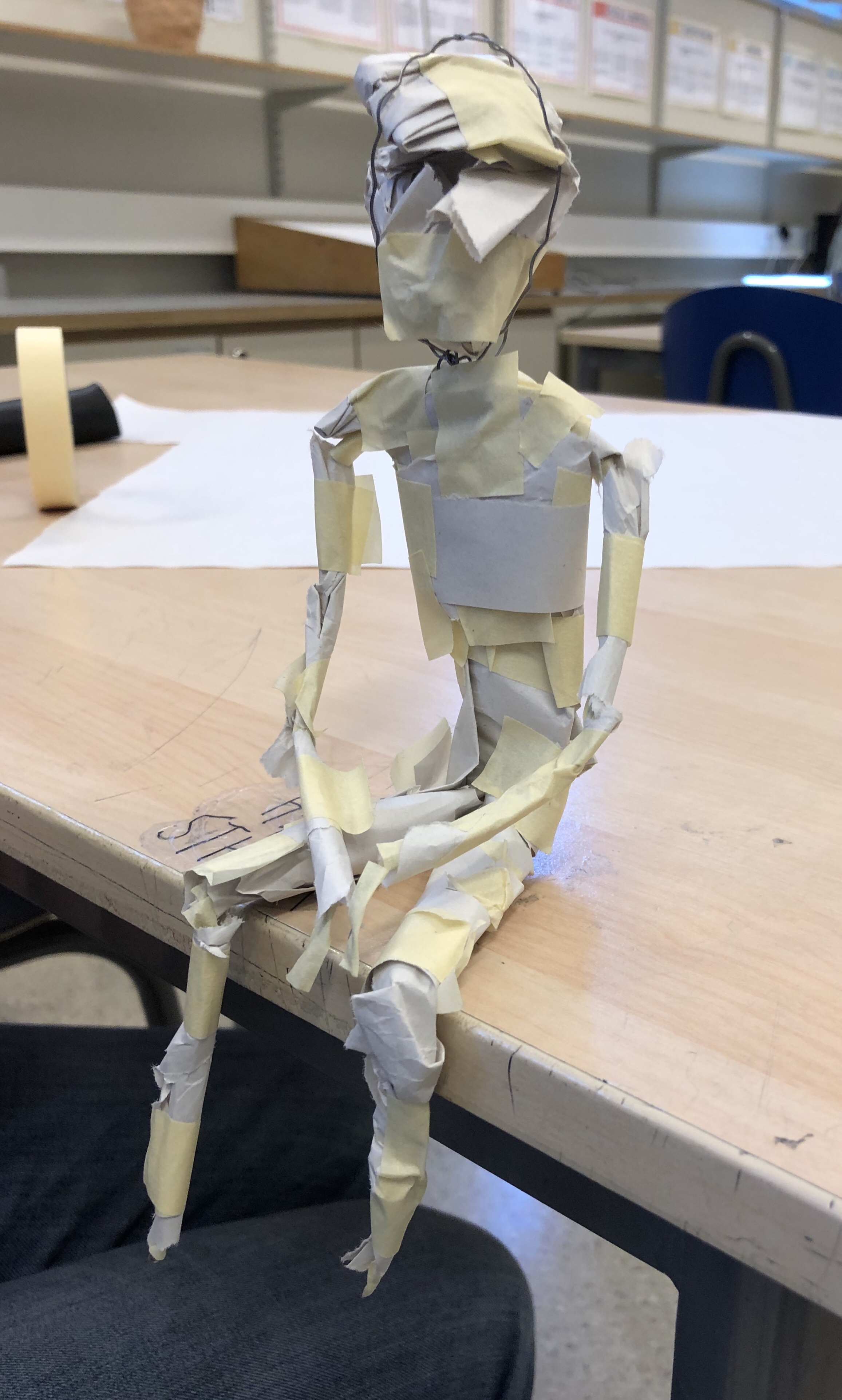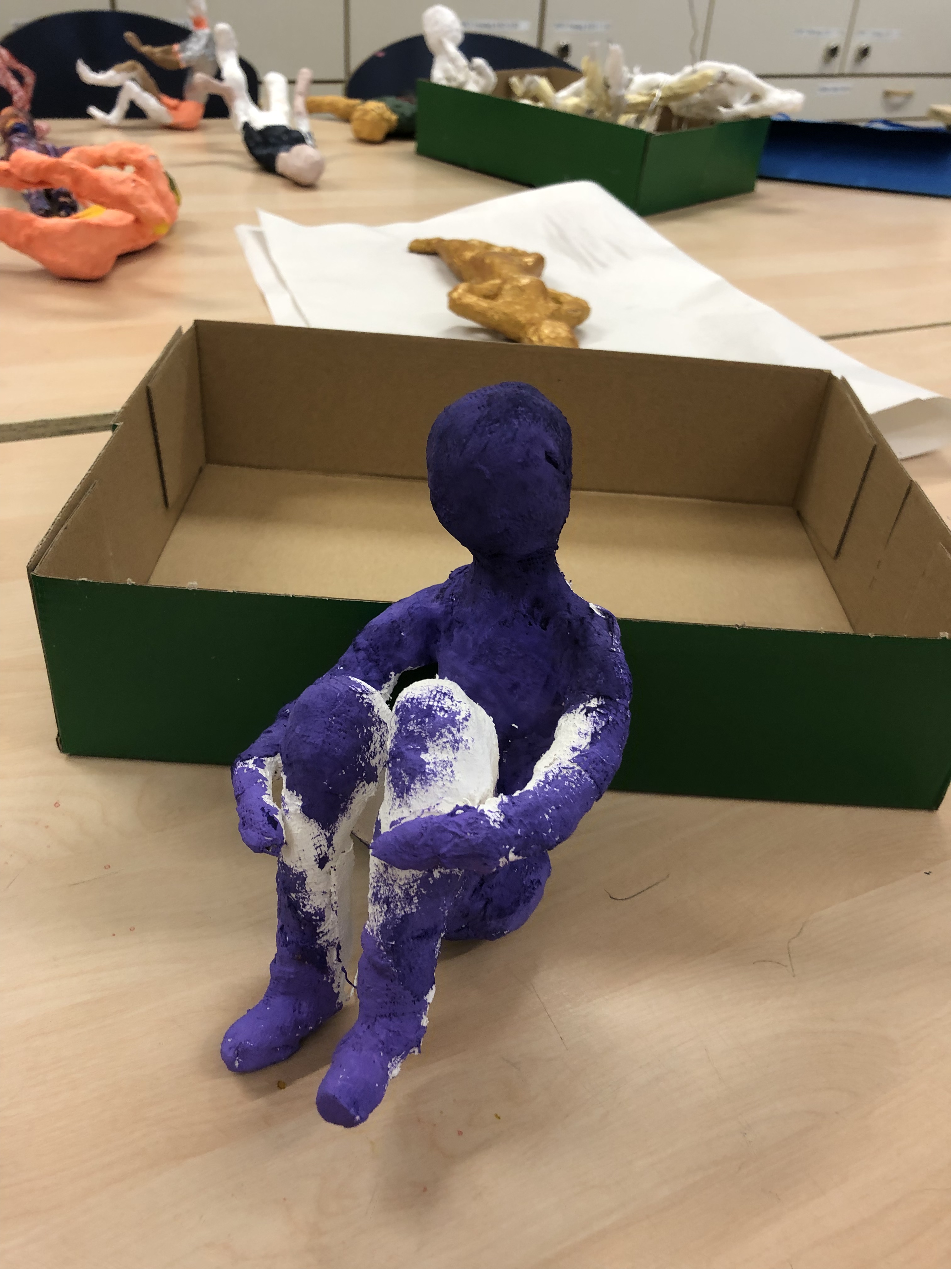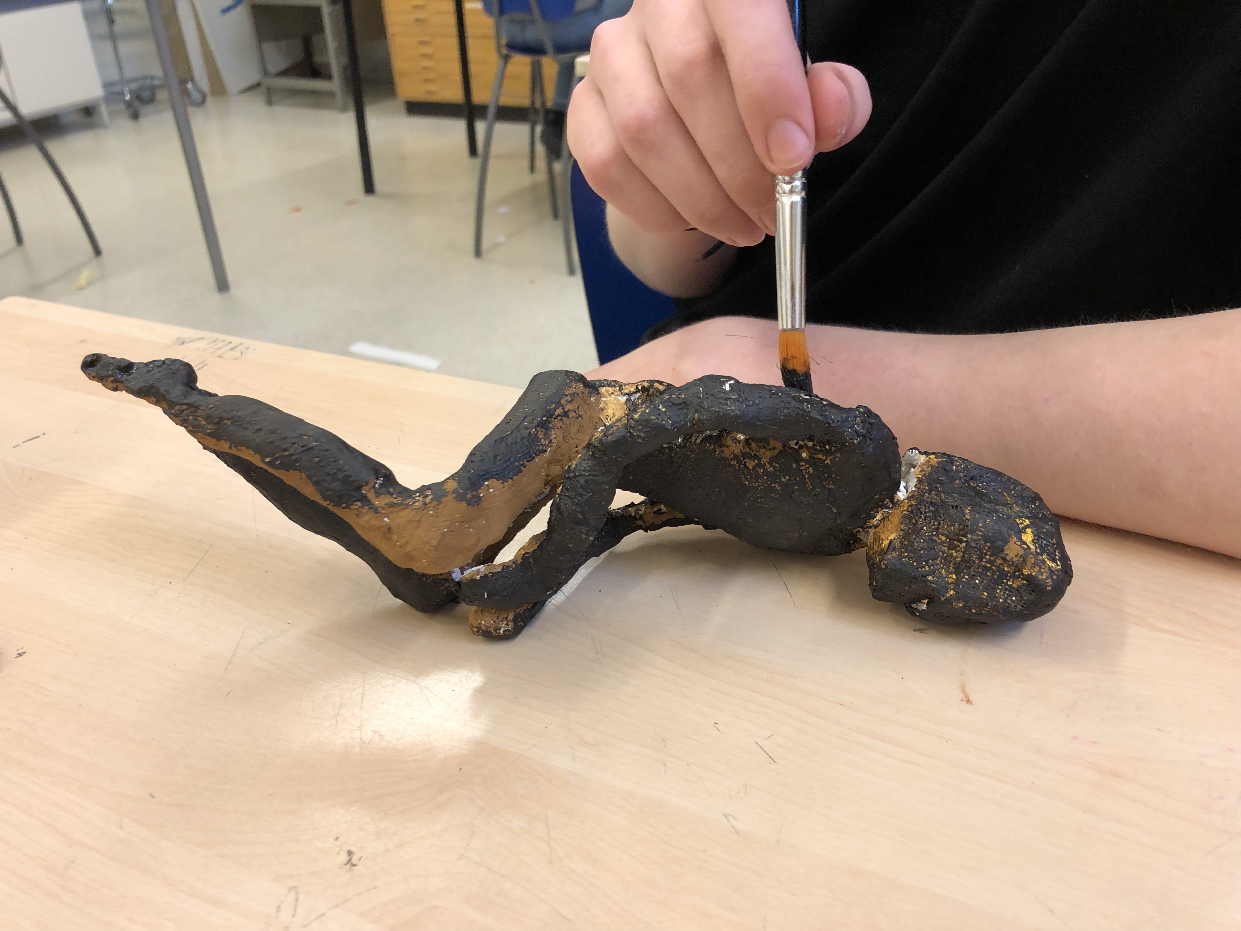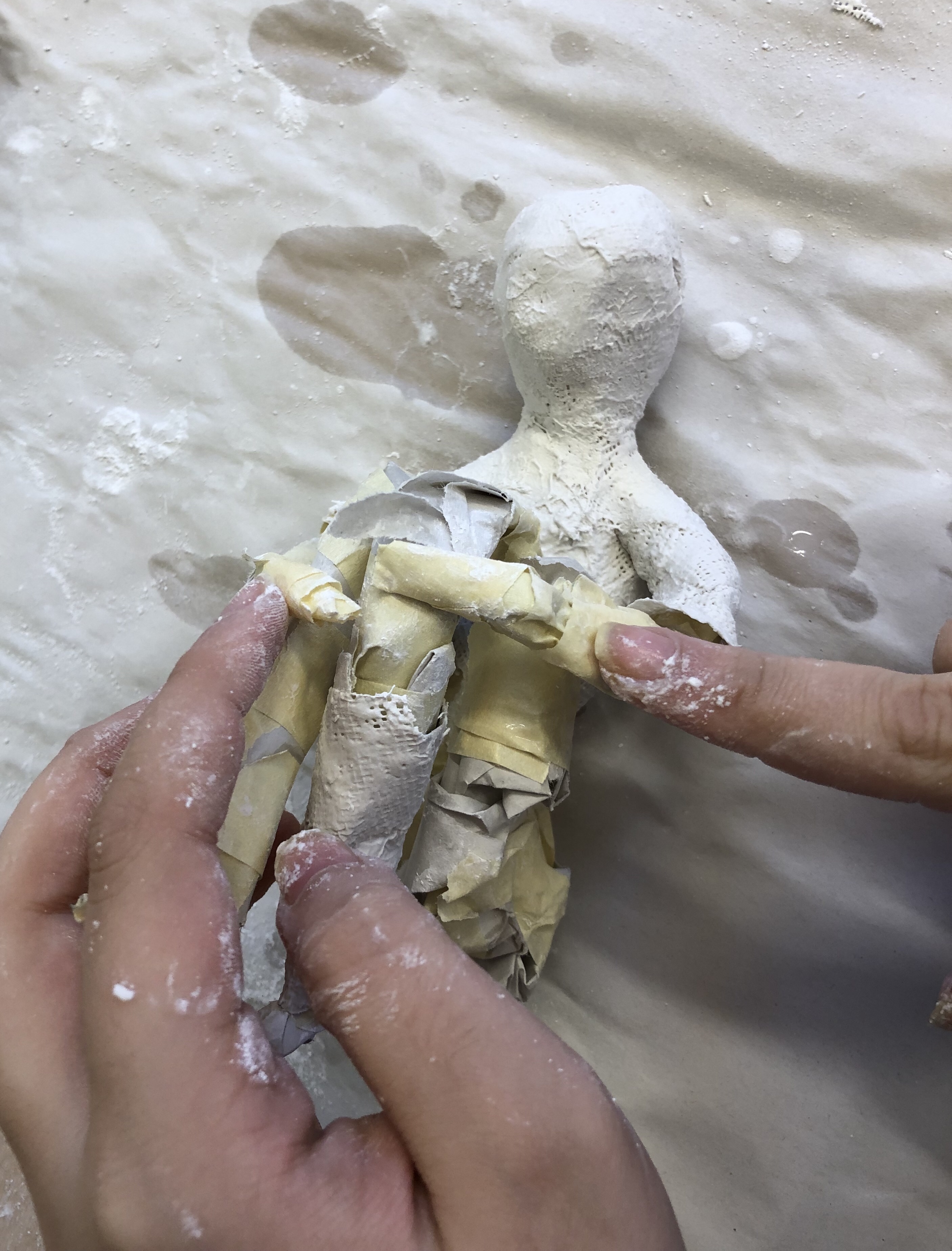 Nu börjar figurerna ta form! Ståltråd, papper och tejp och slutligen gips!