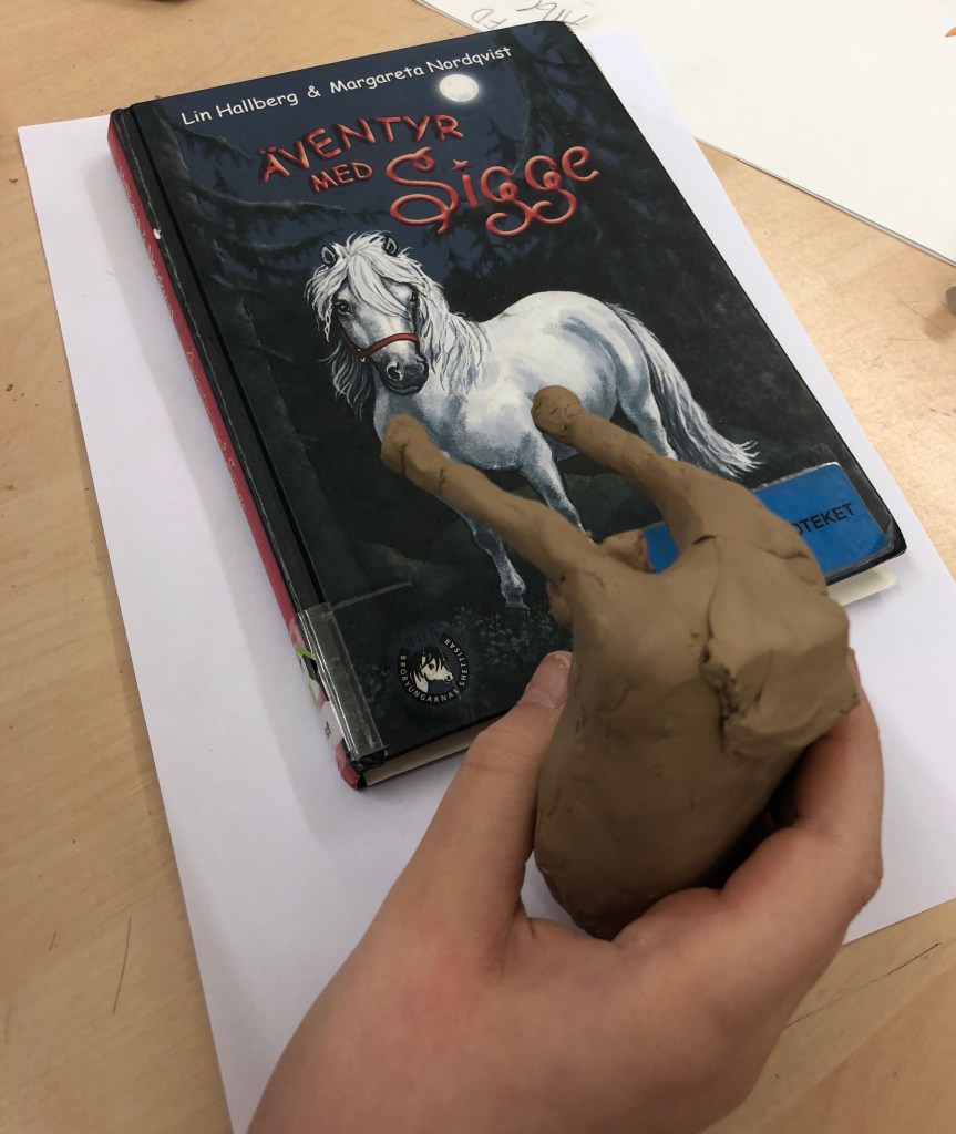 Eleverna har hämtat varsin utgallrad bok från biblioteket och ska nu ge boken liv genom att bygga upp/ut den i 3D (utifrån vad boken handlar om).