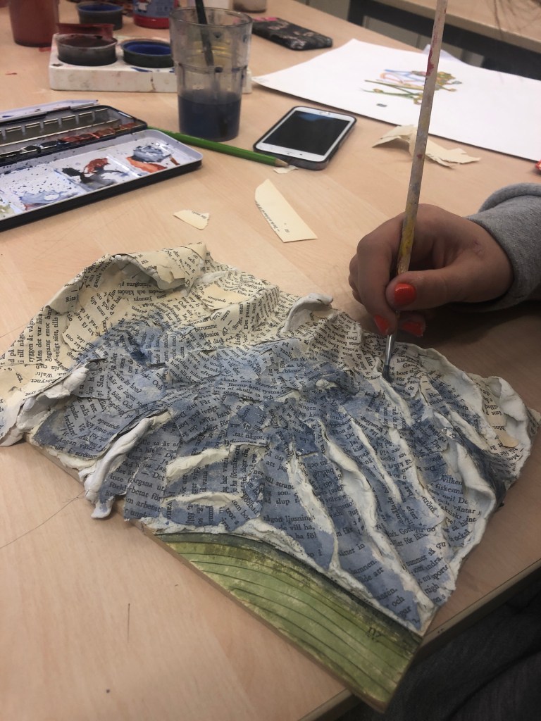 Vi har jobbat parallellt med lera och collage. Här har vi skapat en liten fantasistad. Bilder på processen kommer…