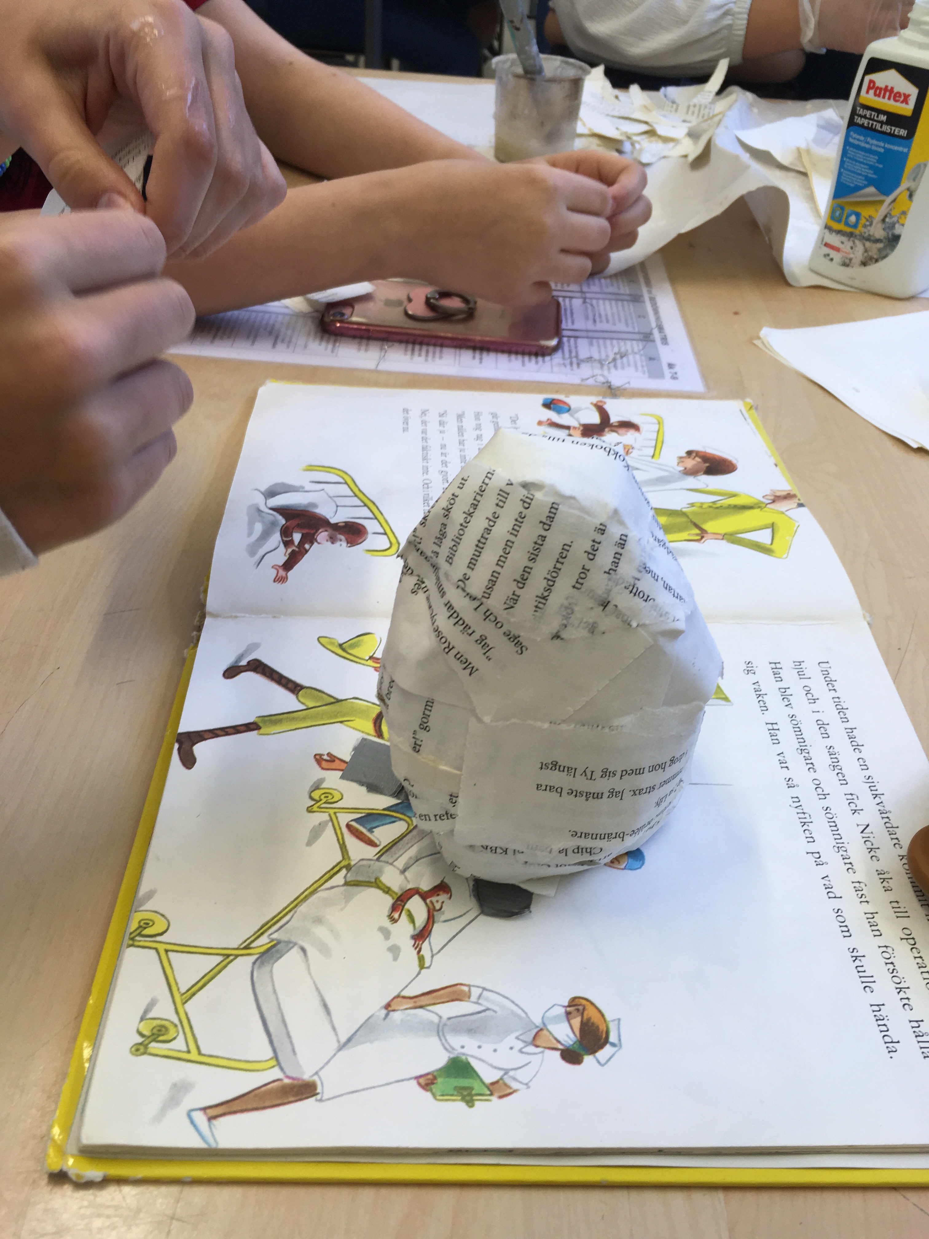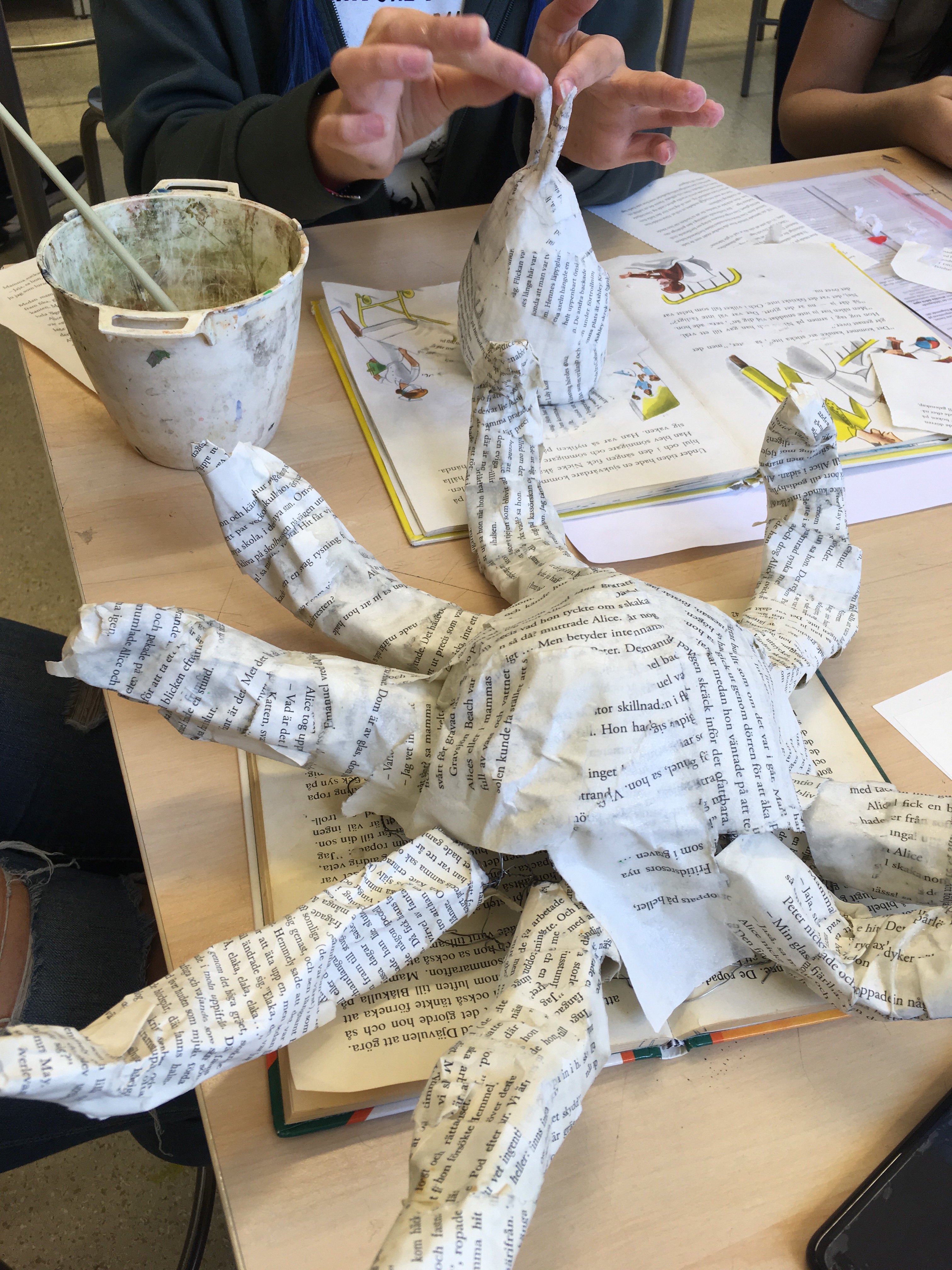 Åk 7 jobbar på inför utställningen på världsbokdagen. Vi på boo gård har valt att hylla Astrid Lindgren! Sjuorna bygger upp scener och karaktärer från hennes böcker/filmer. Böckerna är utgallrade från biblioteket och skulle annars kastas.