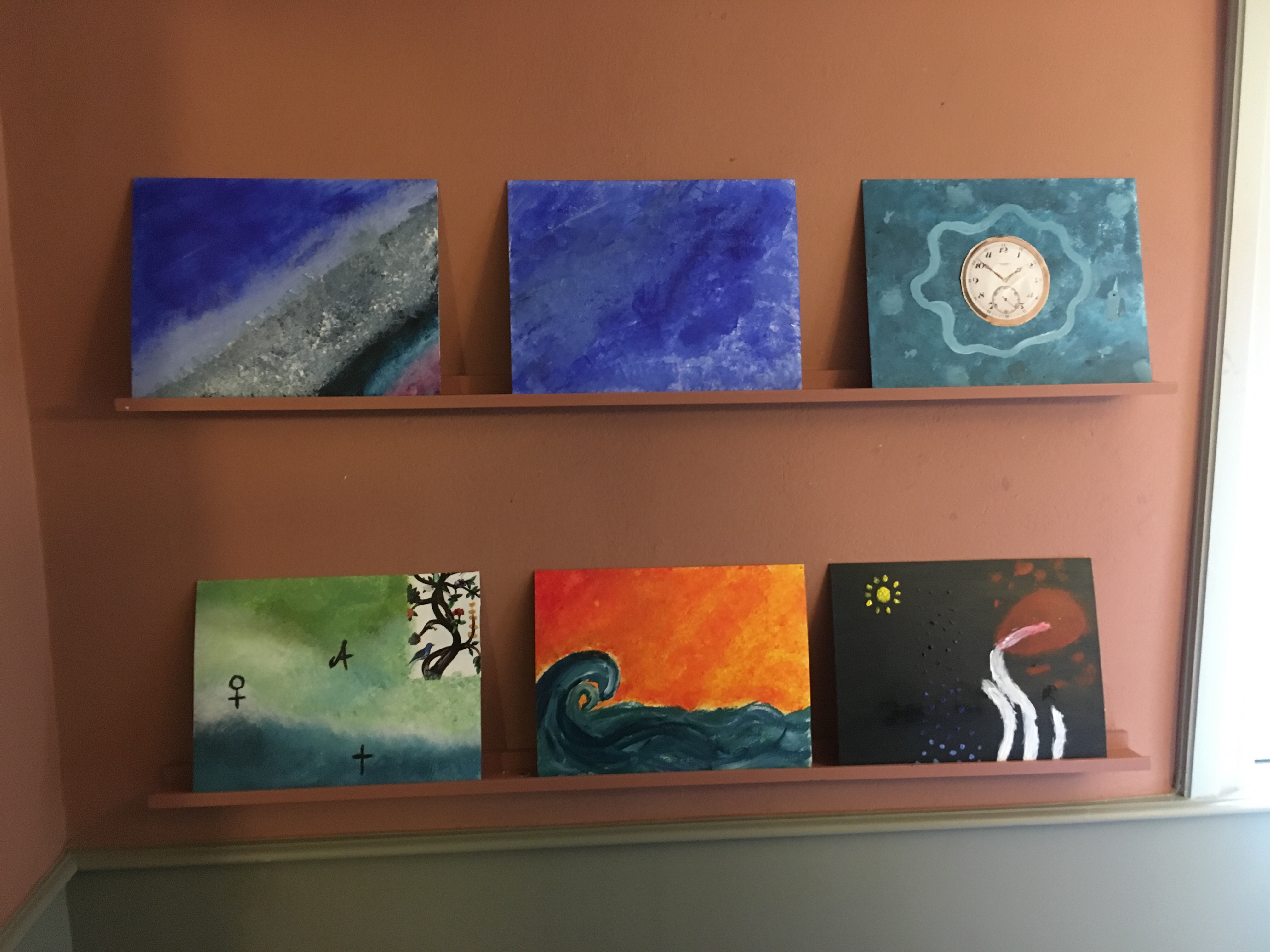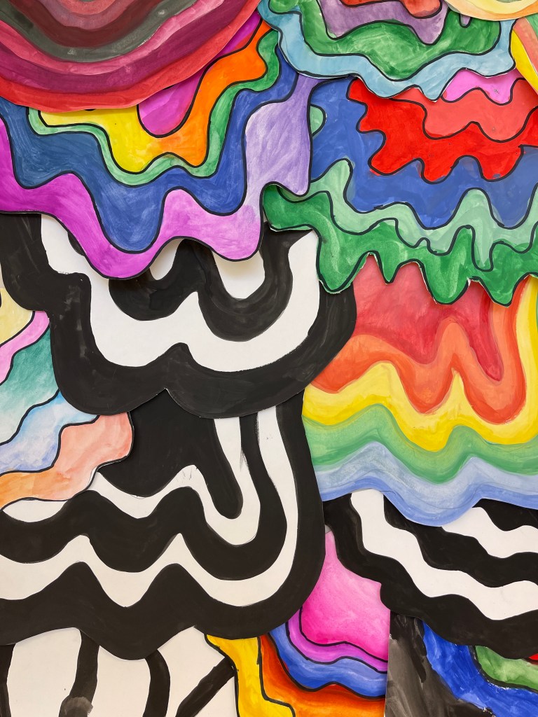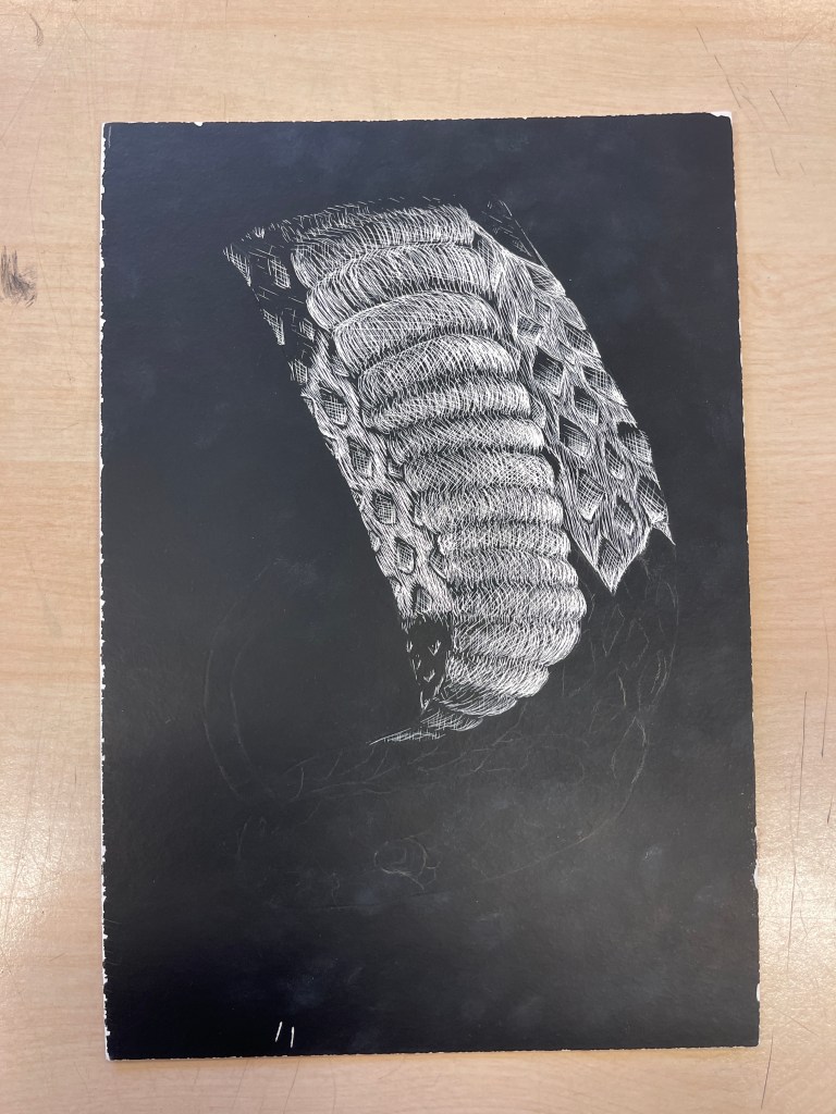 Åk 7 har gjort monster i oljepastell i A3-format. Monstret ska befinna sig i sin hemmiljö och bära på egenskap/utseende som eleven själv har.