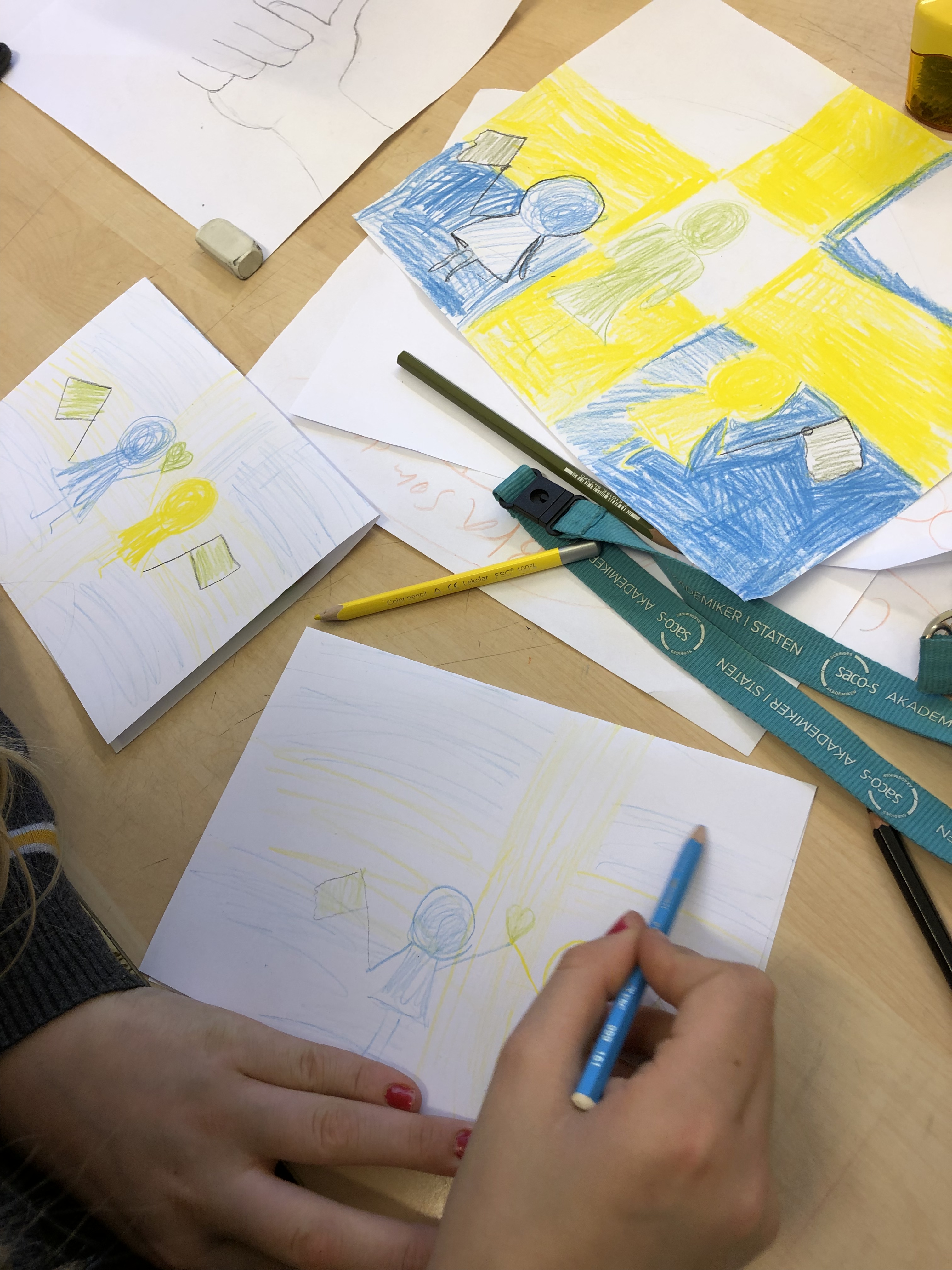 Nu är sjuorna igång med första bilduppgiften- att visualisera ett ord.