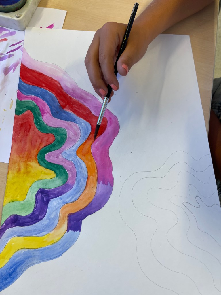 Nu har vi börjat jobba med akvarellfärgpennorna! Det går sen att jobba med färgen om man går över den med en blöt pensel.