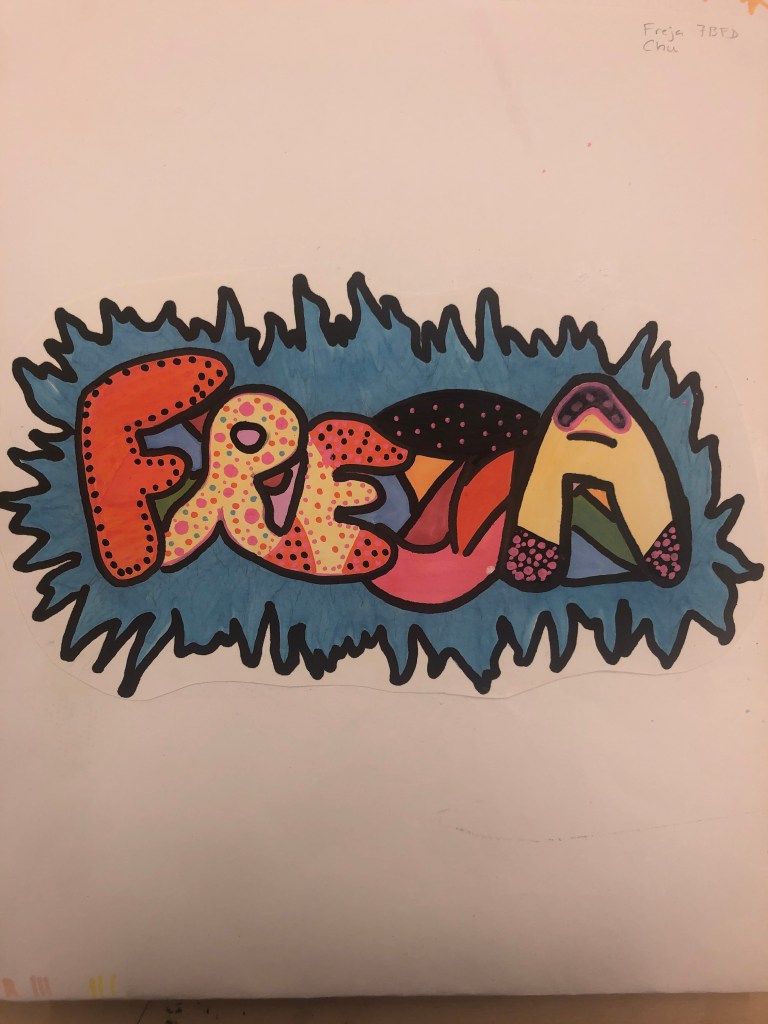 Denna termin har vi skapat egna pokemons, med egenskaper/utseende från en själv. Vi har lärt oss jobba med oljepastellkritor. Del 2 gick ut på att ta ett foto och redigera in sin Pokémon i den miljön på skolan.