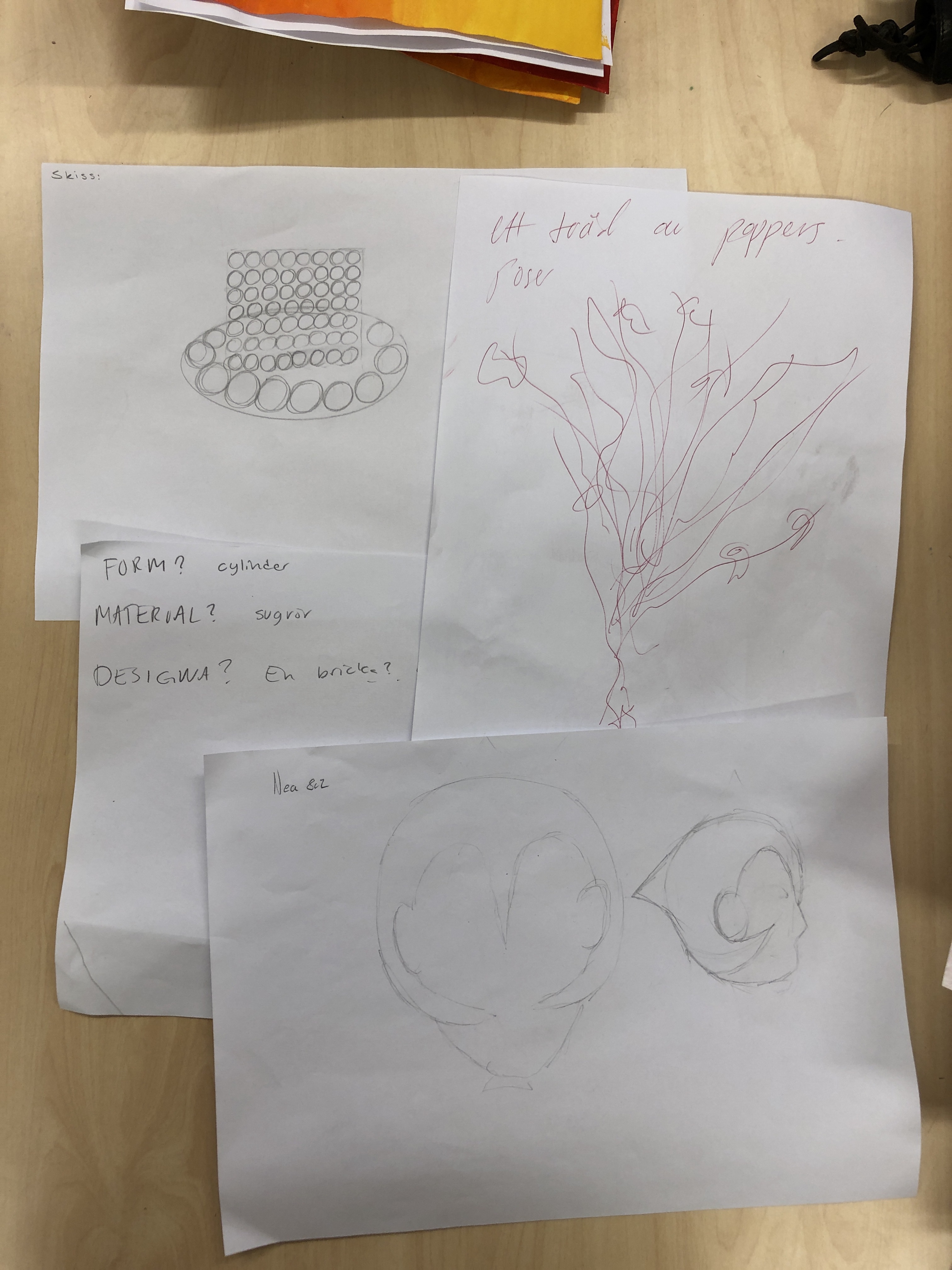 Här kommer några skisser. Vi ska sen jobba med vaxkritor till färgsättningen.