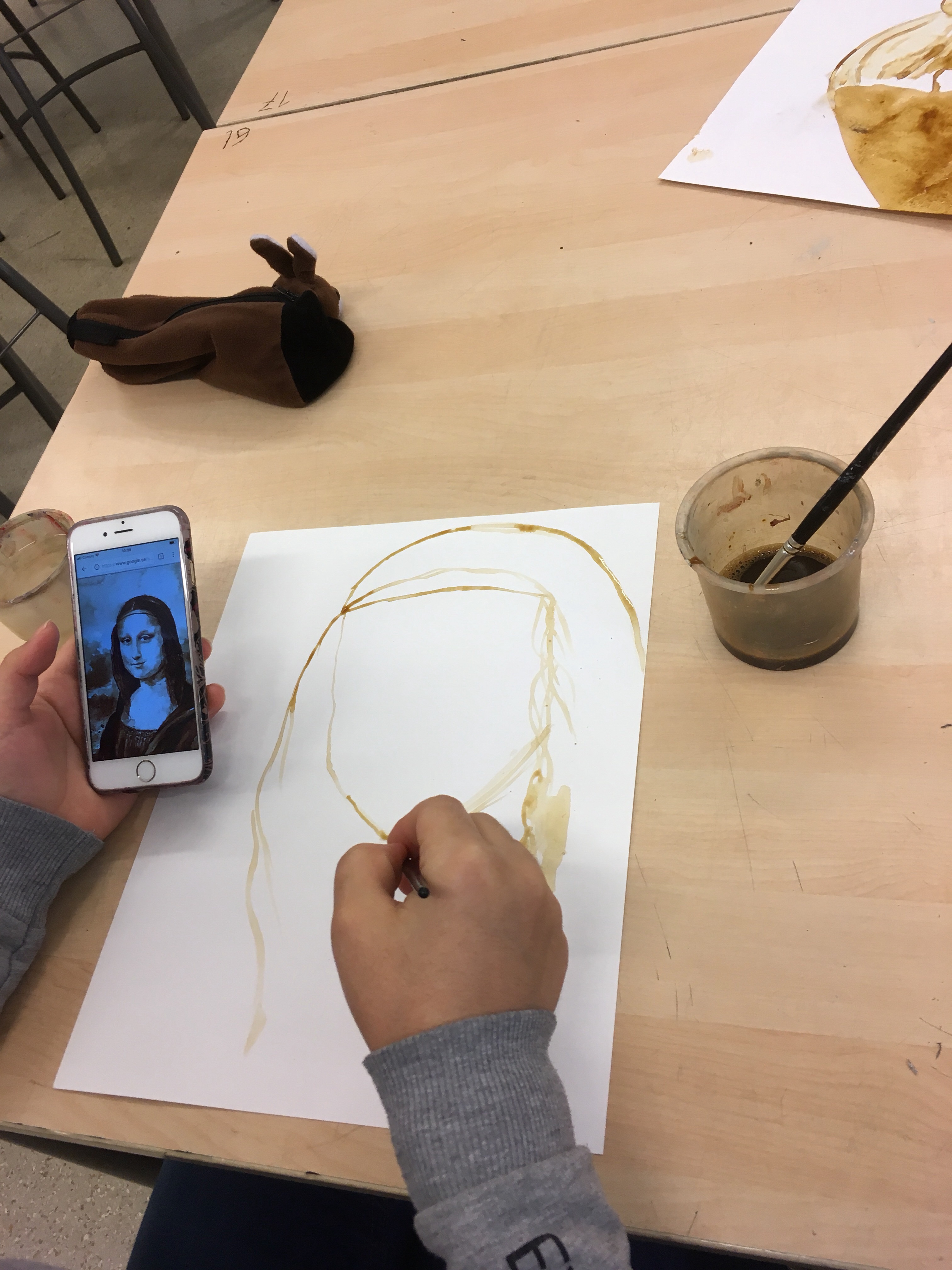 Vi redovisade våra förändringar på de otrygga miljöerna vi identifierat på skolan. Den stunden som var kvar ägnades åt att måla med kaffe. Kommande profiltillfällen för åttorna är nere på träslöjden.