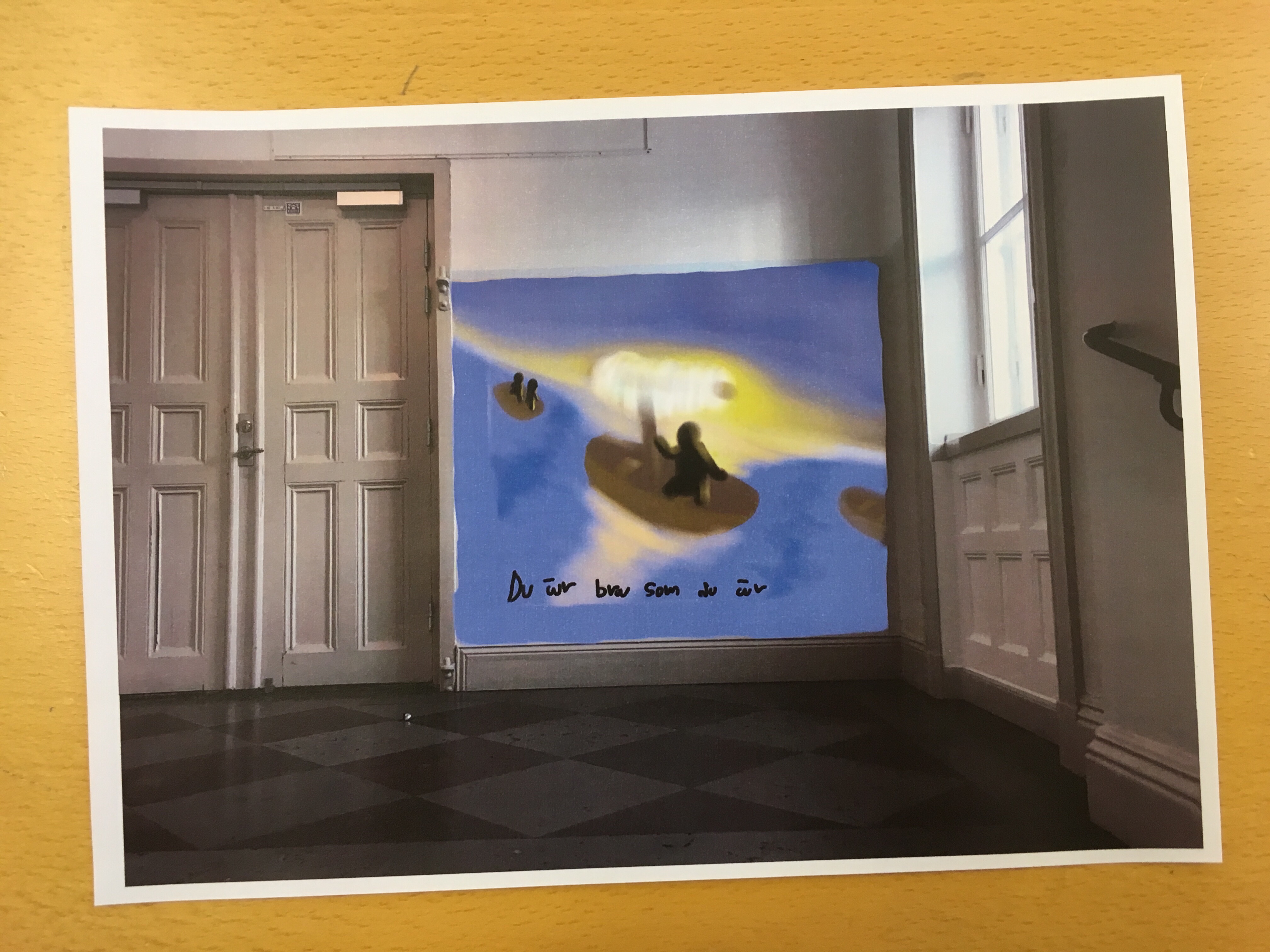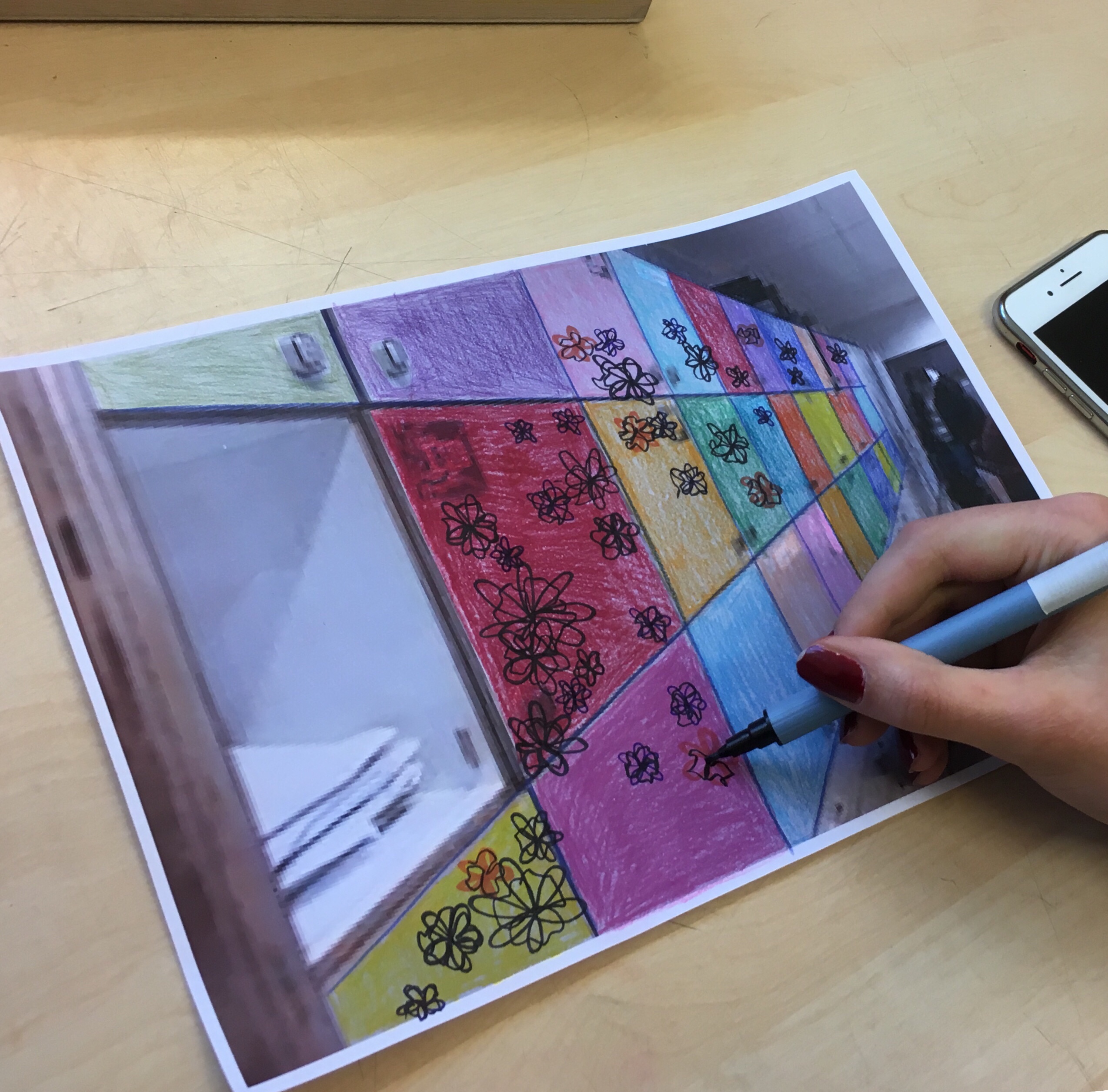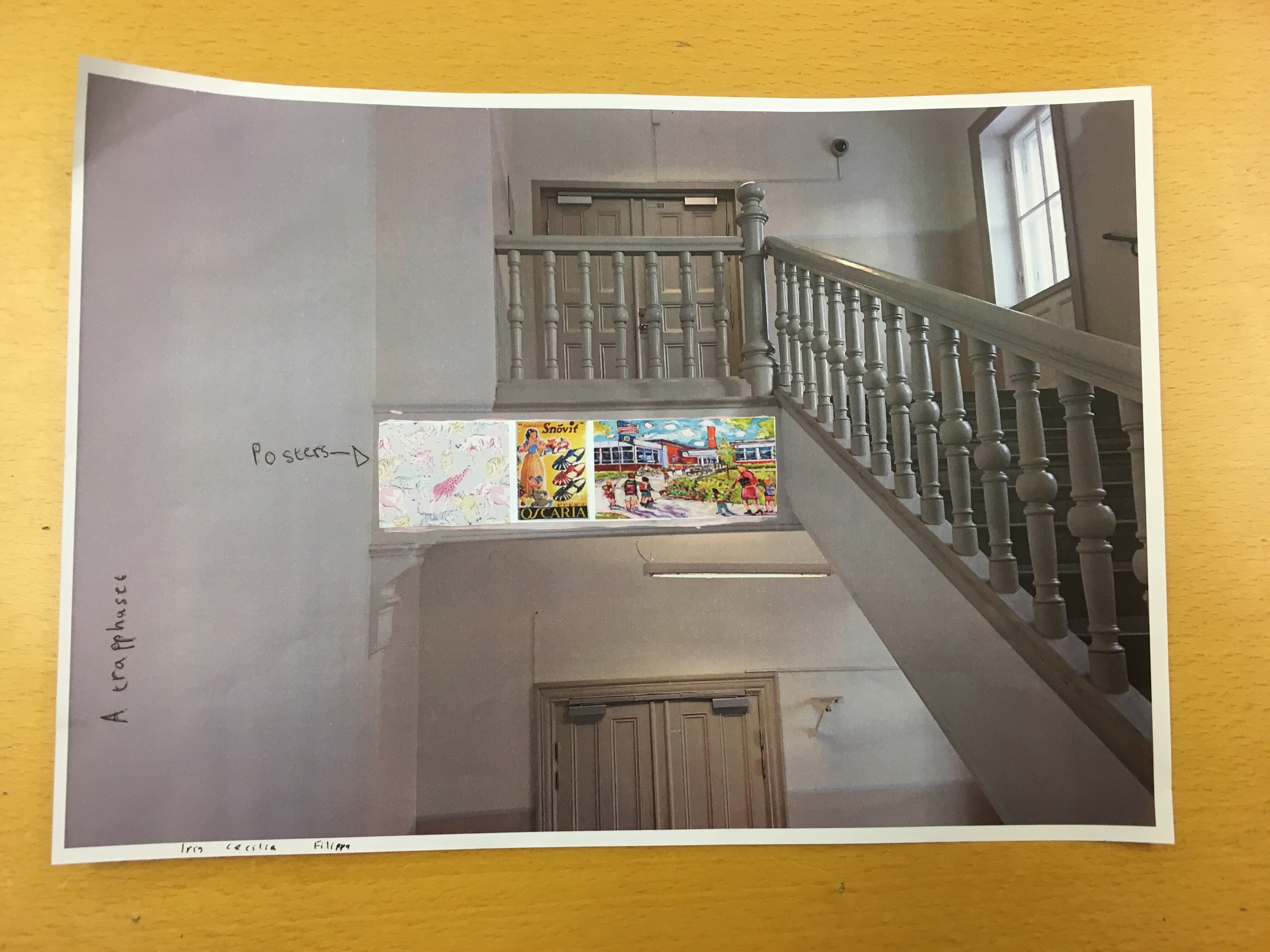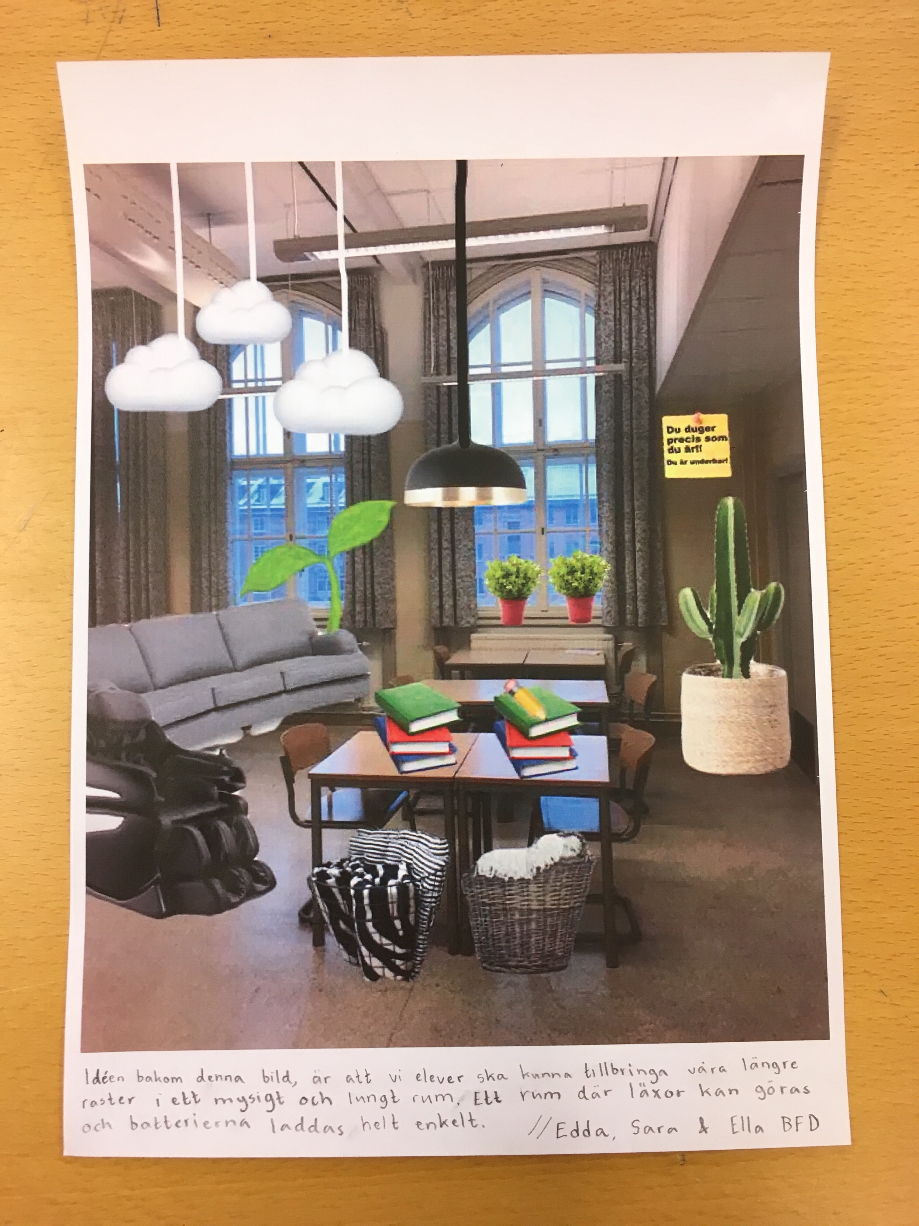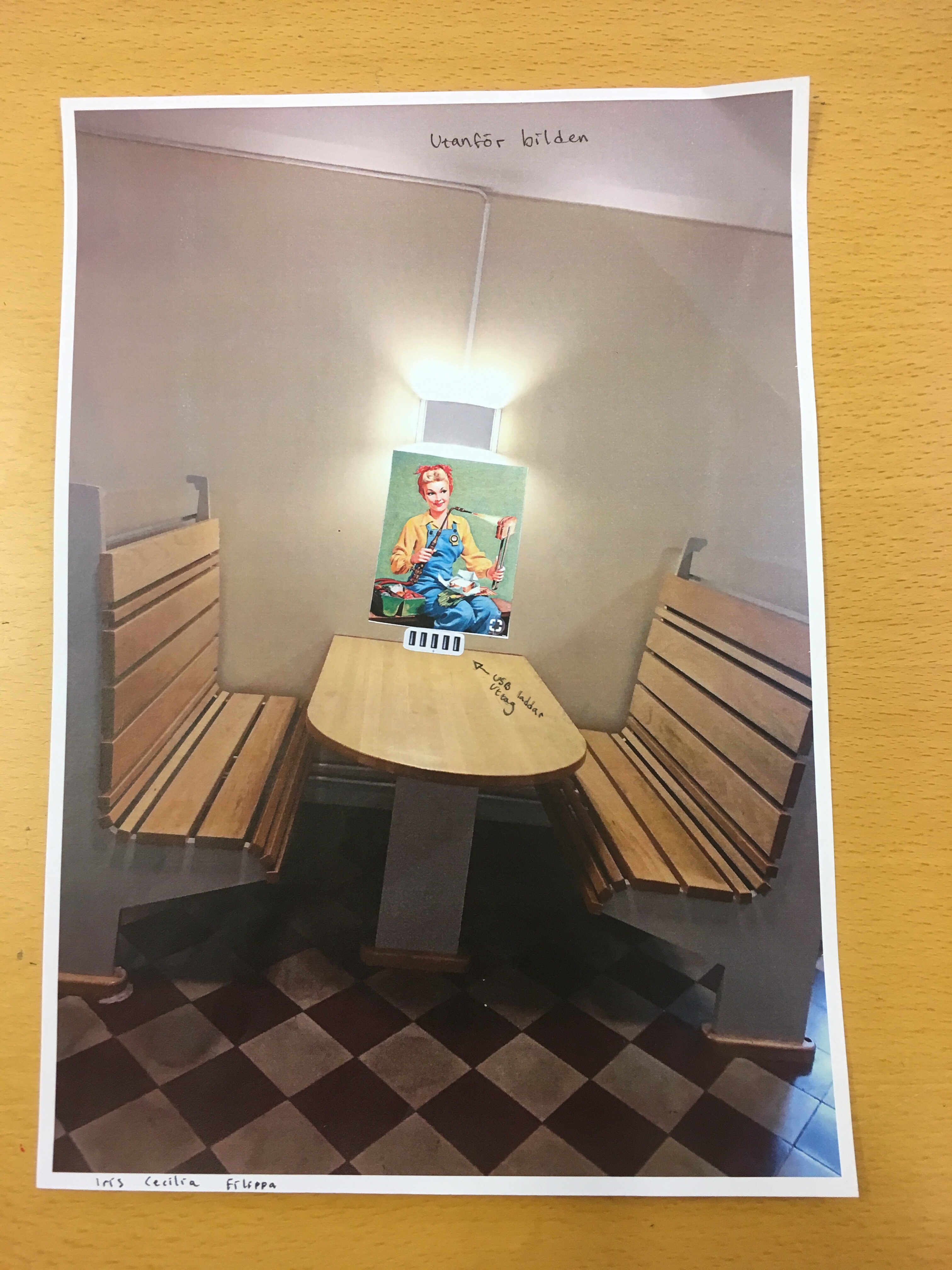 Design-åttorna har identifierat möjliga otrygga miljöer på skolan, fotat dem och sedan designat om dem digitalt/för hand, för att skapa trygga och välkomnande miljöer där man kan få vara den man är.