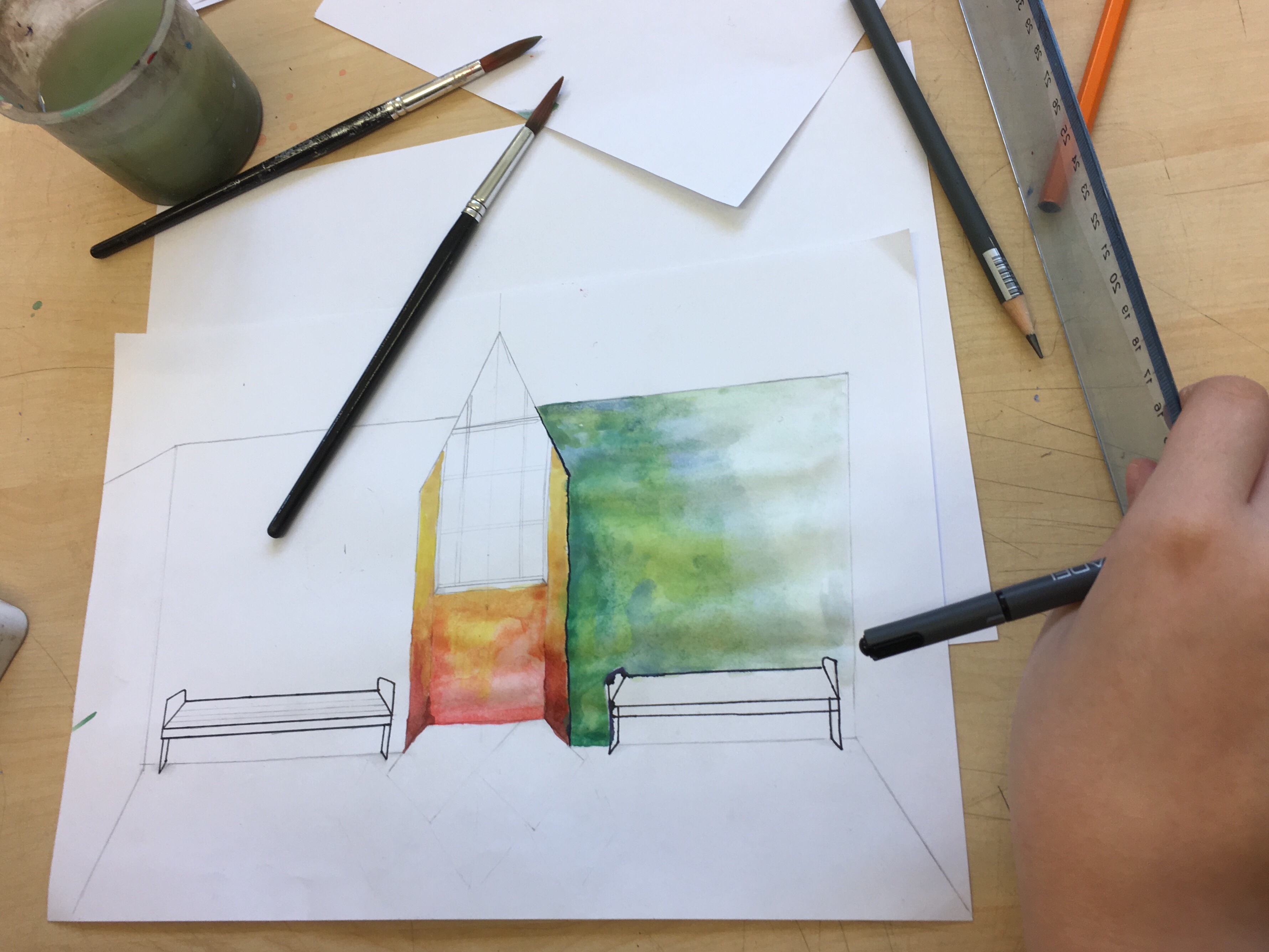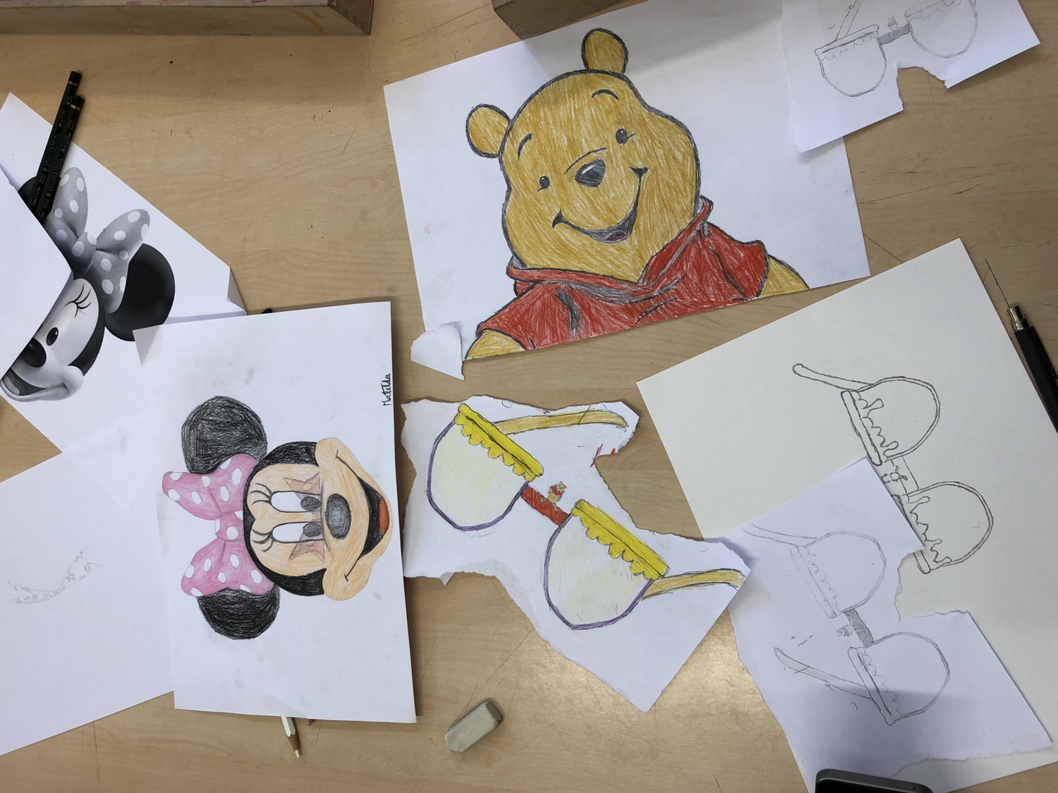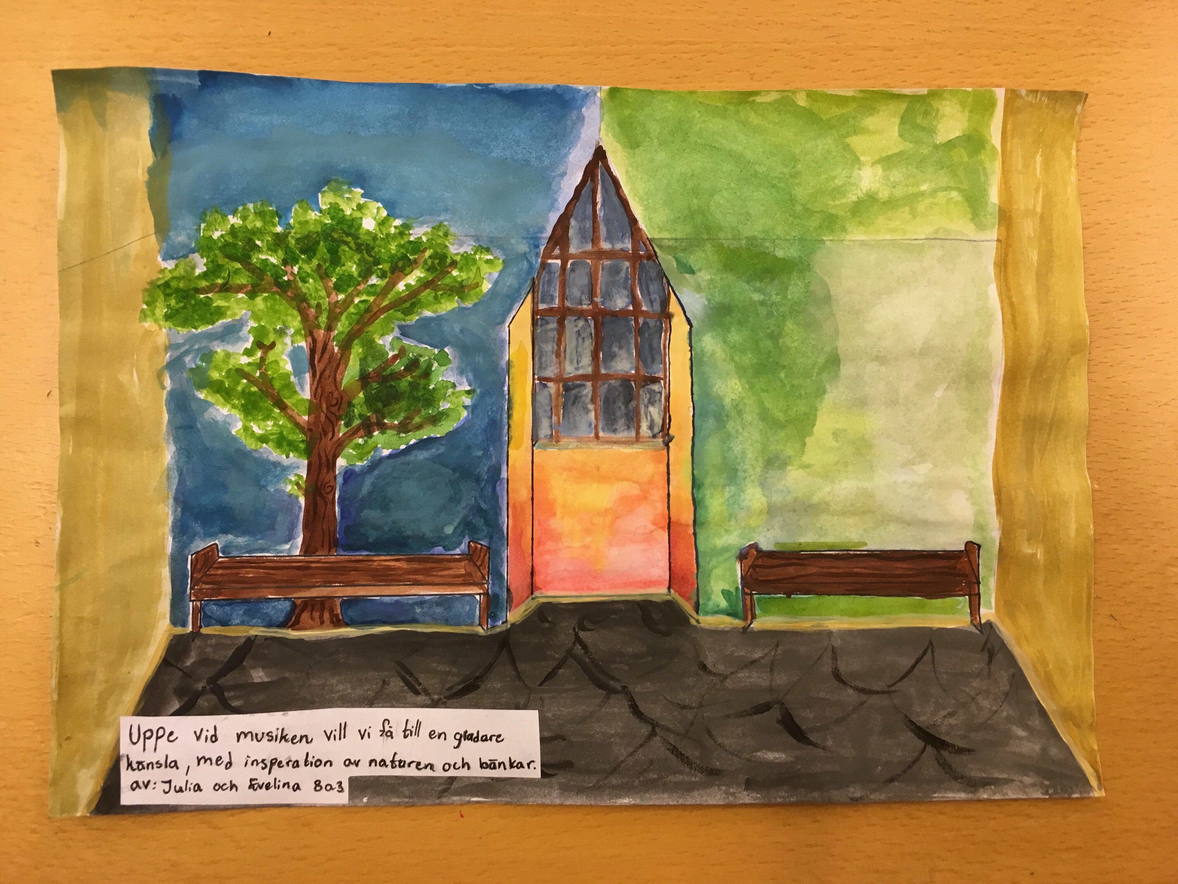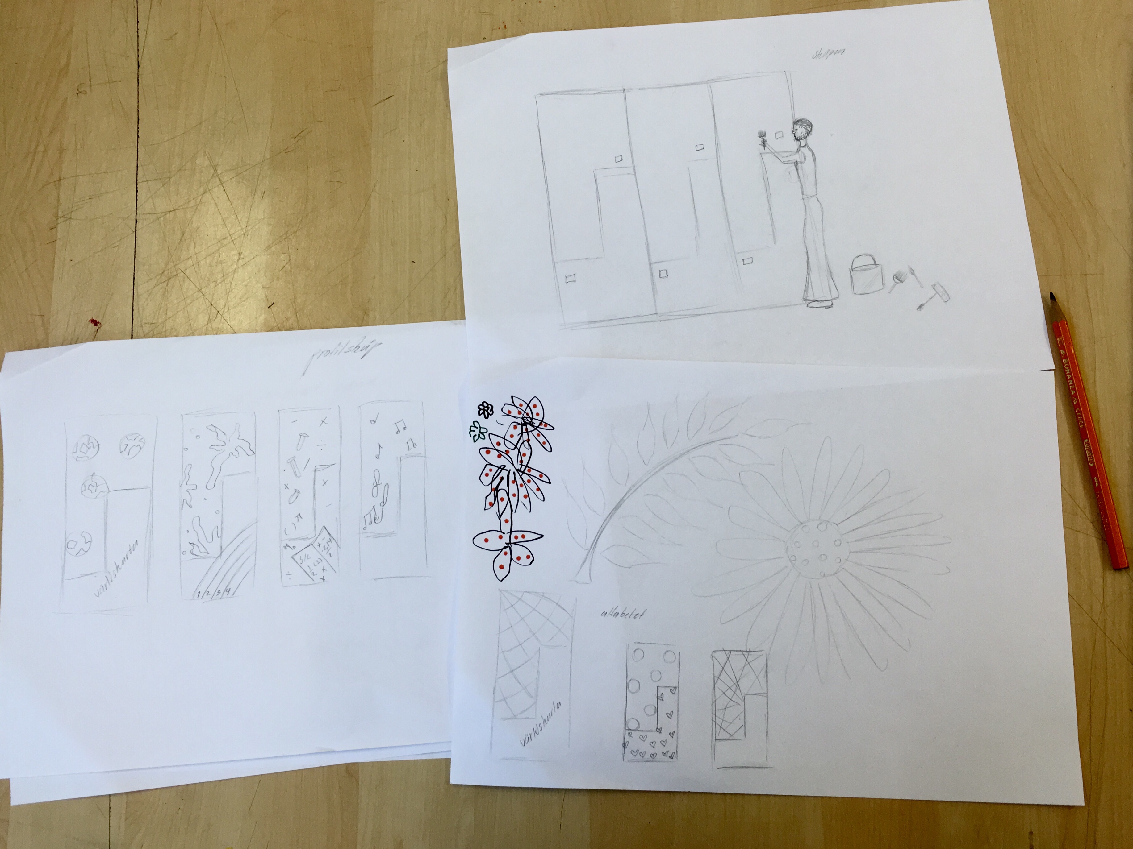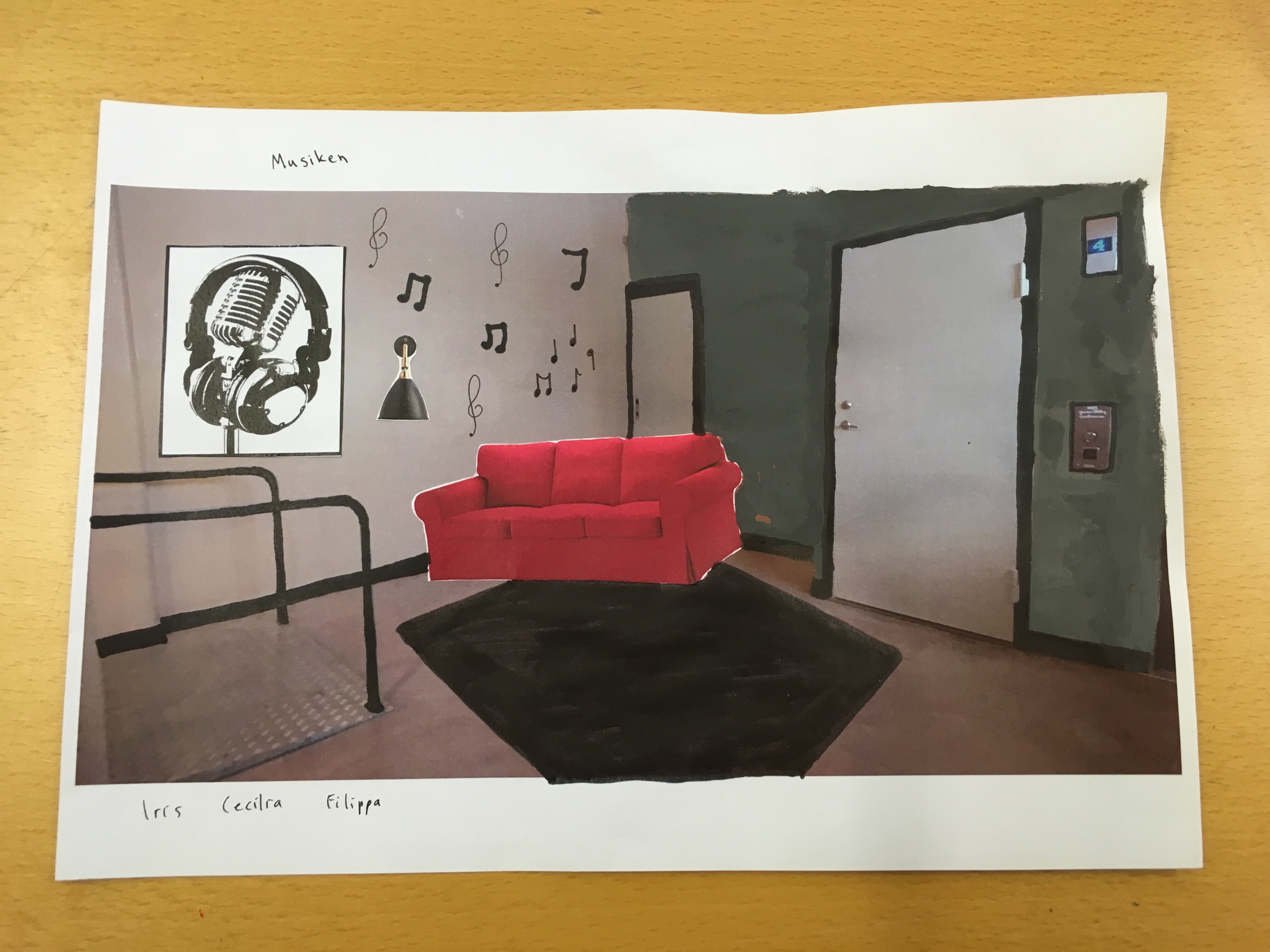 Design-åttorna har identifierat möjliga otrygga miljöer på skolan, fotat dem och sedan designat om dem digitalt/för hand, för att skapa trygga och välkomnande miljöer där man kan få vara den man är.