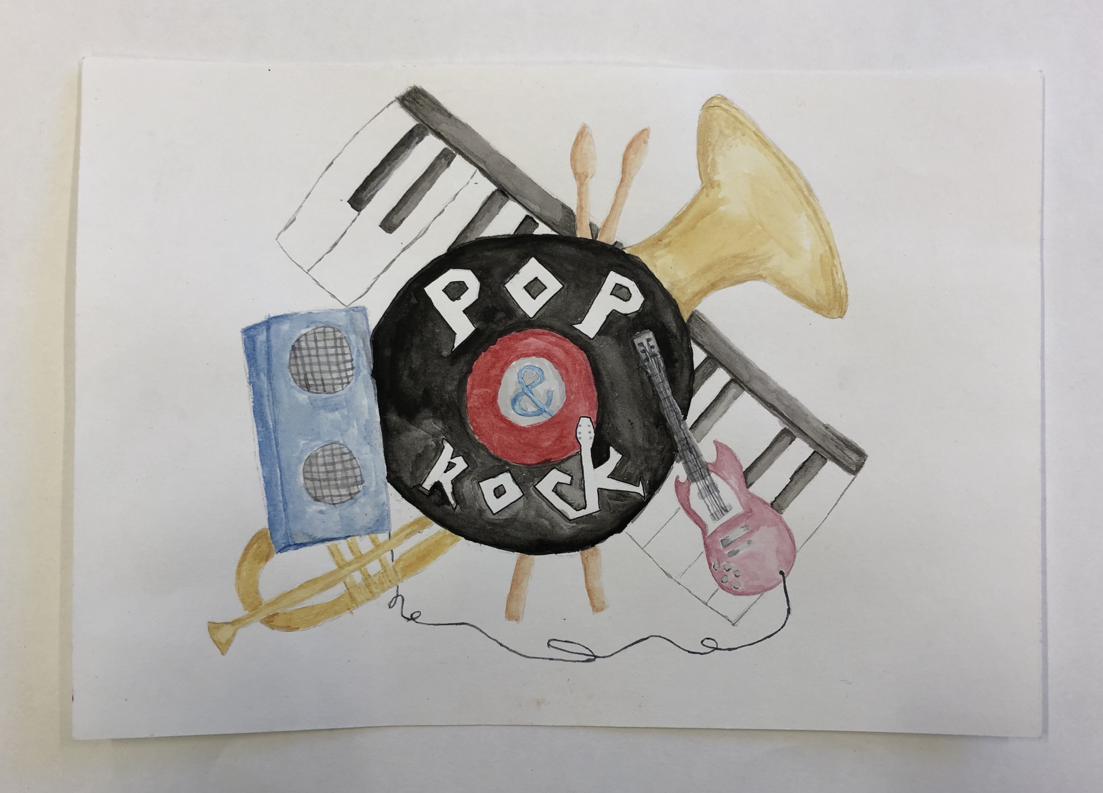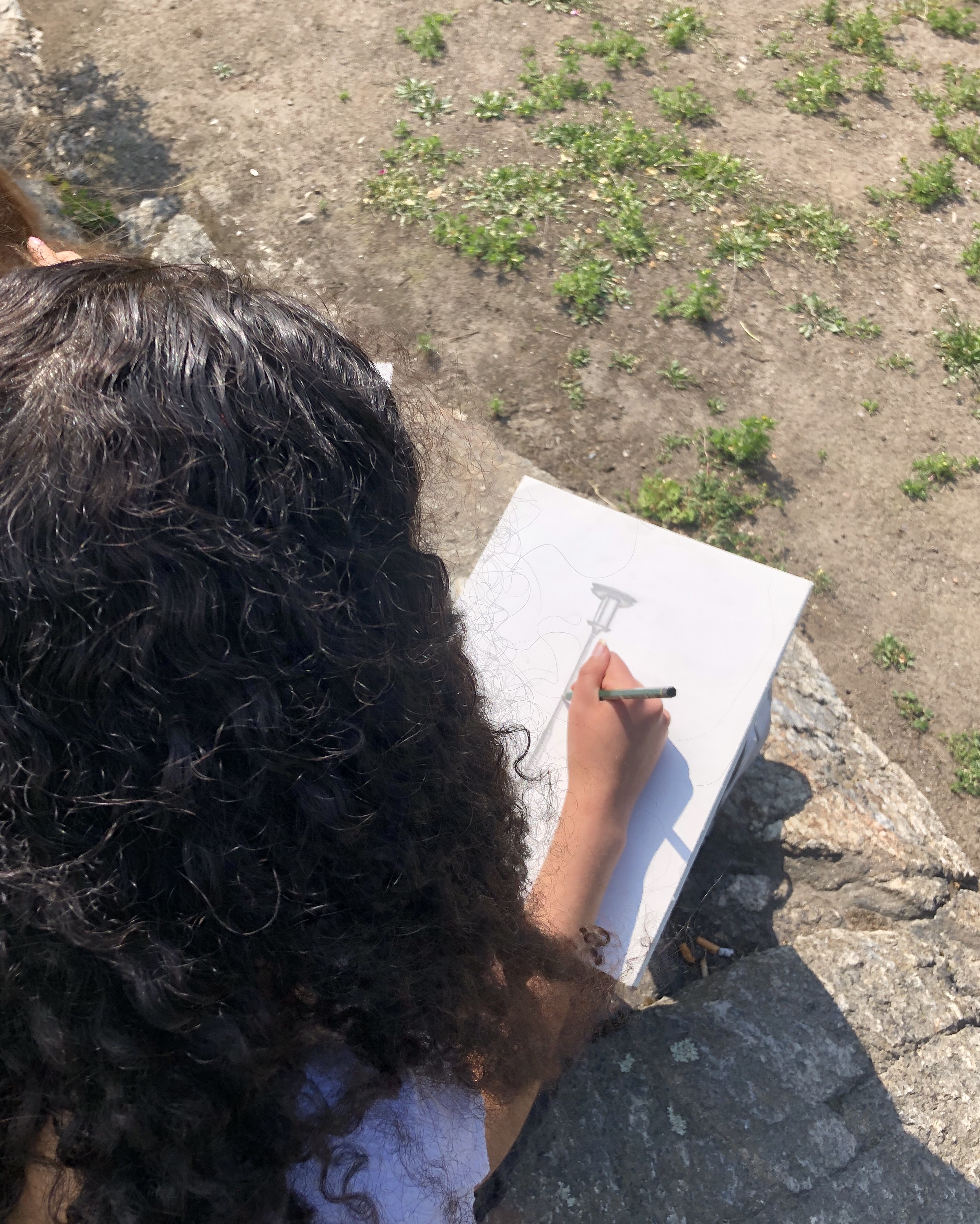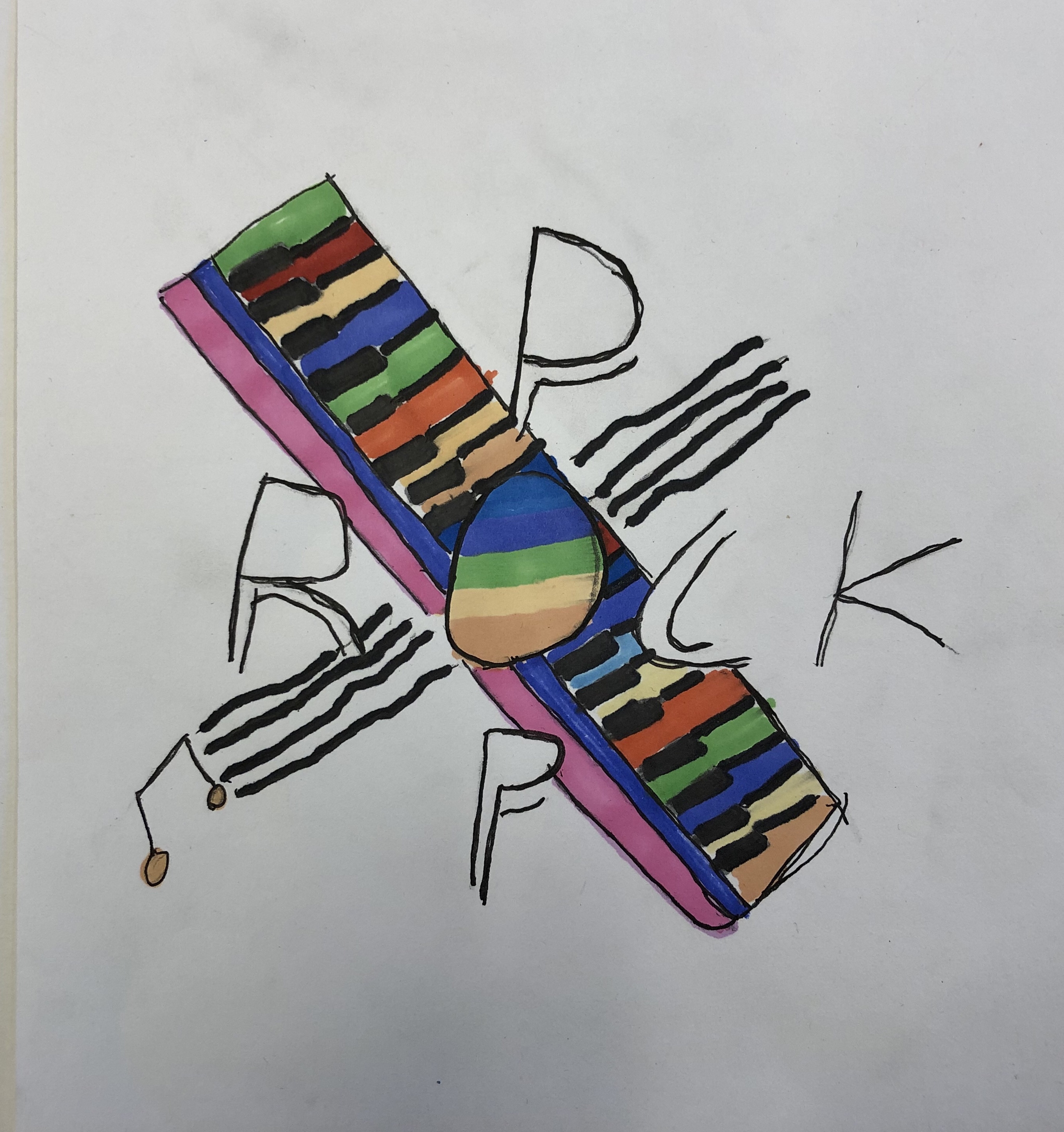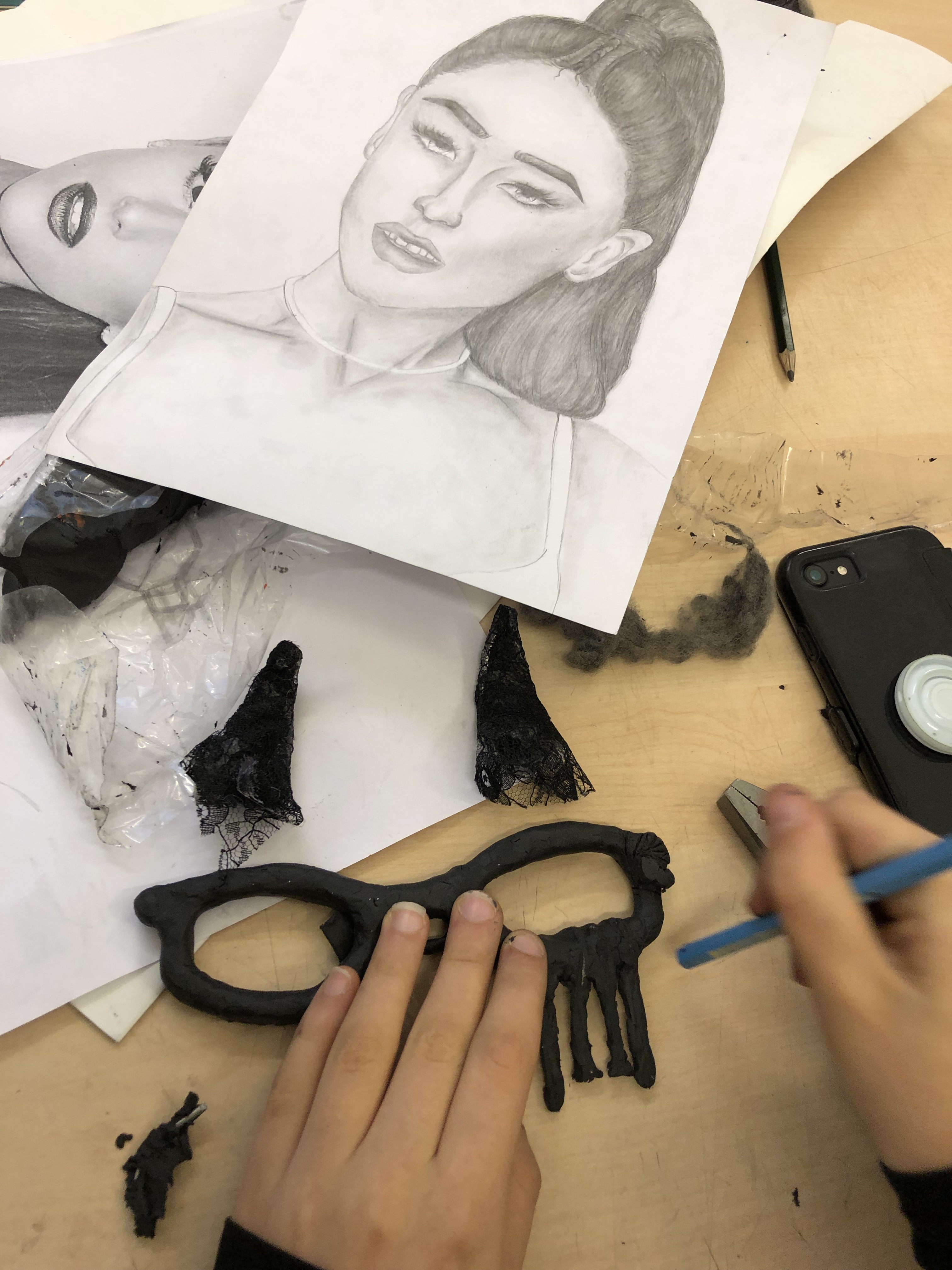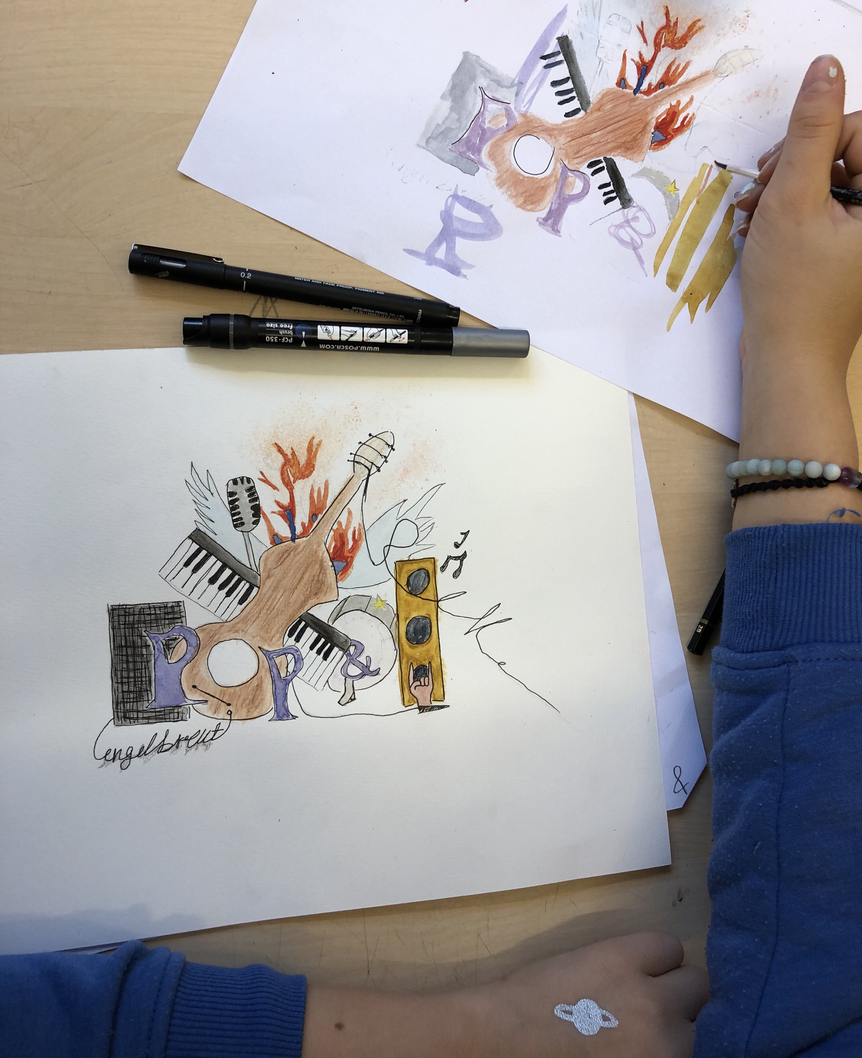 Här har en elev börjat skissa på sin surrealistiska bild. Tangenter som fingrar som spelar på ett piano uppbyggt av fingrar. Coolt!