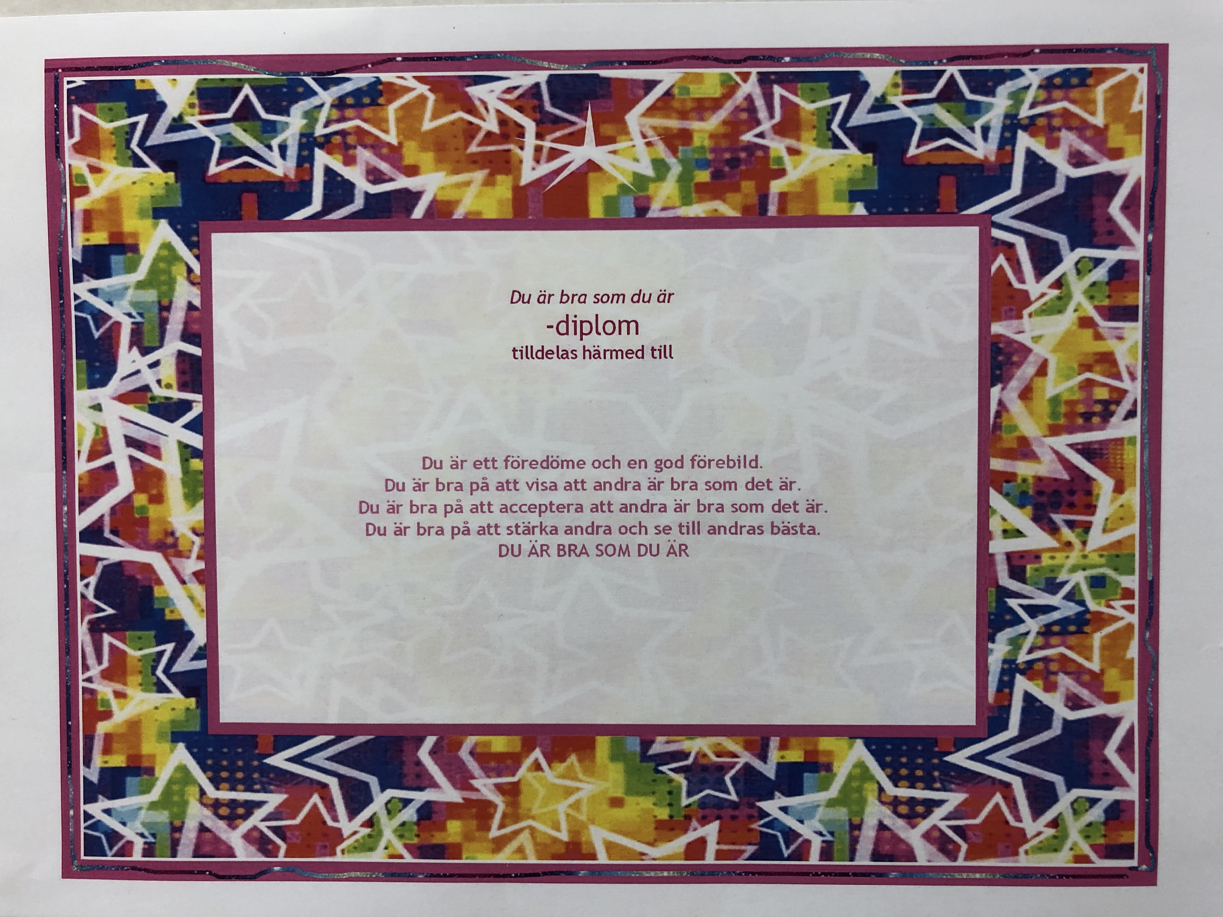 8BFD har jobbat utifrån temat Du är bra som du är! Detta värdegrundsprojekt drar igång v. 3-6 på skolan men vi har tjuvstartat. e