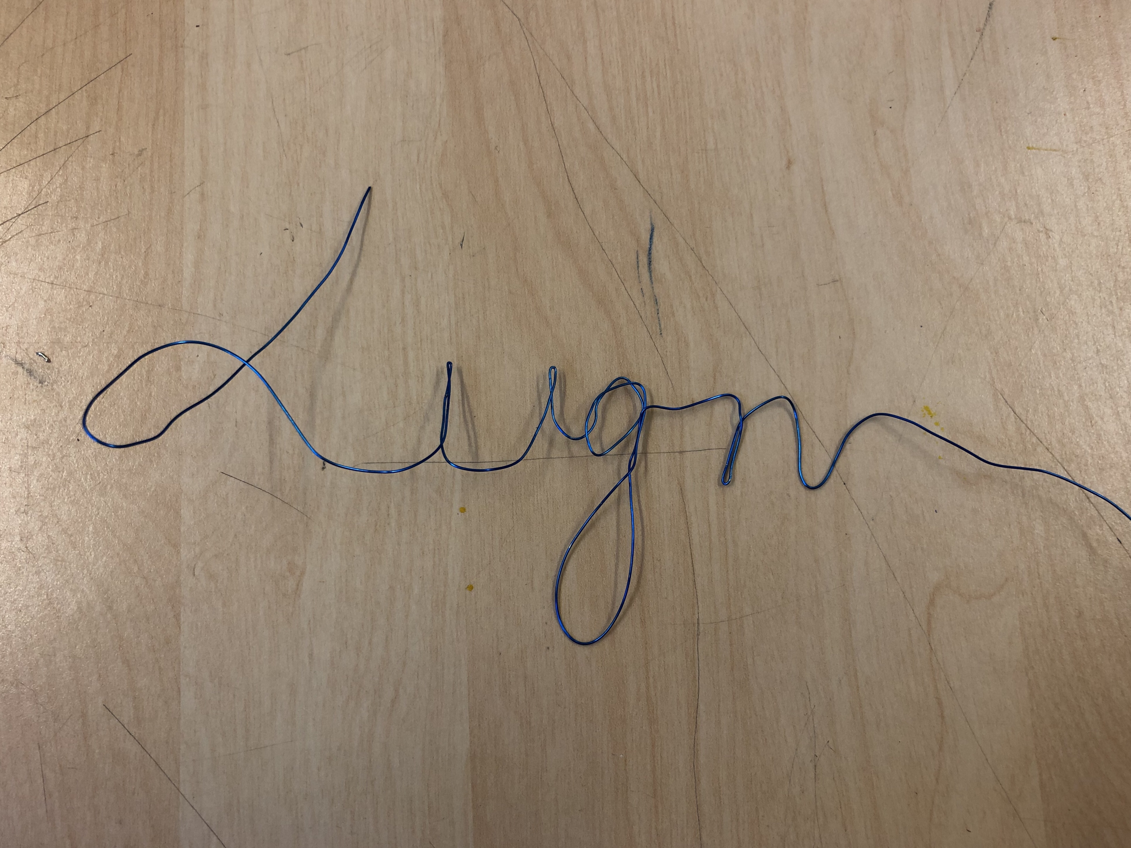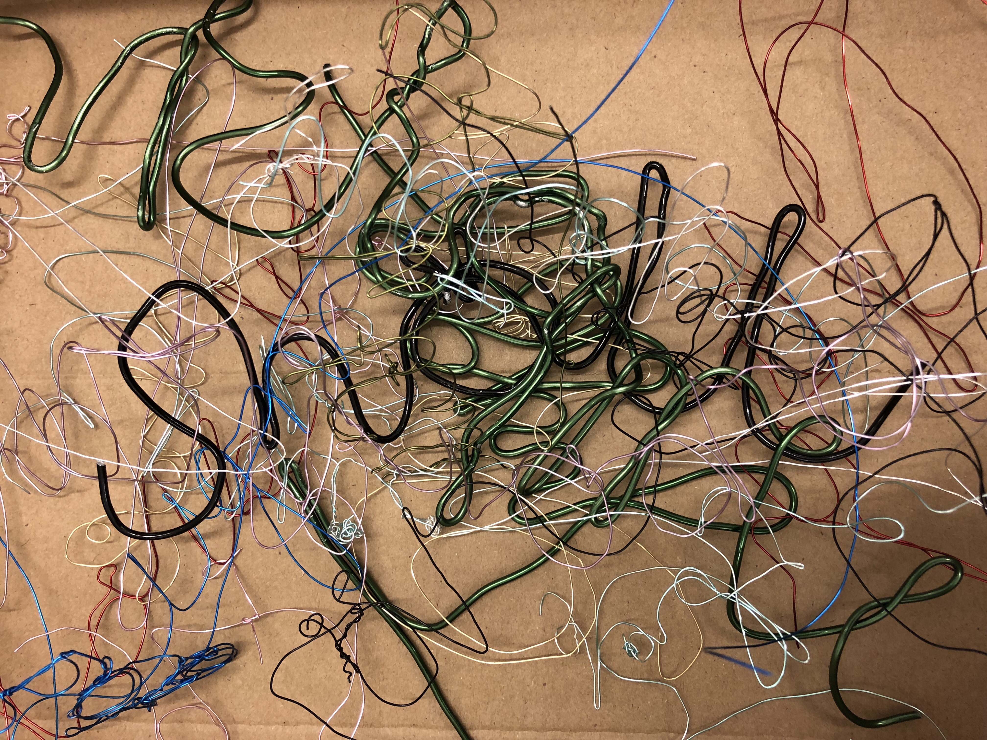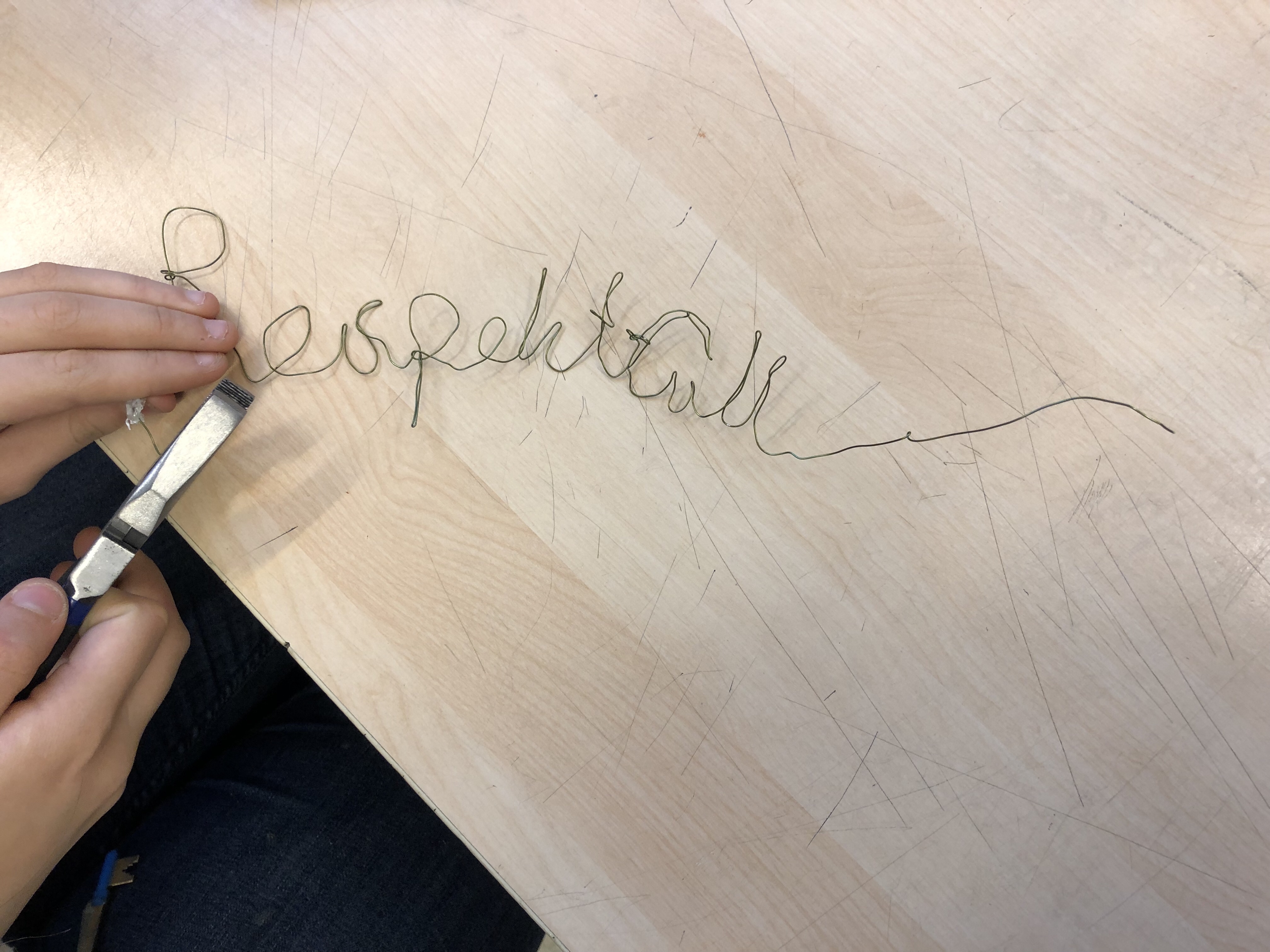 Här ligger alla ord på varandra! De ska sen sticka ut från ett huvud i ståltråd-som tankar om saker man måste påminna sig om att man är bra på.