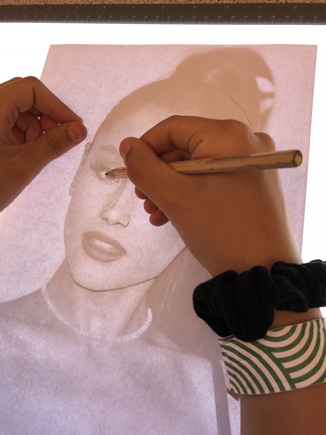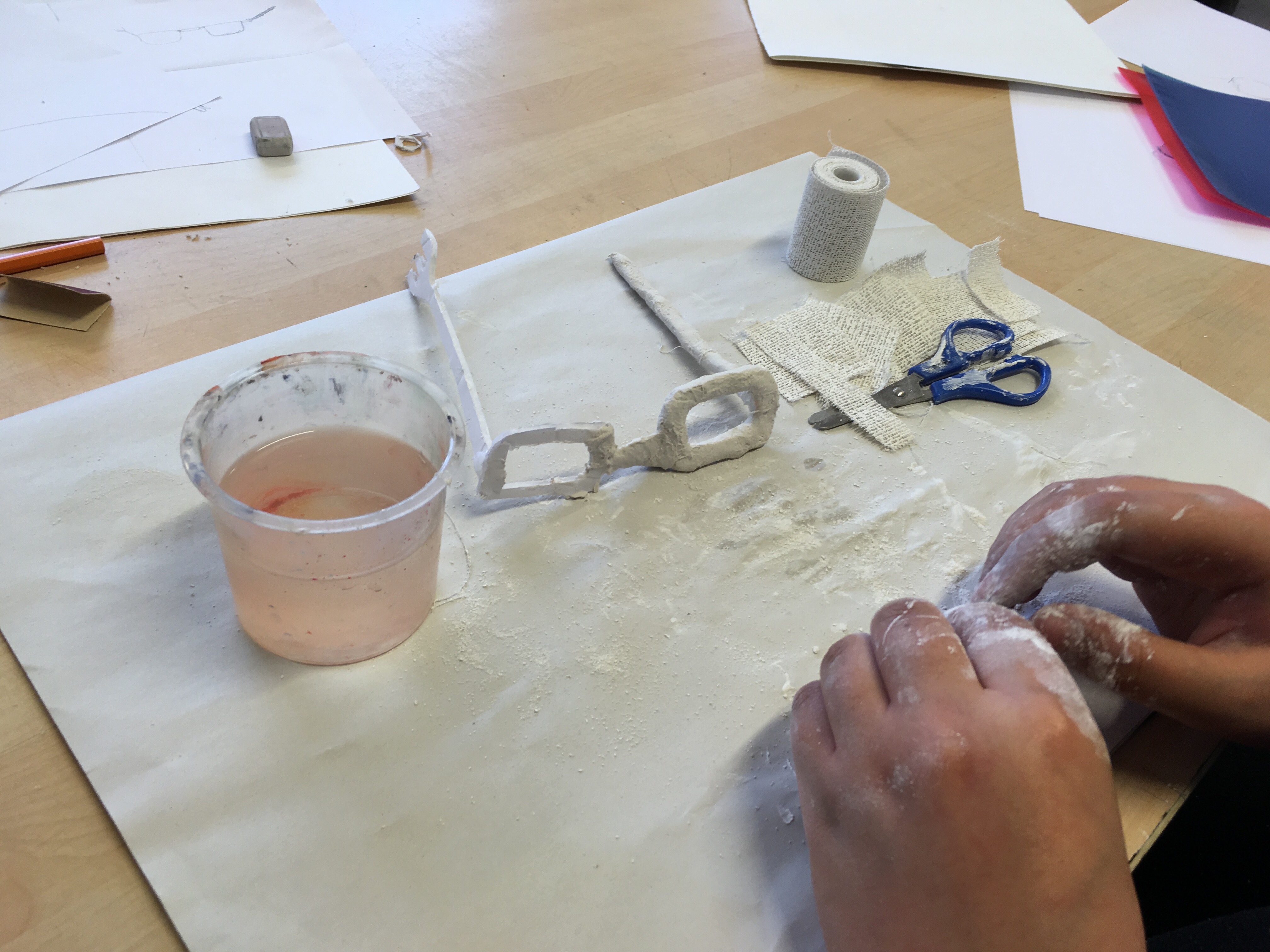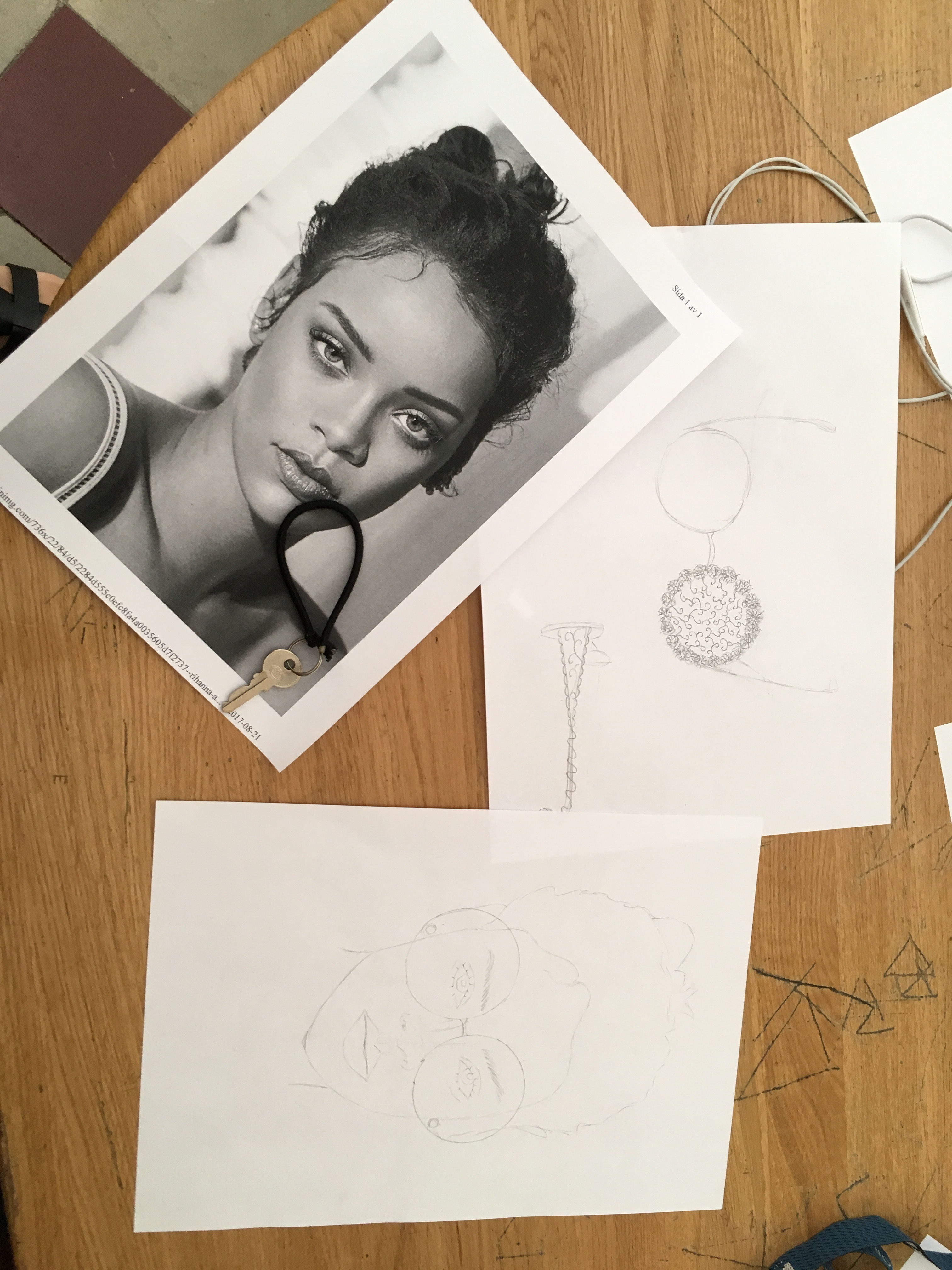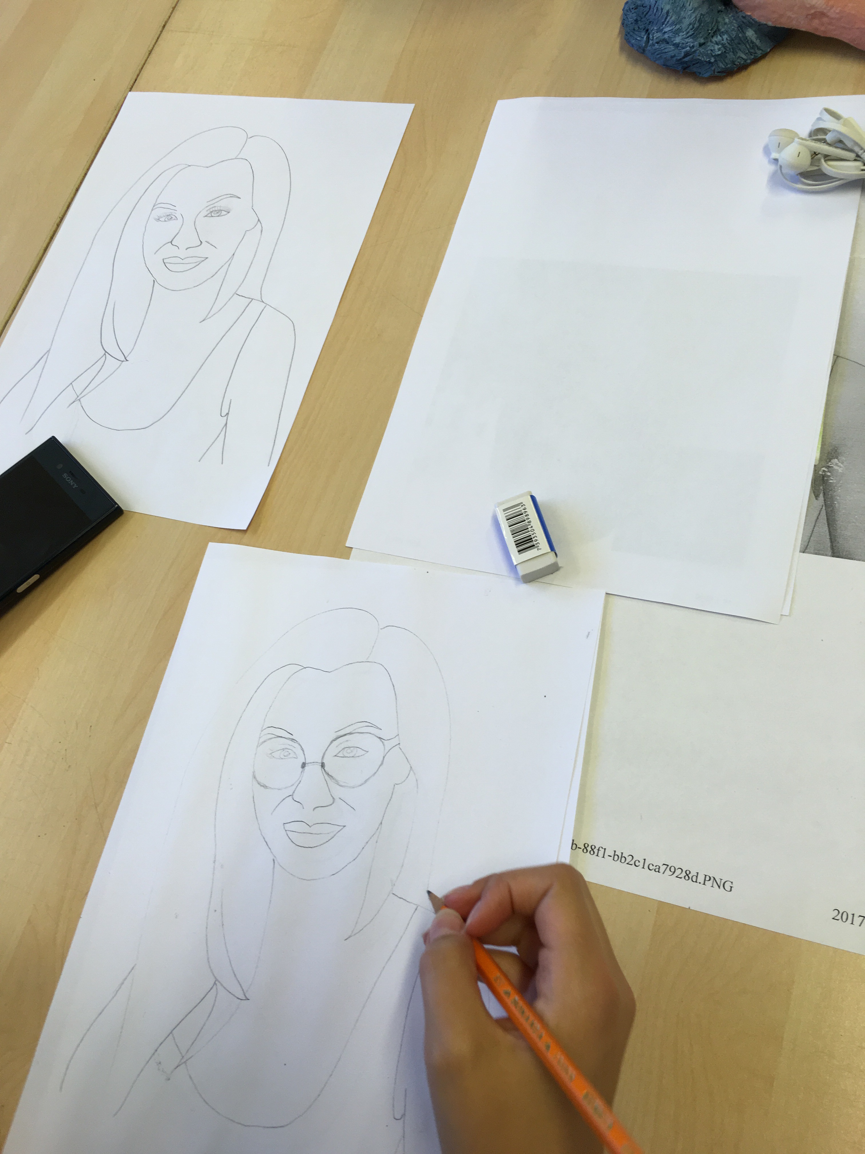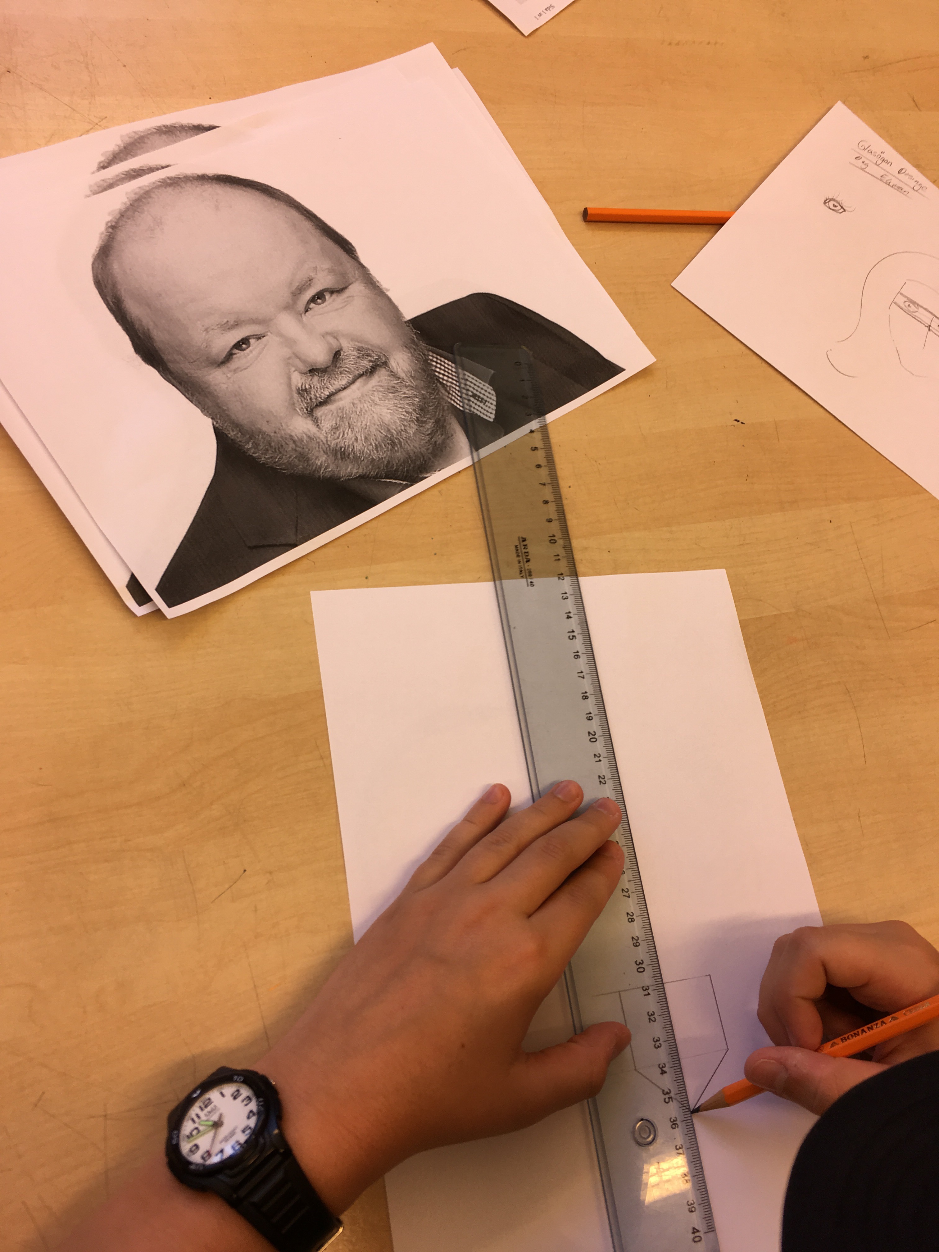 Här har en elev börjat skissa på sin surrealistiska bild. Tangenter som fingrar som spelar på ett piano uppbyggt av fingrar. Coolt!