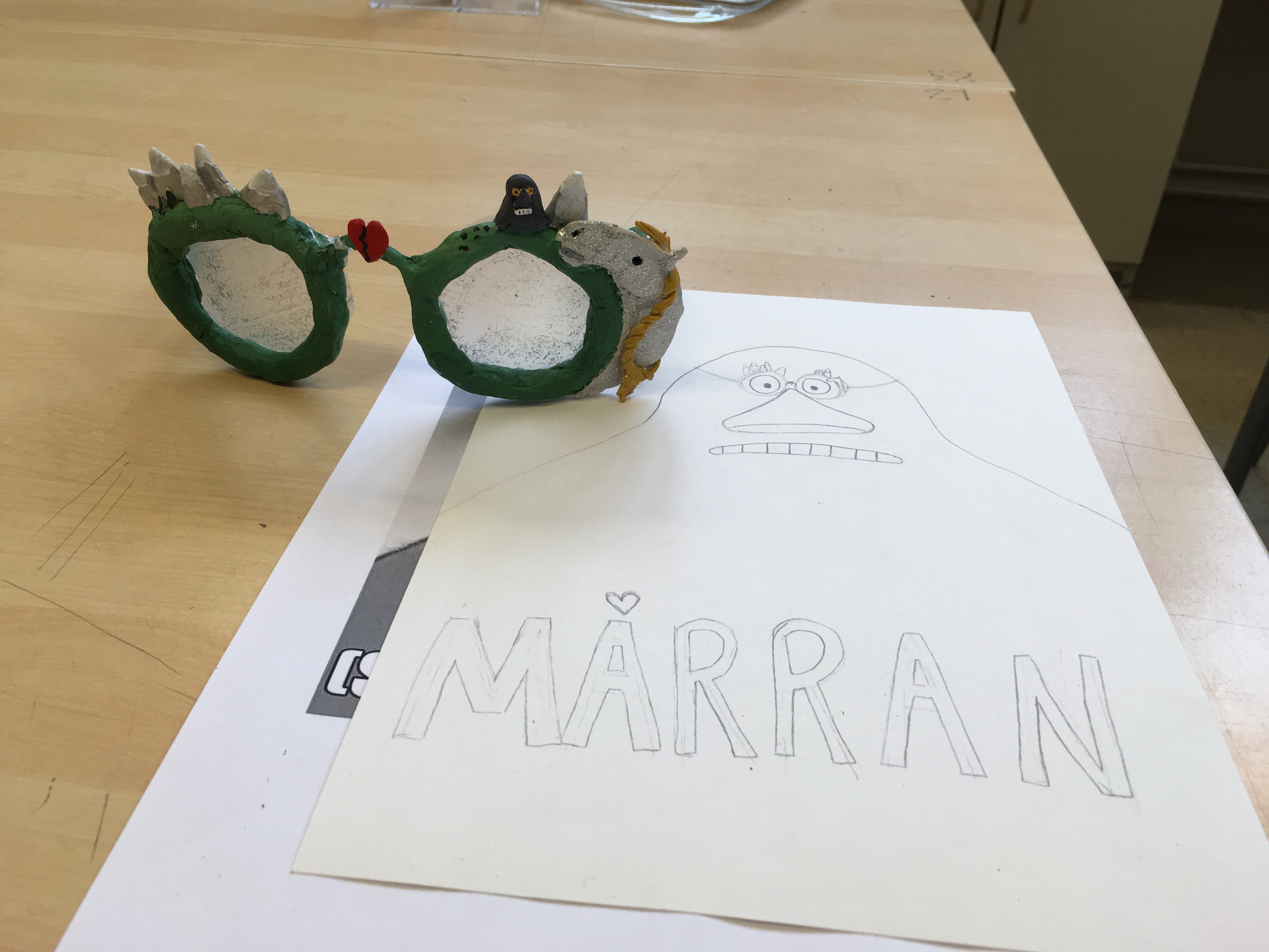 Här ser ni delar av skissfasen där tex Markoolio ska få ”sola och bada och pinacola”- glasögon!