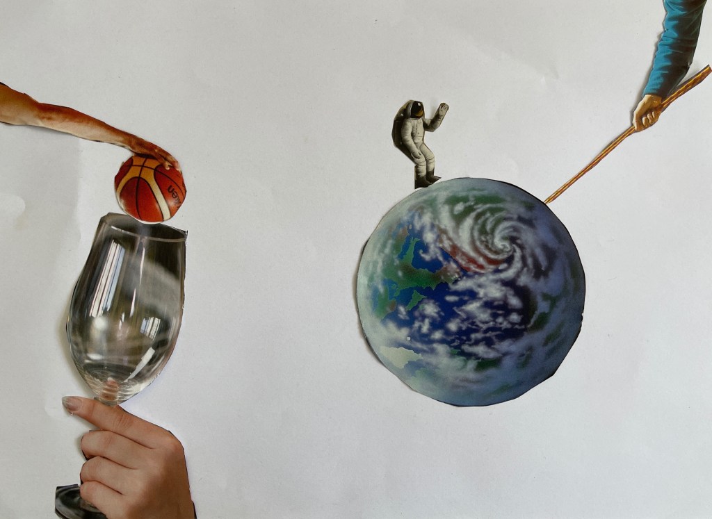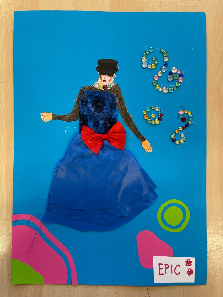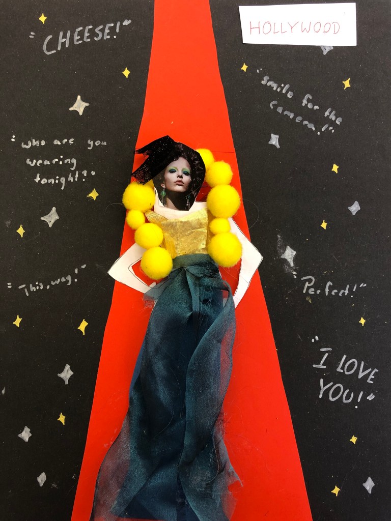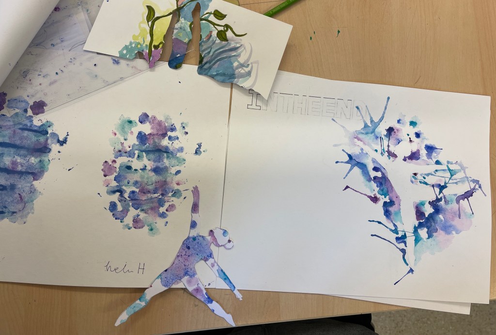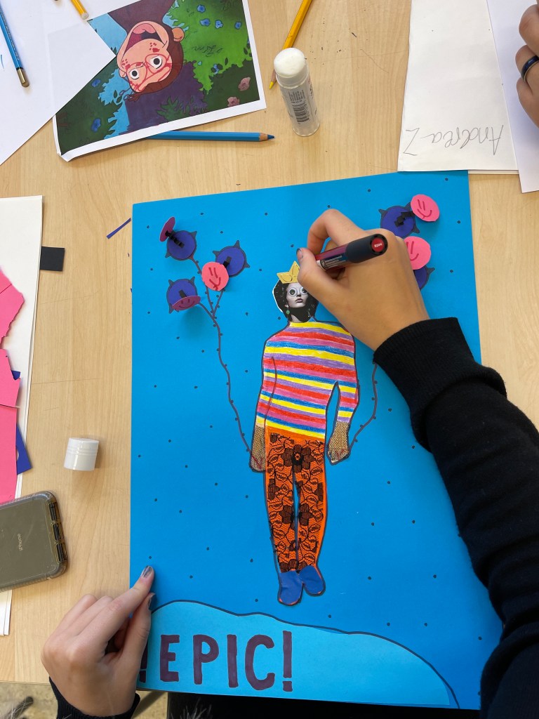 Vi håller på att avsluta siluette-uppgiften och övergår till collage. Vi har tittat på elevexempel där olika former, färger och storlekar på små pappersbitar kan skapa en rörelse (även fast allt är fastlimmat =) )