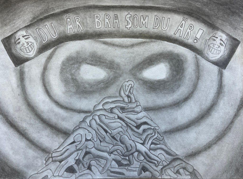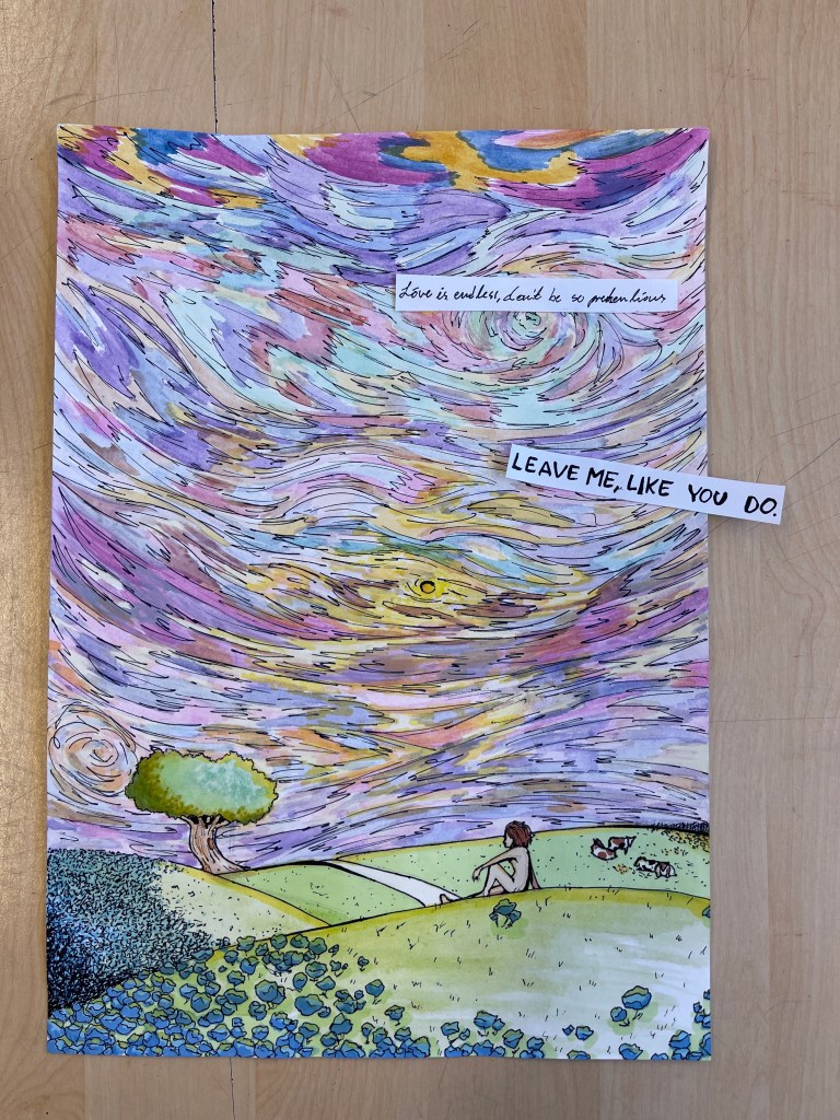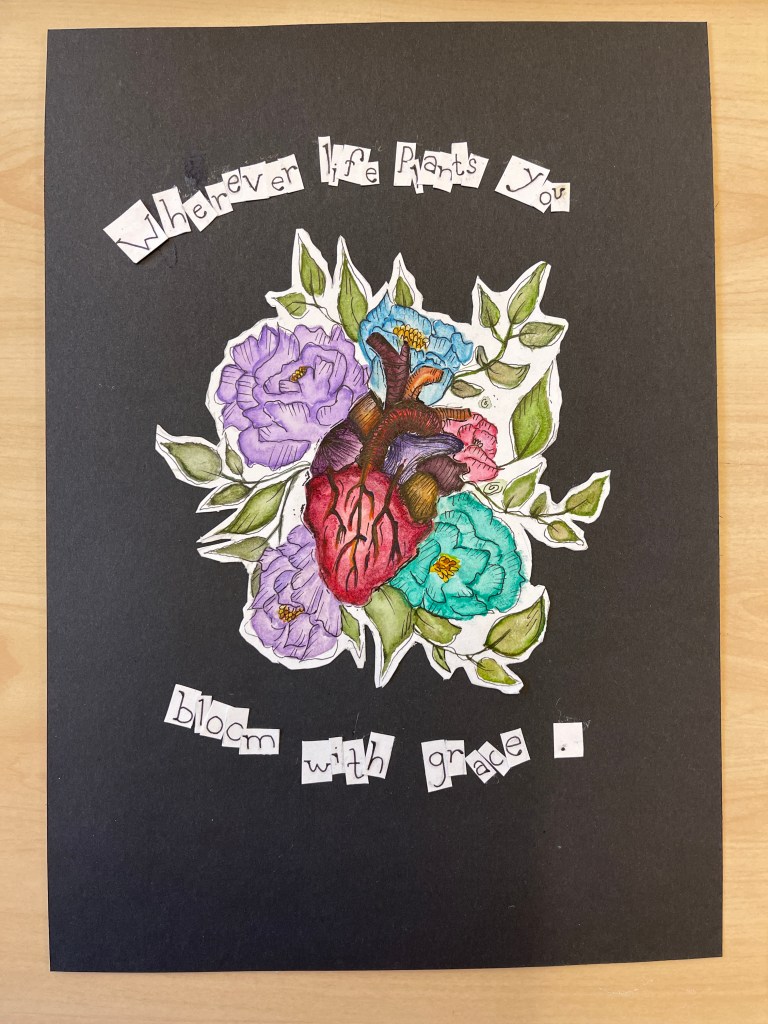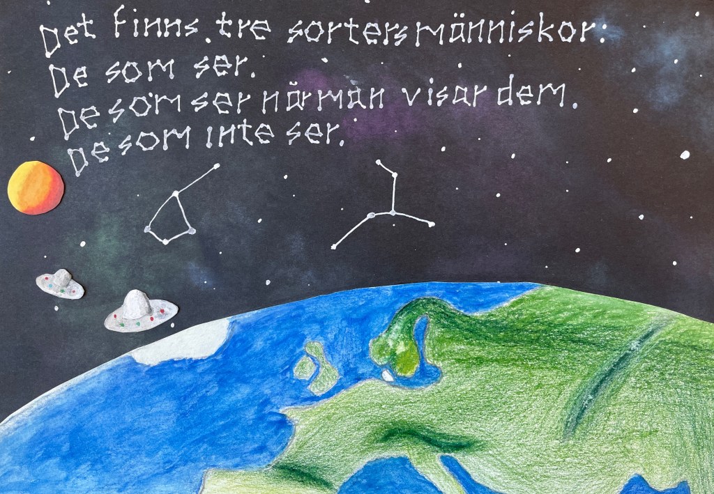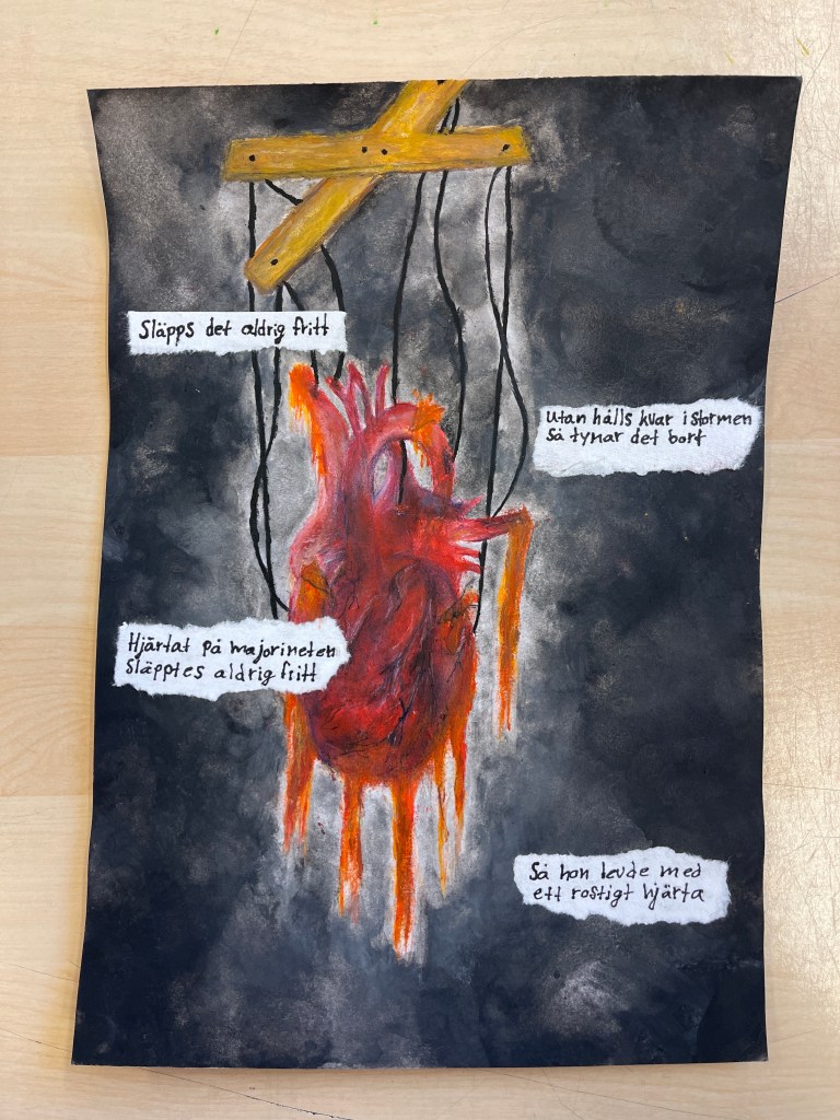 Vi kombinerar bild och text i ett statement! Valfri teknik.