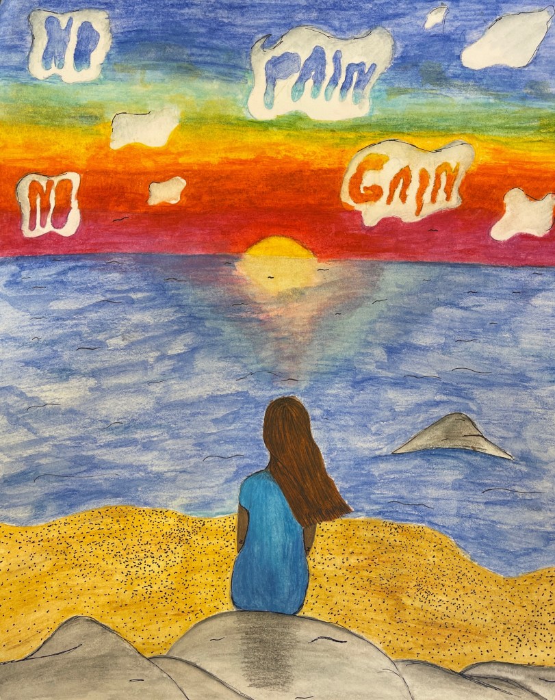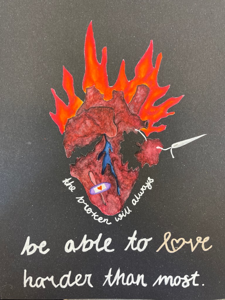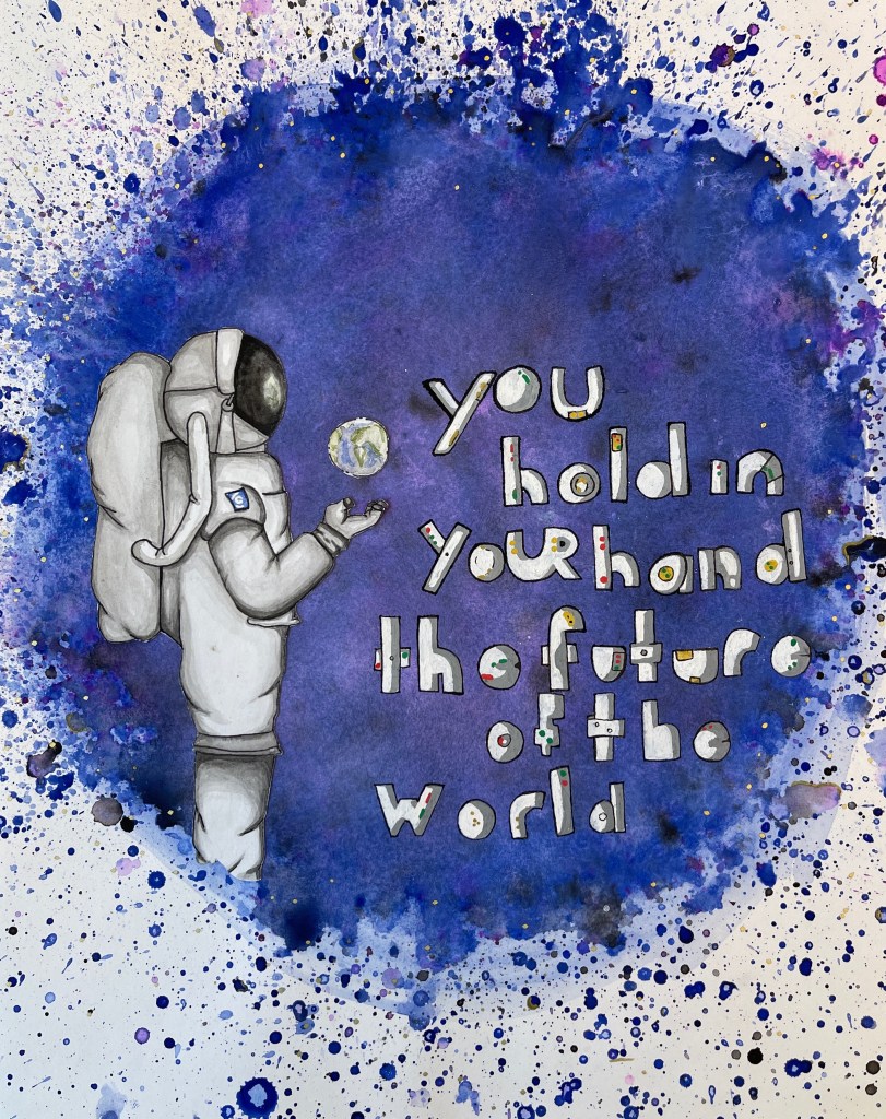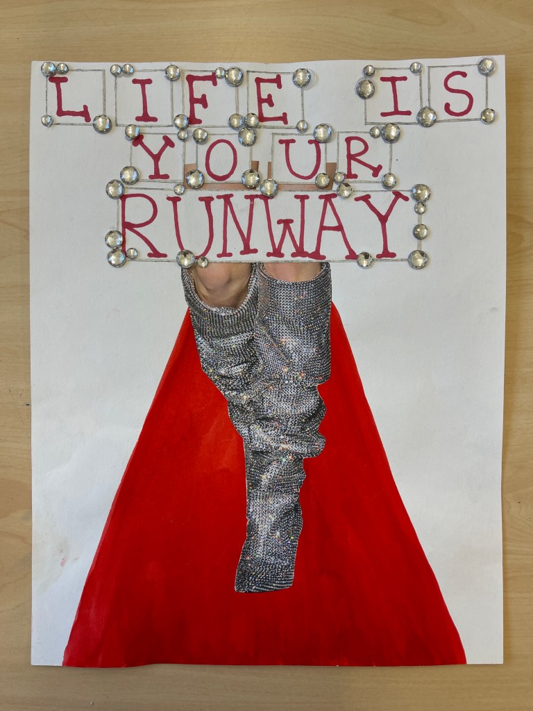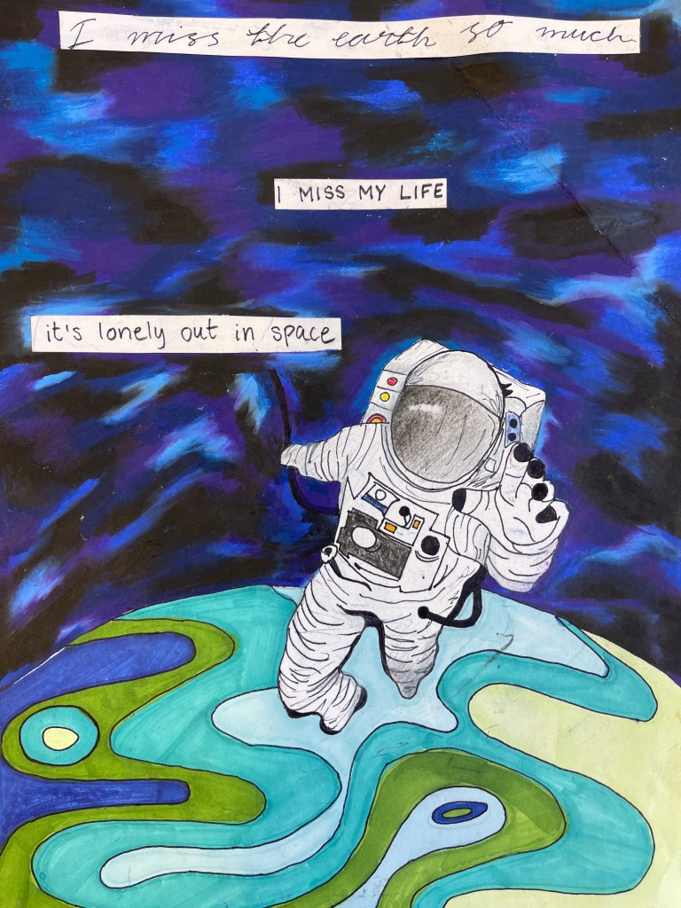 Vi kombinerar bild och text i ett statement! Valfri teknik.