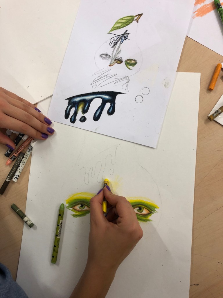 Vi jobbar med surrealism och ska förmedla det budskapet mha vaxkritor! Bilderna ska sakna logik och förnuft, dvs vara overkliga.