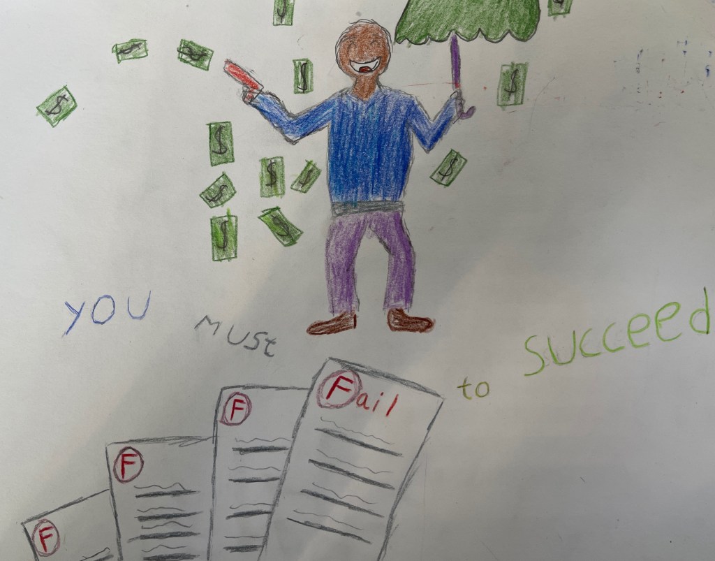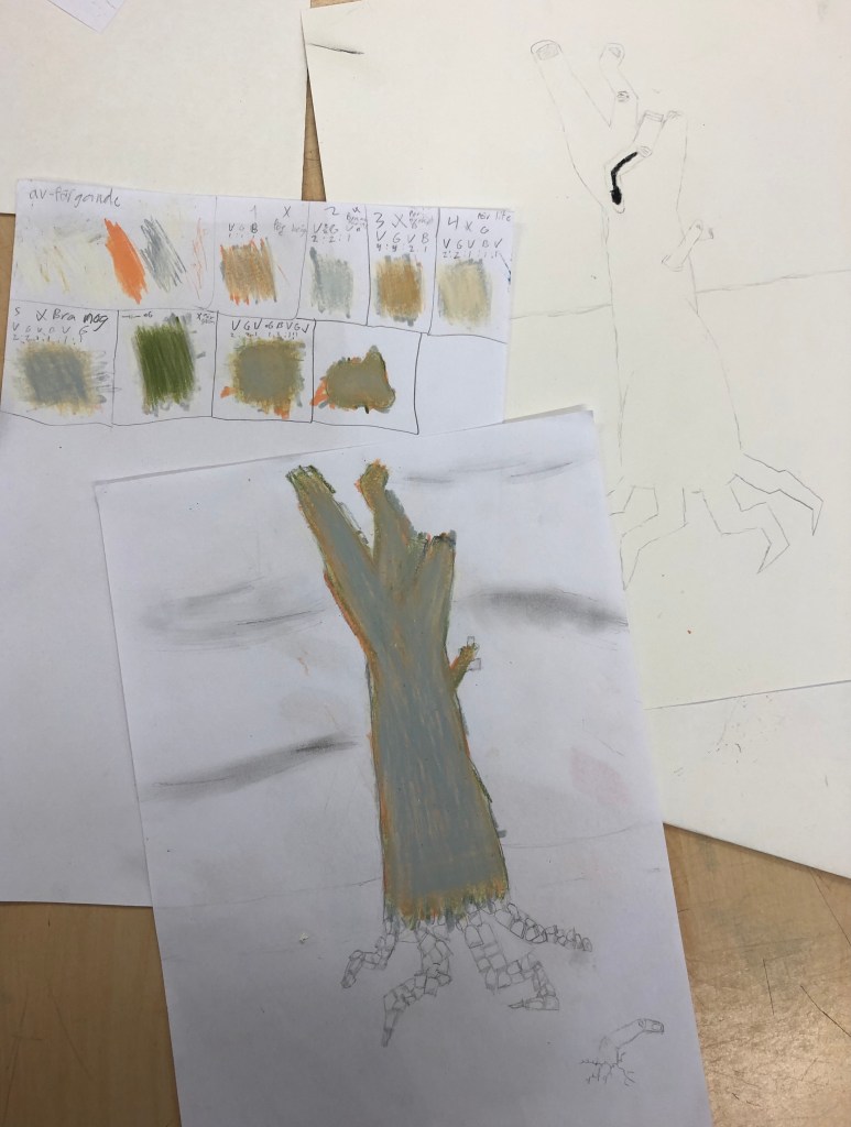 Nu är alla igång med uppgiften att visualisera ett ord dvs ”skriva” tex träd där bokstäverna formas av träd.