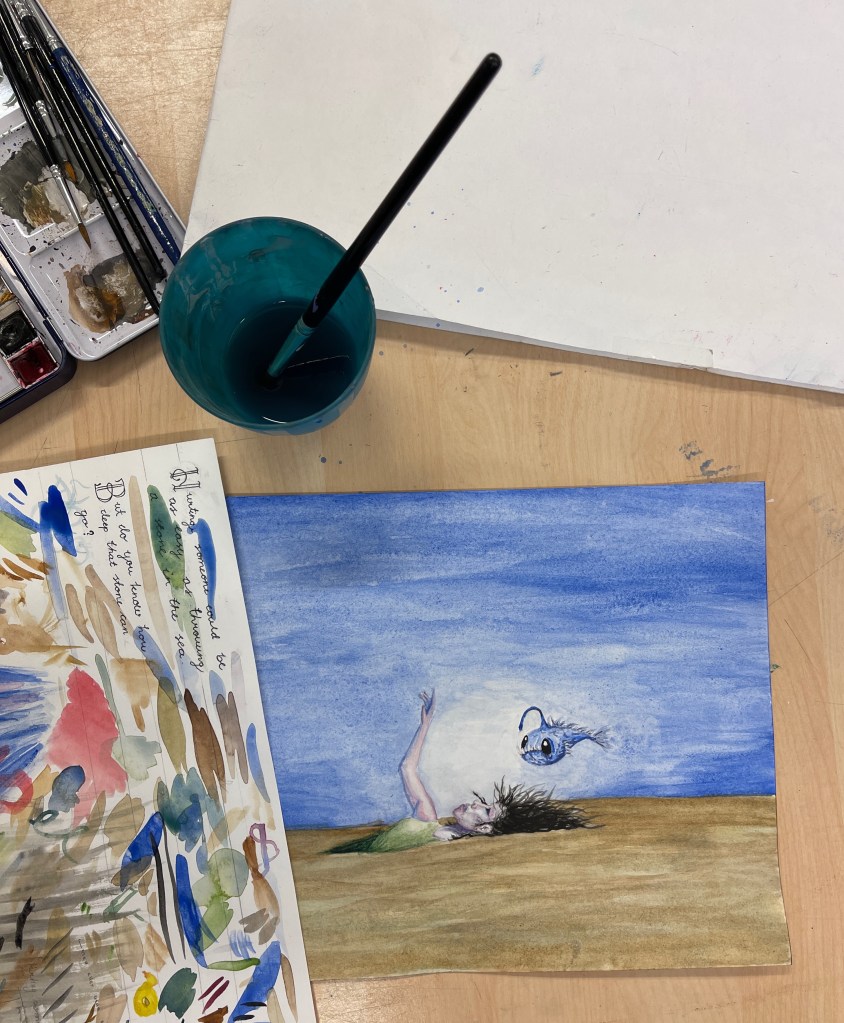 Idag målade vi alla med tekniken vått i vått. Varm eller kall bakgrund.