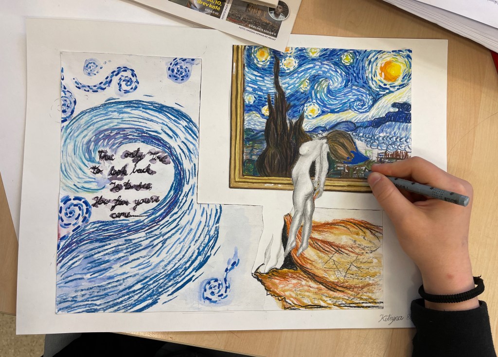 Första steget är att göra en Pokémon i oljepastell (A3-format) med bakgrund. Nästa moment är att digitalt klippa bort bakgrunden (eraser, snap, procreate, pixlr, mfl) och sen infoga pokemonen i ett foto du tagit. Där får din Pokémon, som ska dela egenskaper/attribut med dig, dyka upp i en miljö tex på skolan.