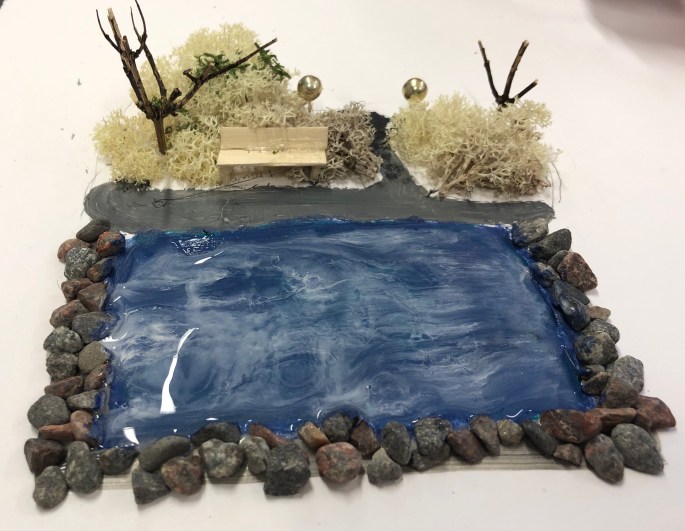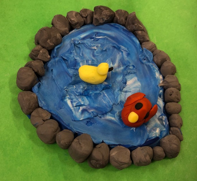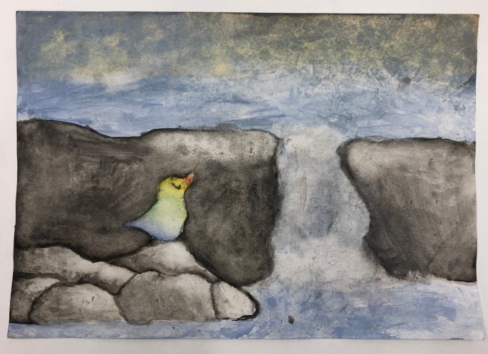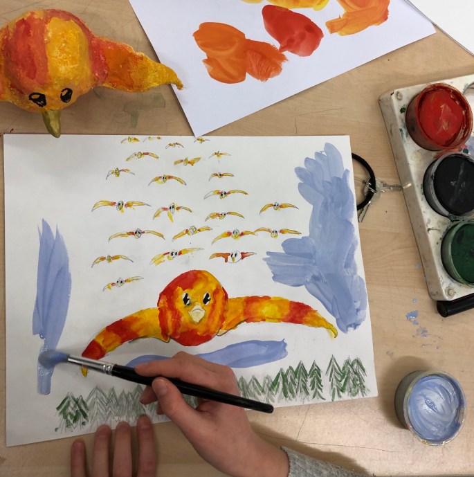 Sen fick de måla en miljö där fågeln bor!