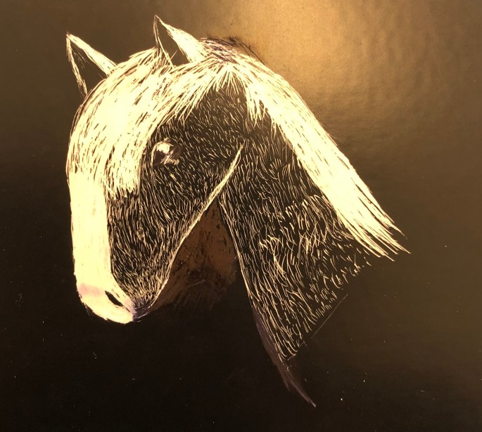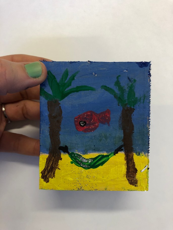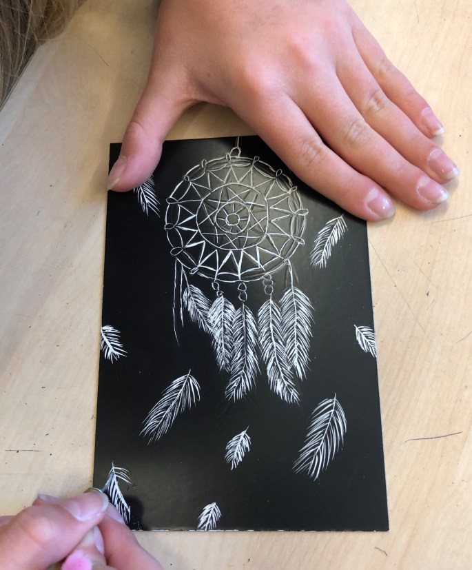 Krympplast är roligt! Vi lägger plasten på en utskrift och kalkerar av, färglägger och gör ett hål om det ska bli ett hänge av något slag. Sen ska de in i ugnen i ca 1 min och krympa till en tredjedel.