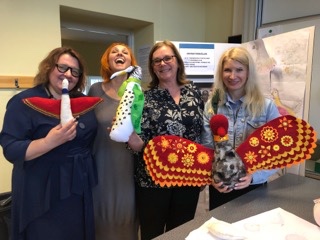 Mitt i allt innan sommarlovet fick vi bild- och slöjdlärare besök av konstintresserade från Vitryssland. Halina, dekan inom lärarutbildningen och Tatiana som undervisar i design på utbildningen, samt Irina som är en f.d masterstudent på Konstfack och kontaktperson (och tolk) i samverkansarbetet.