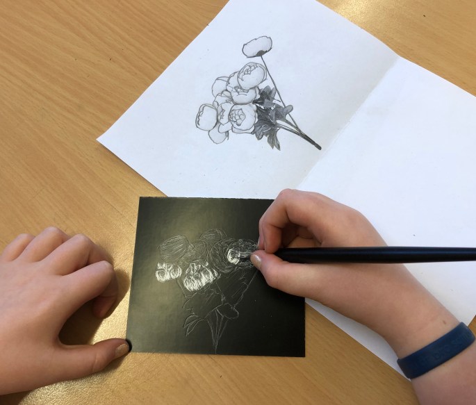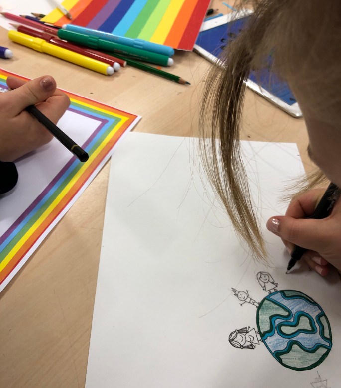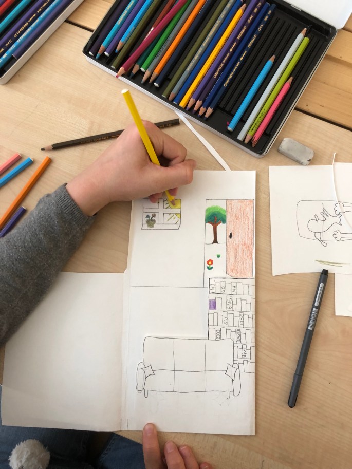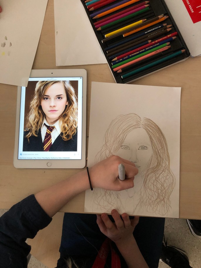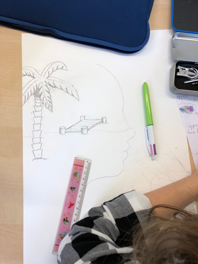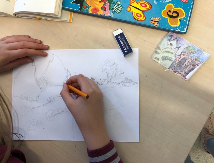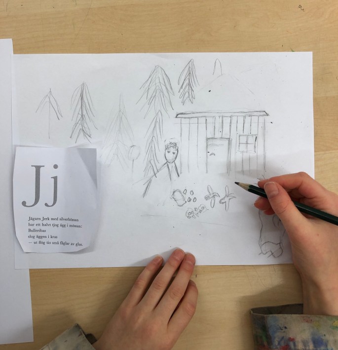 Nu är sjuorna igång med första bilduppgiften- att visualisera ett ord.