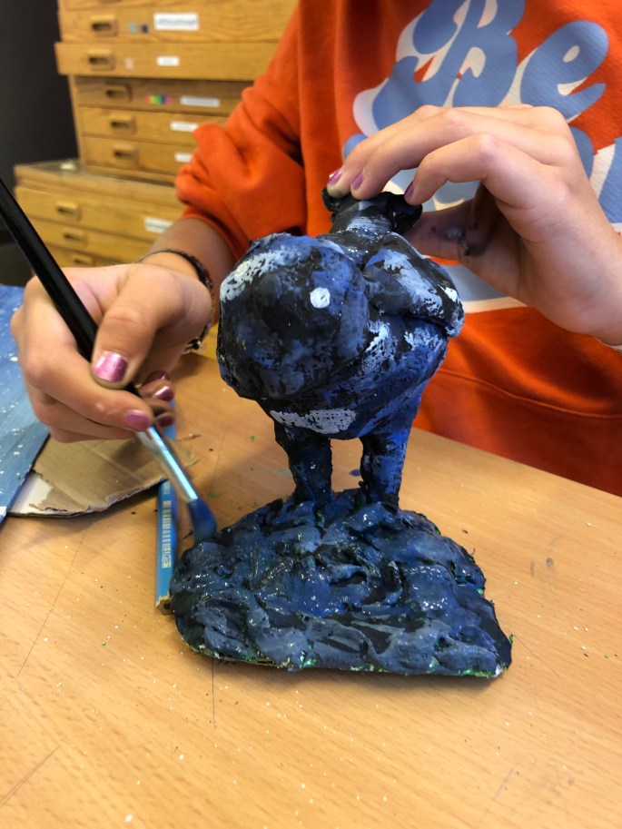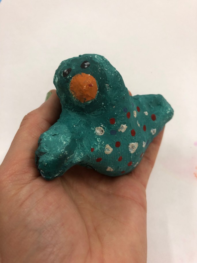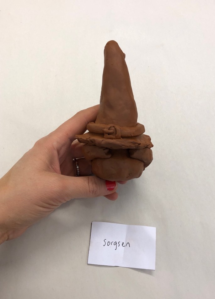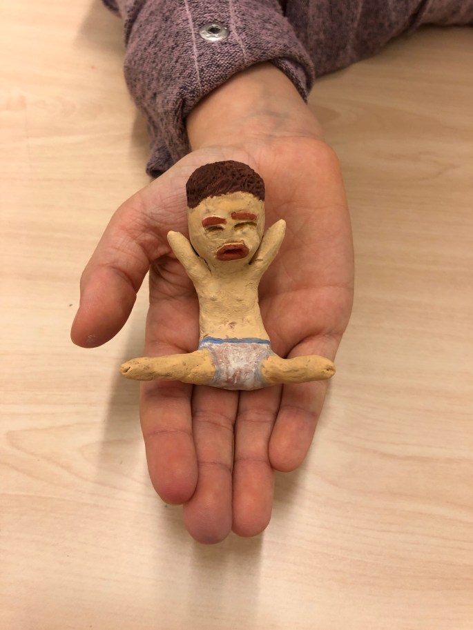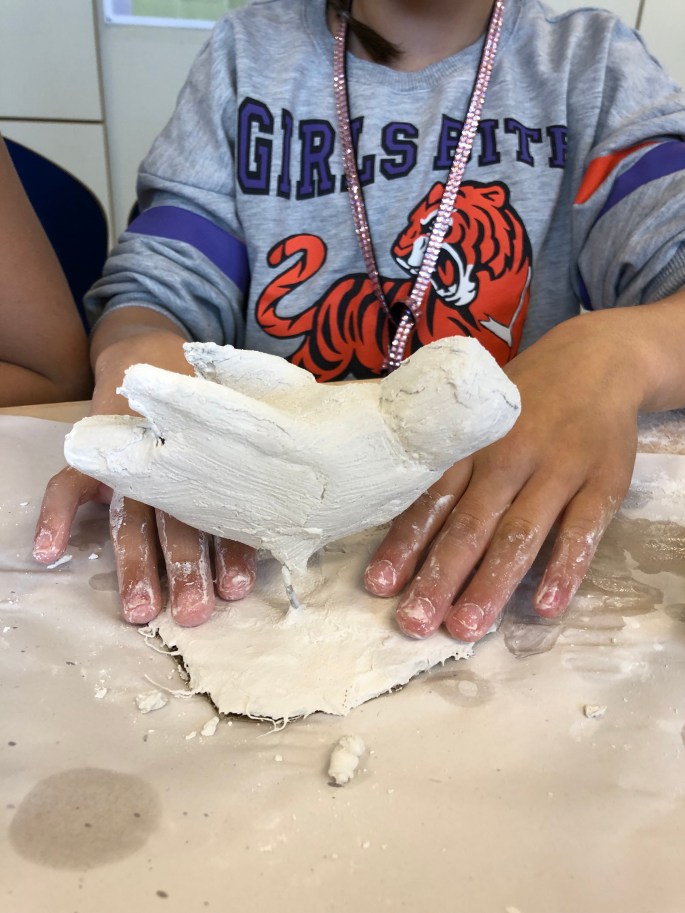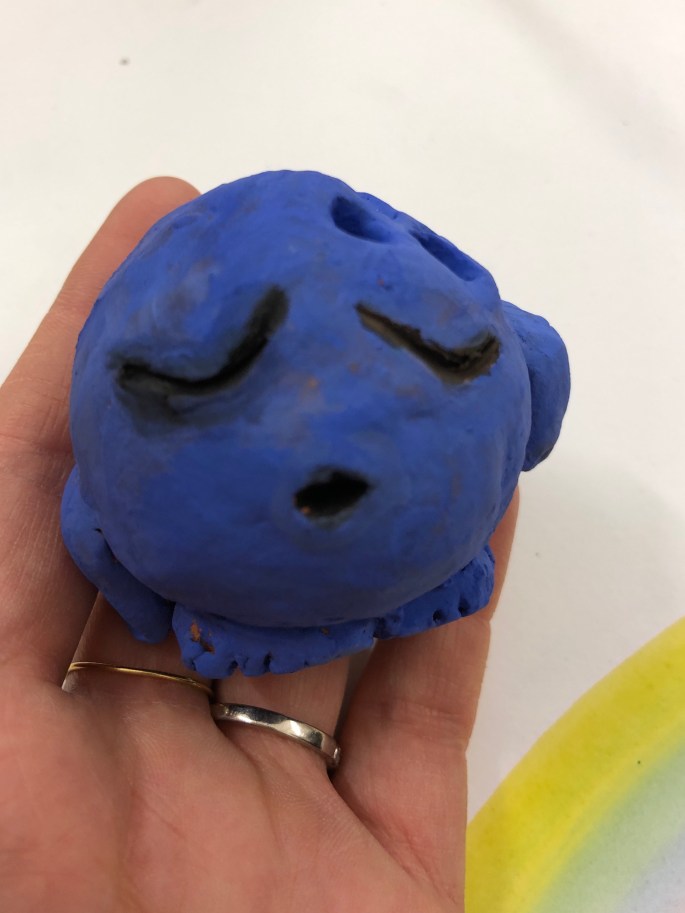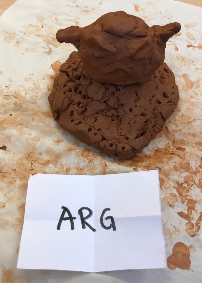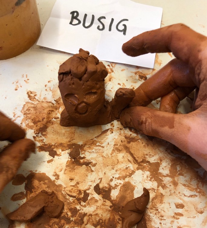 Den här lektionen gick vi loss på varsin lerklump och gav den ett uttryck utifrån en känsla.