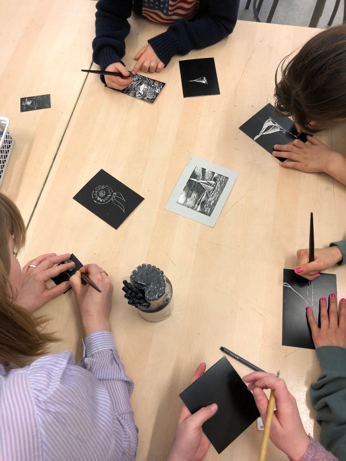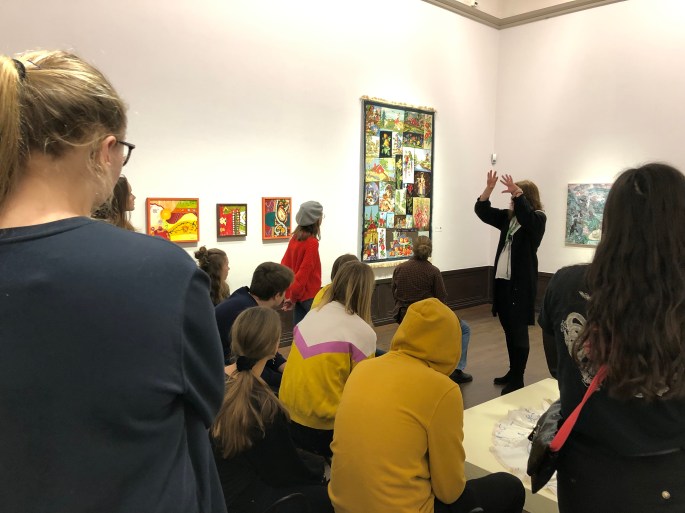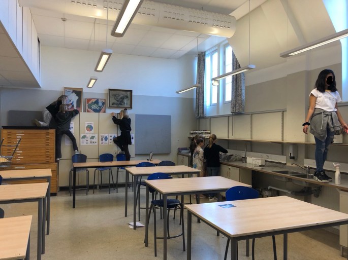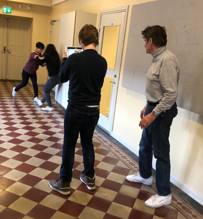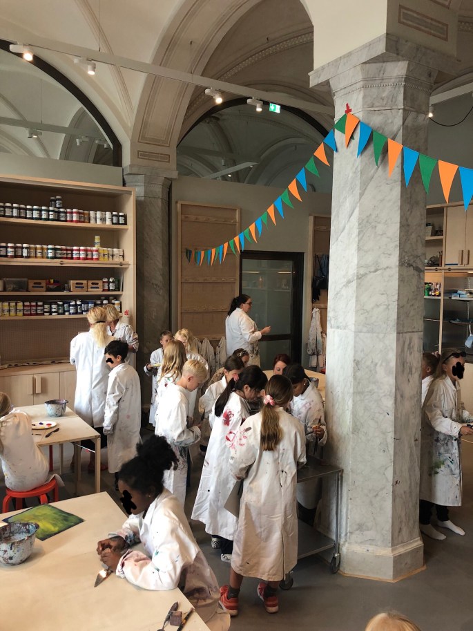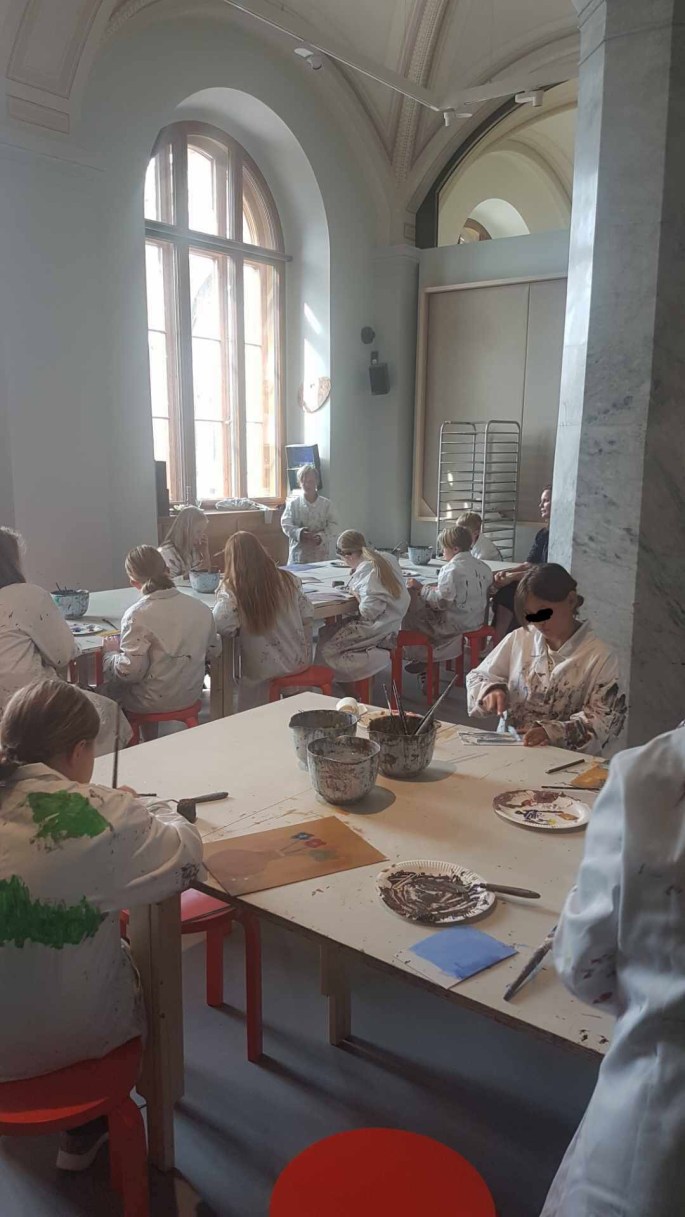 Min VFU-student Anahi (ej på bild), som snart är färdig bild- och slöjdlärare visade dem runt! Anahis handledare från Konstfack poserar med dem istället.