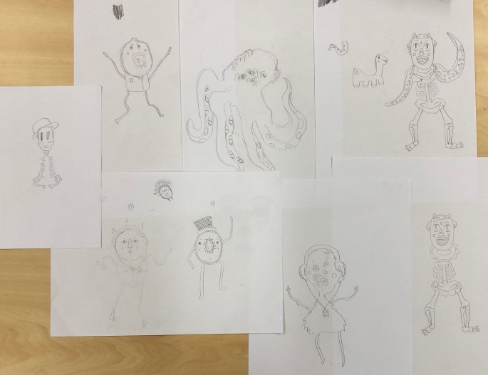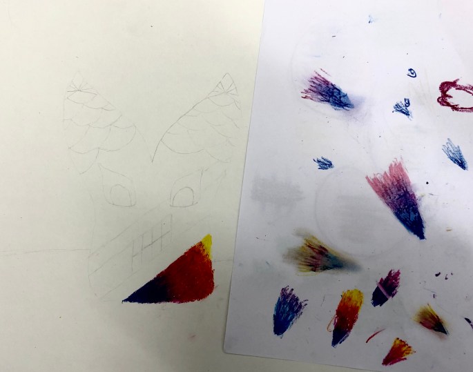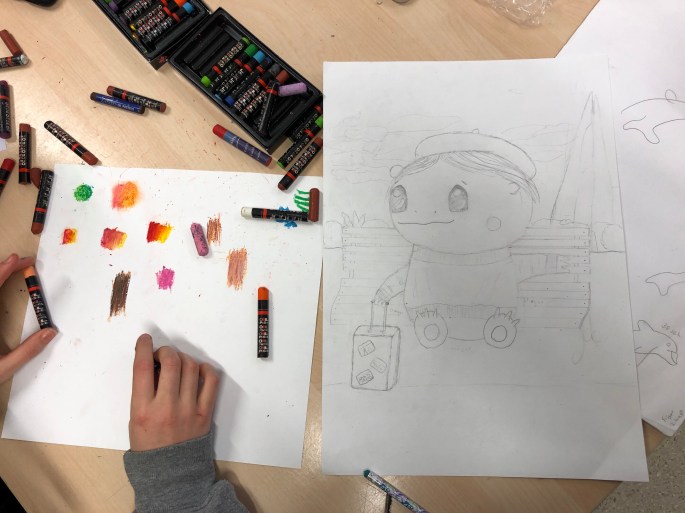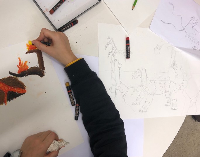 Mina sjuor ska göra pokemons/monster/varelser mha oljepastellkritor på A3-papper!