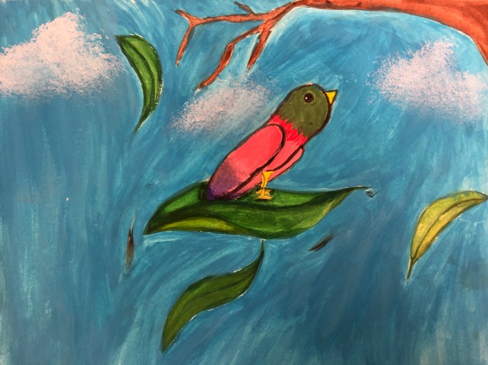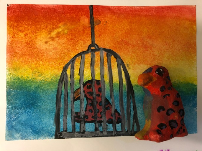 Här är målningen med fågeln och den ”riktiga” fågeln.